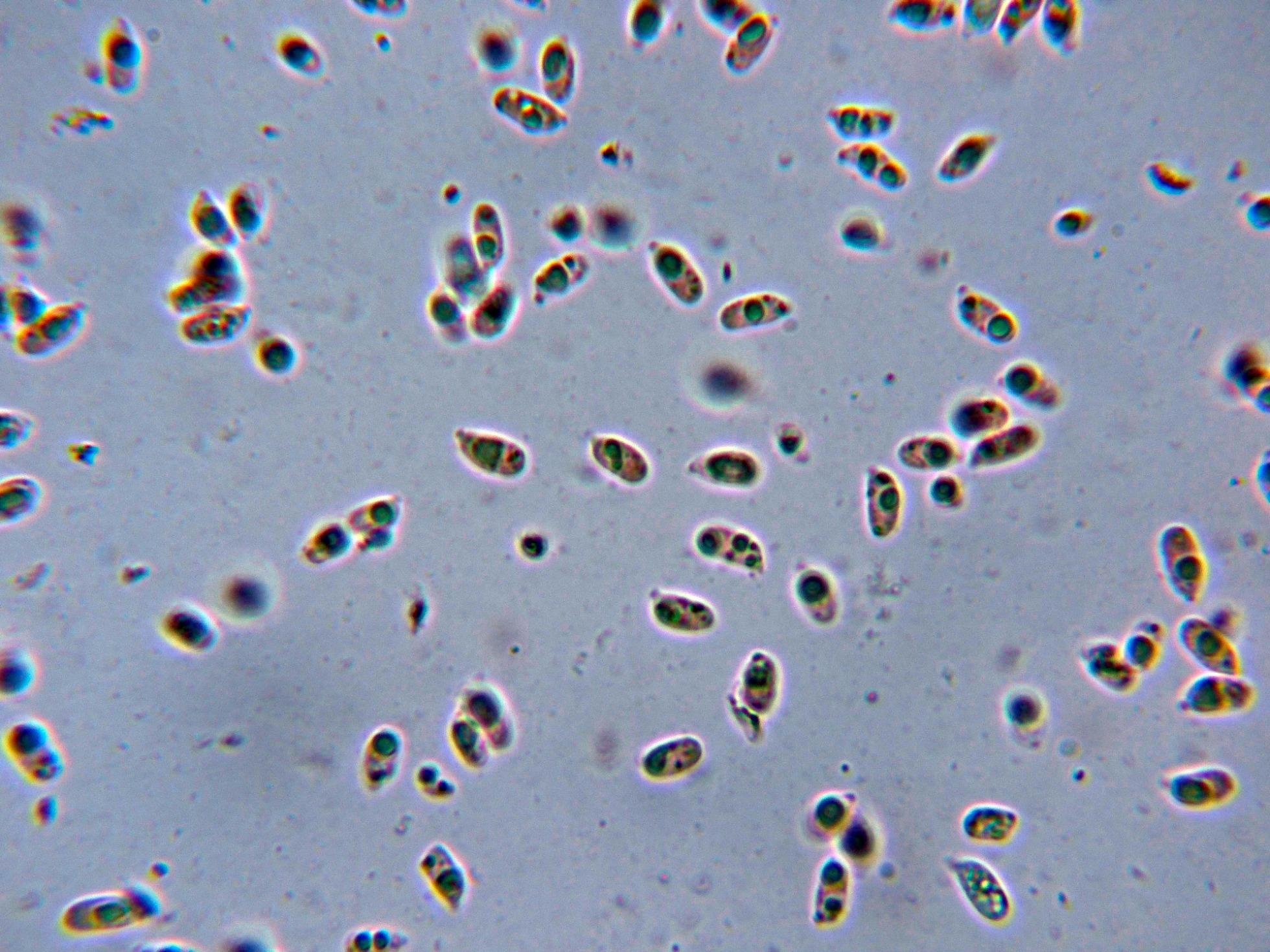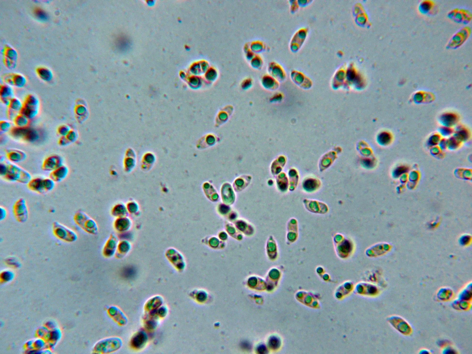 Las esporas libres en las muestras en Rojo Congo diluído: