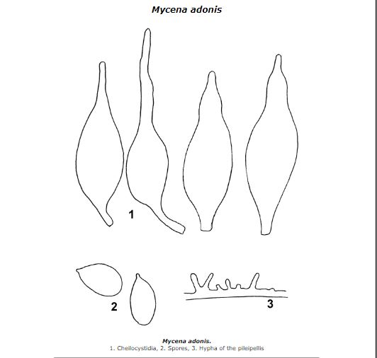 Por otro lado una imágen del mismo autor de la microscopía de la Mycena adonis: