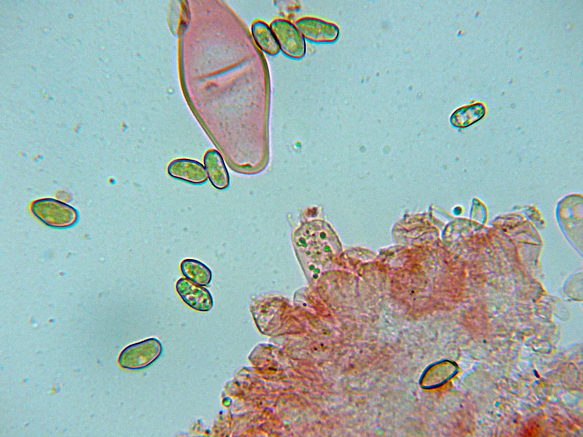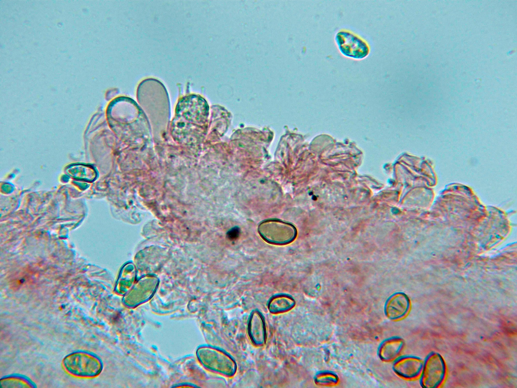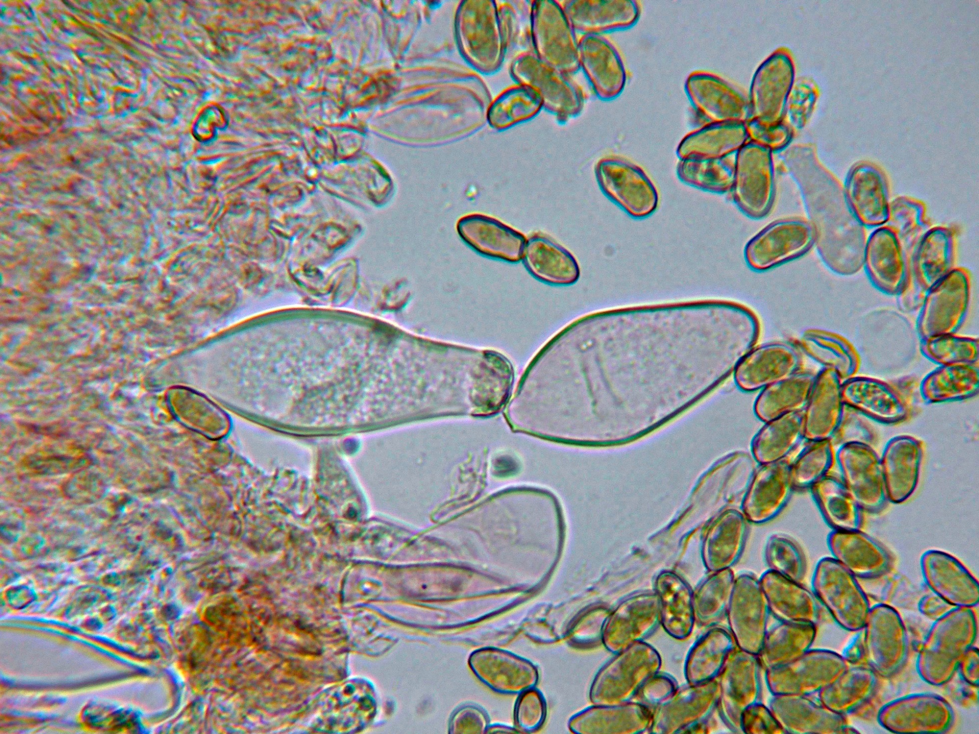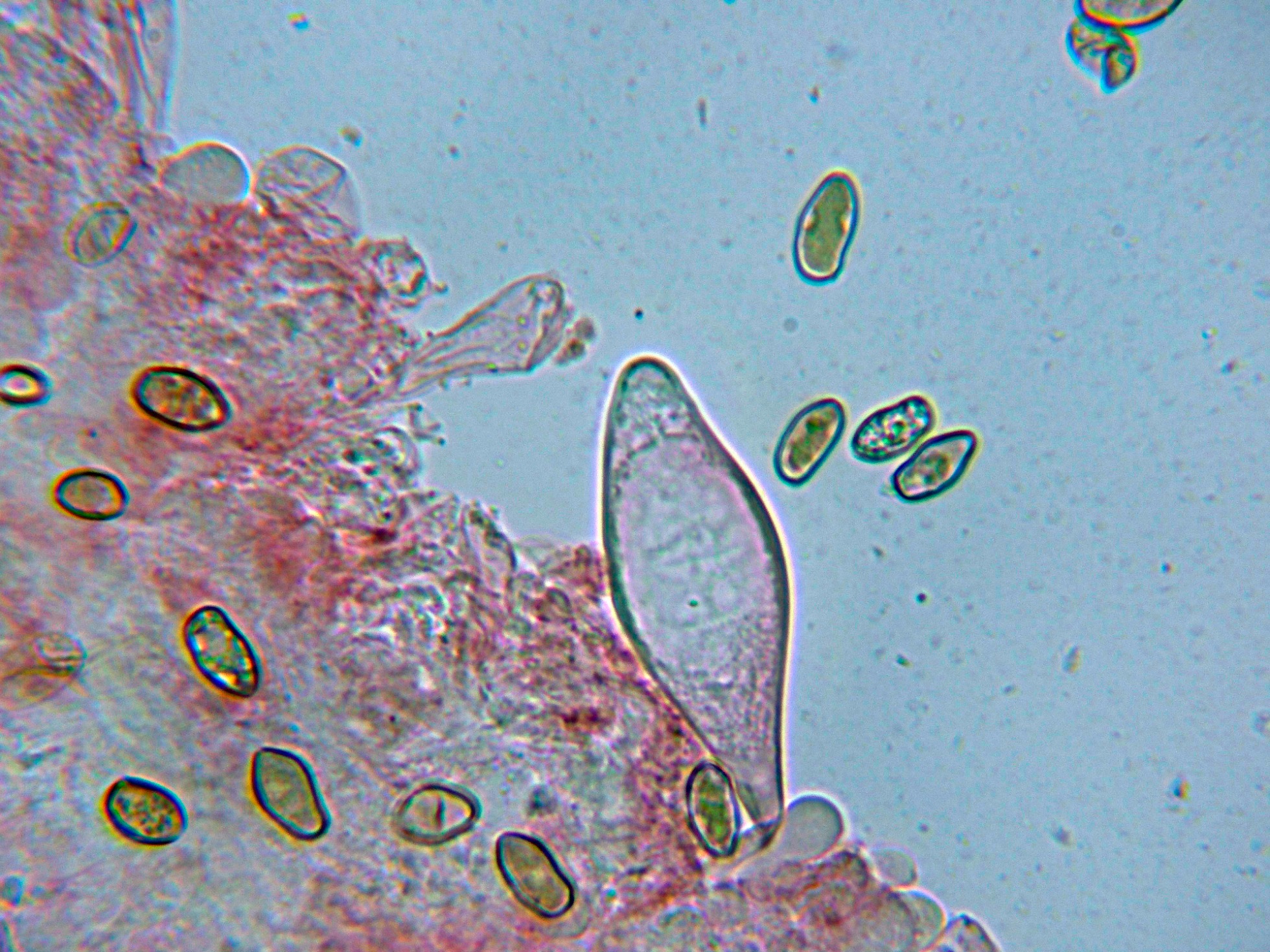 Observaciones: Determinación hecha siguiendo las Claves de "Les Champignons de Suisse" en las que se indican unas medidas para los queilocistidios de 40-75 x 12-24 um., y unas medidas esporales de 10,3-15.6 x 4,6-7 µm. estas últimas con un tamaño ligeramente por encima de las del presente estudio, pero dentro de los márgenes que se pueden considerar dentro de la variabilidad propia de la especie.