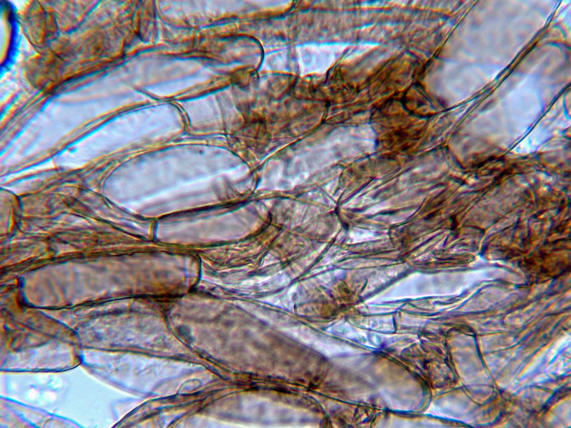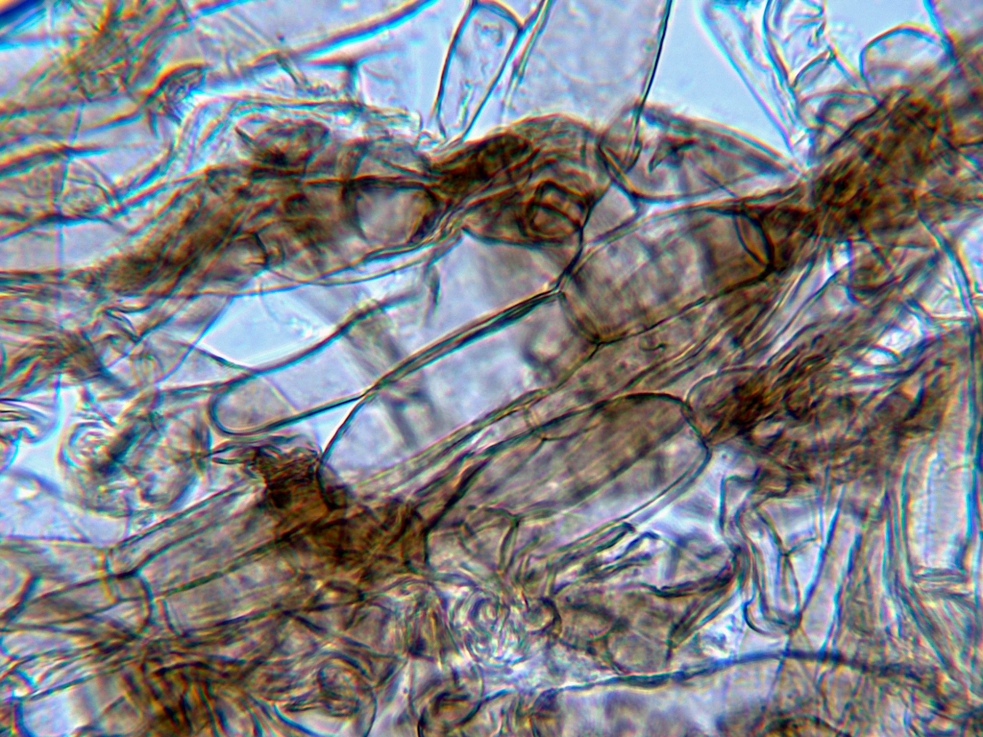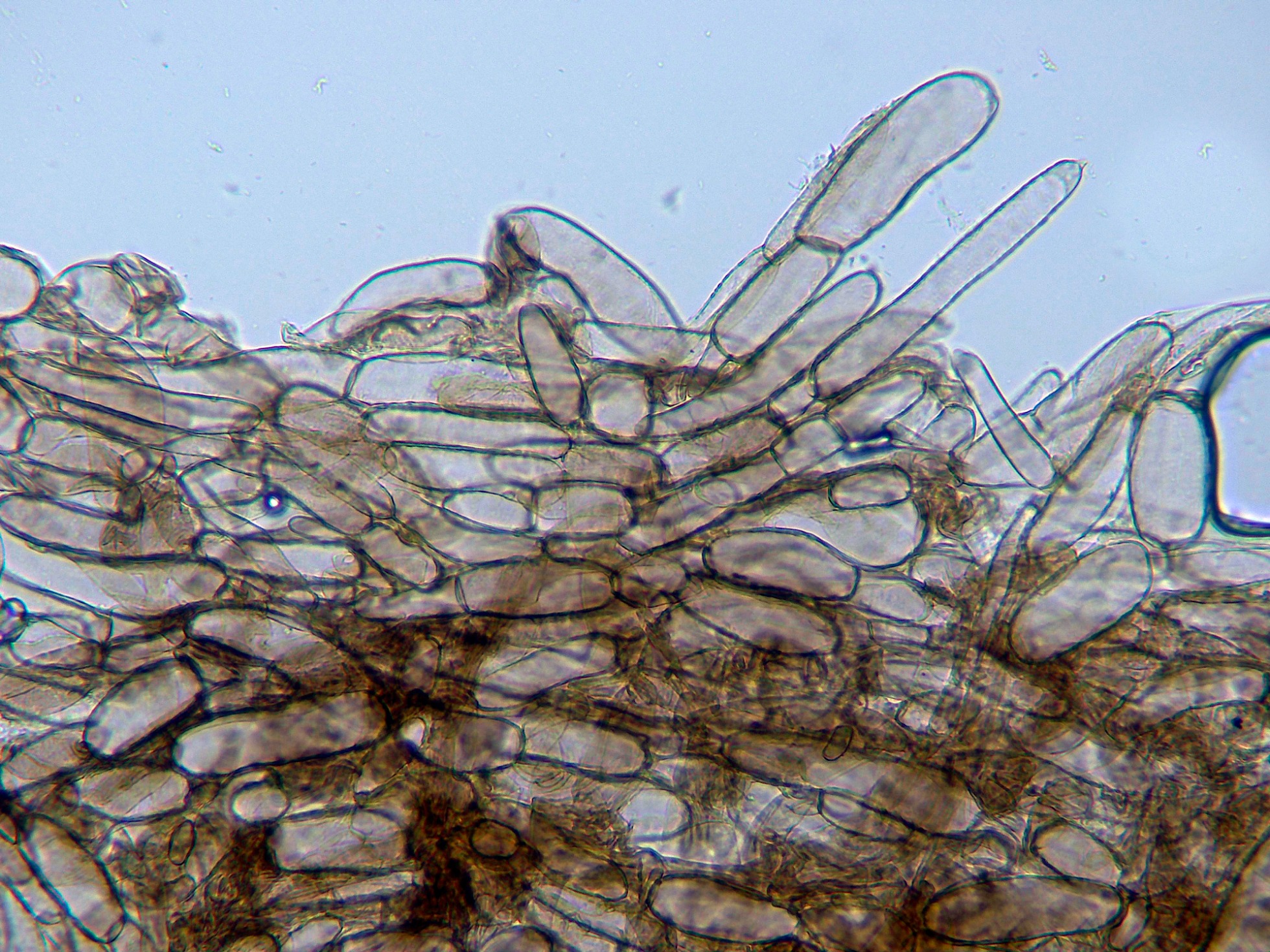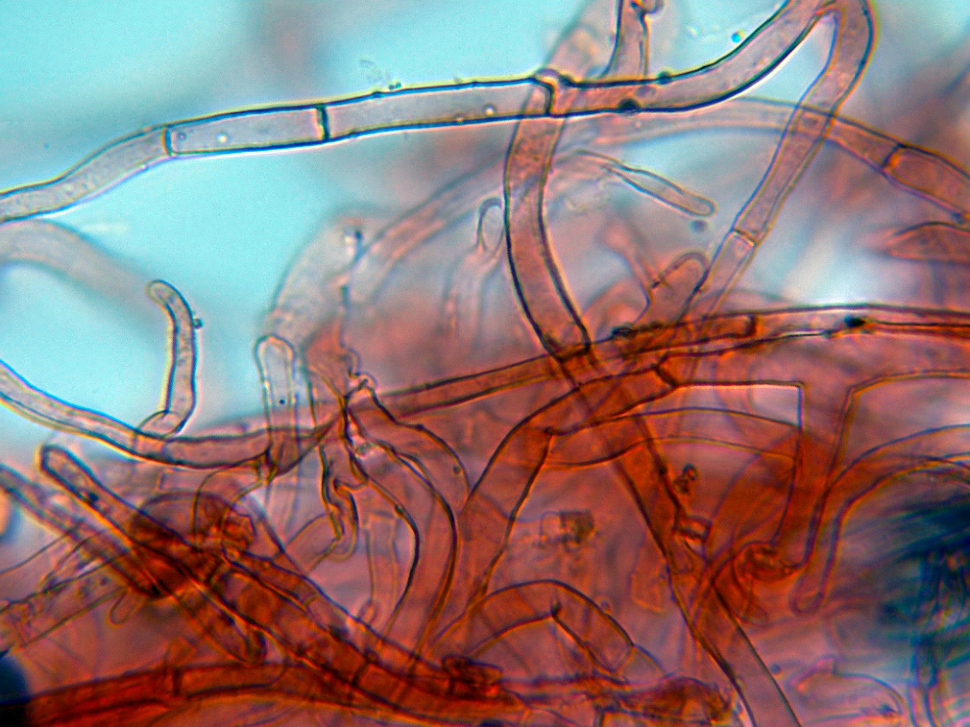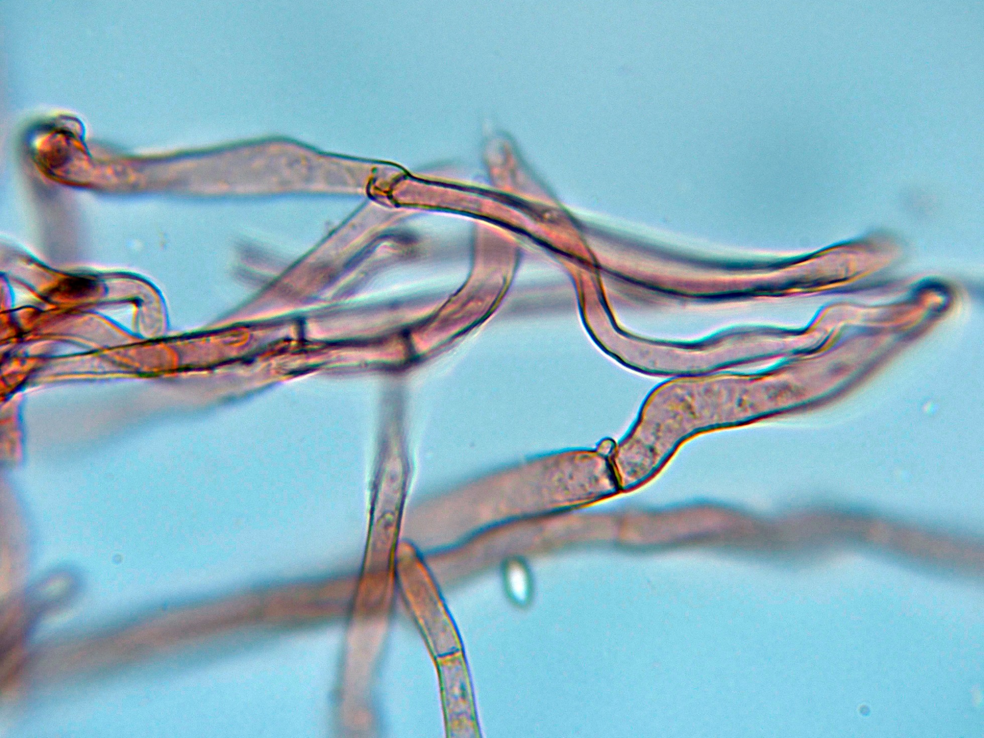 Hifas terminales de la parte baja del pie a modo de caulocistidios, con fíbulas.