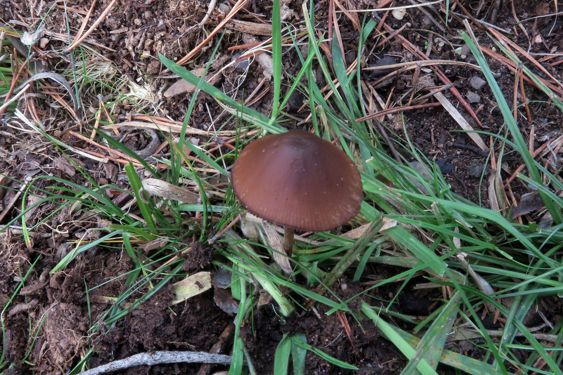 Este es un cromazo, ya no se me olvida, es un Conocybe de buen tamaño para el género, con el sombrero muy oscuro y el centro del mismo con tonos casi purpureos, y con el pie acanalado o surcado longitudinalmente, magnífico trabajo con los Conocybe Josep