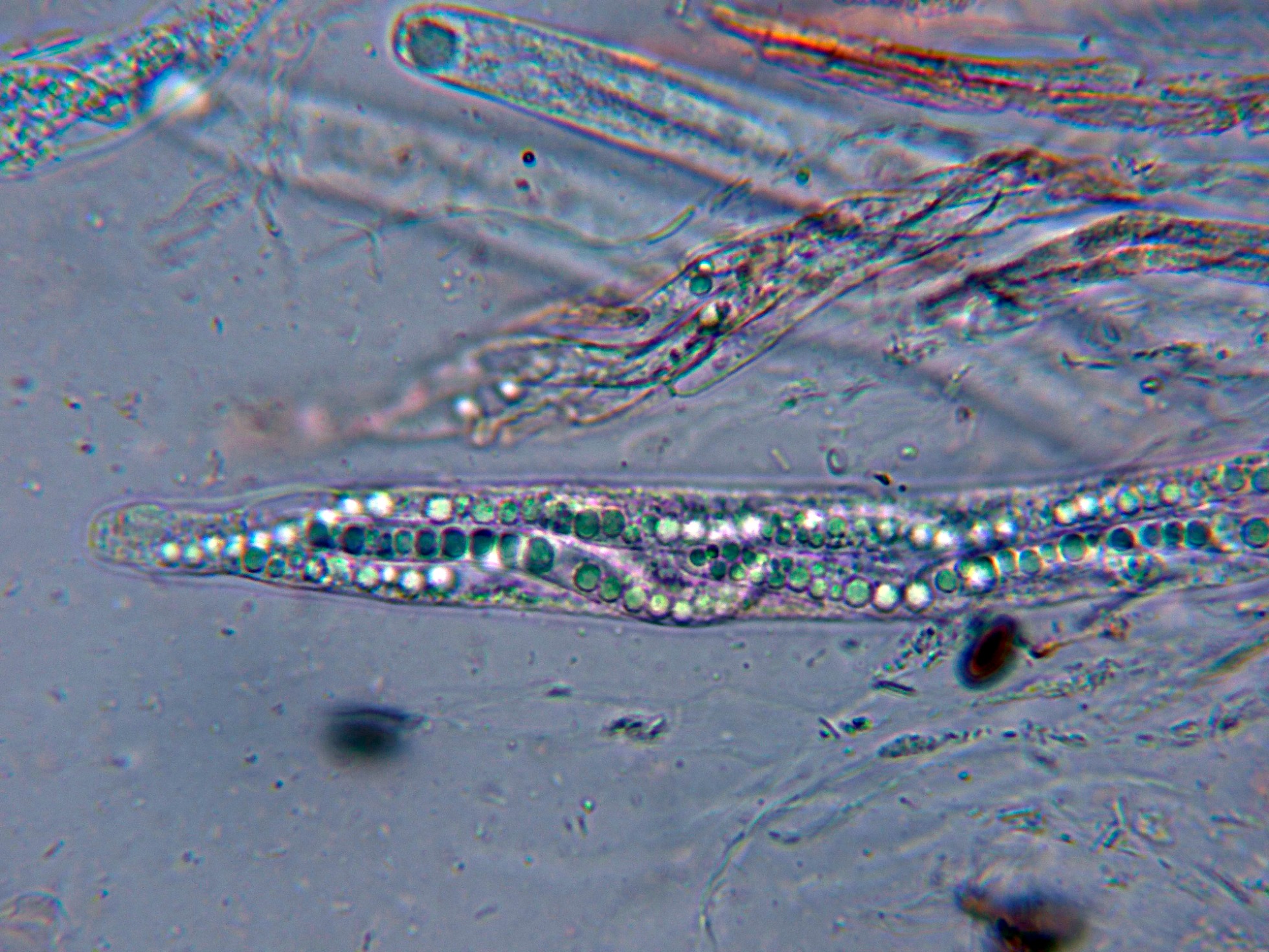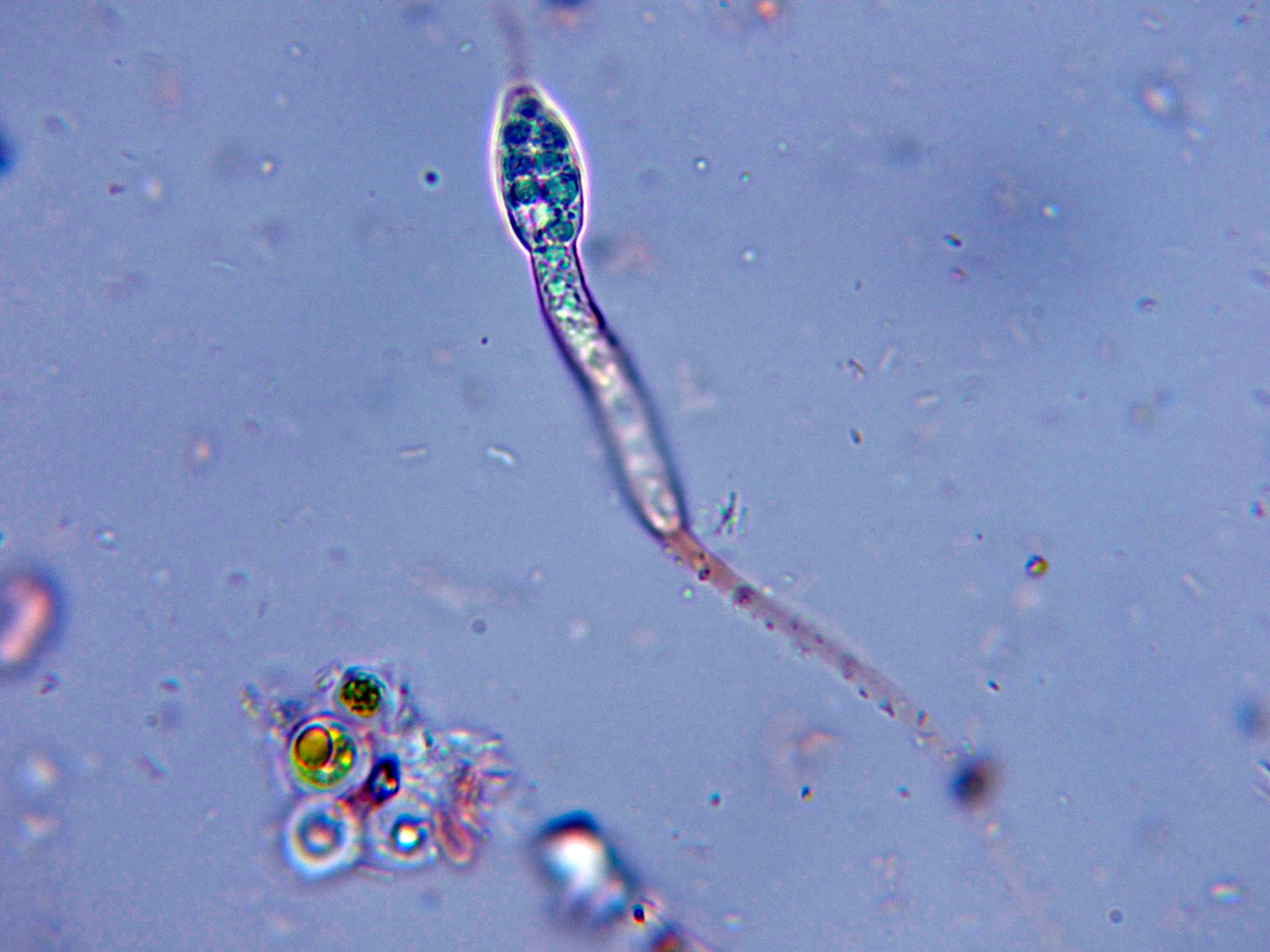 Los ascos con un globulo subapical completamente esférico y con un diámetro de 4 a 5 micras.