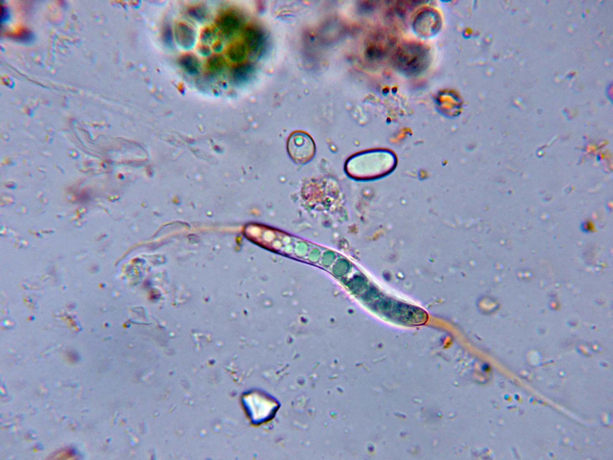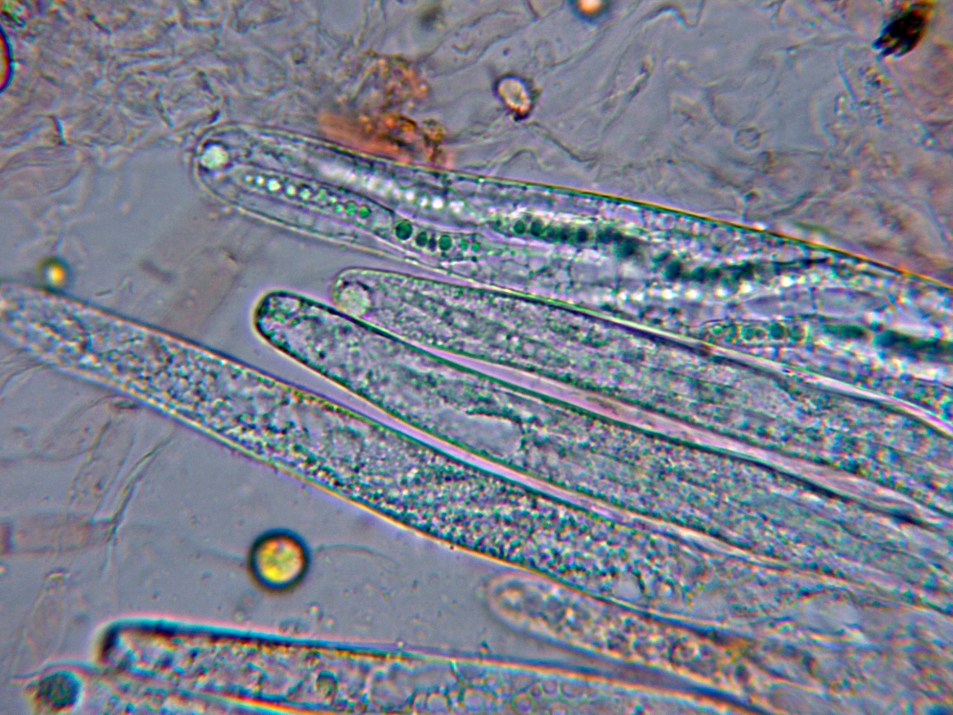 Ascos con esporas inmaduras a 1000 aumentos.