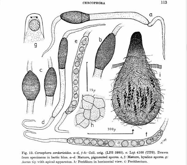 - Cercophora sordarioides (Speg.) N. Lundq. Microscopía.