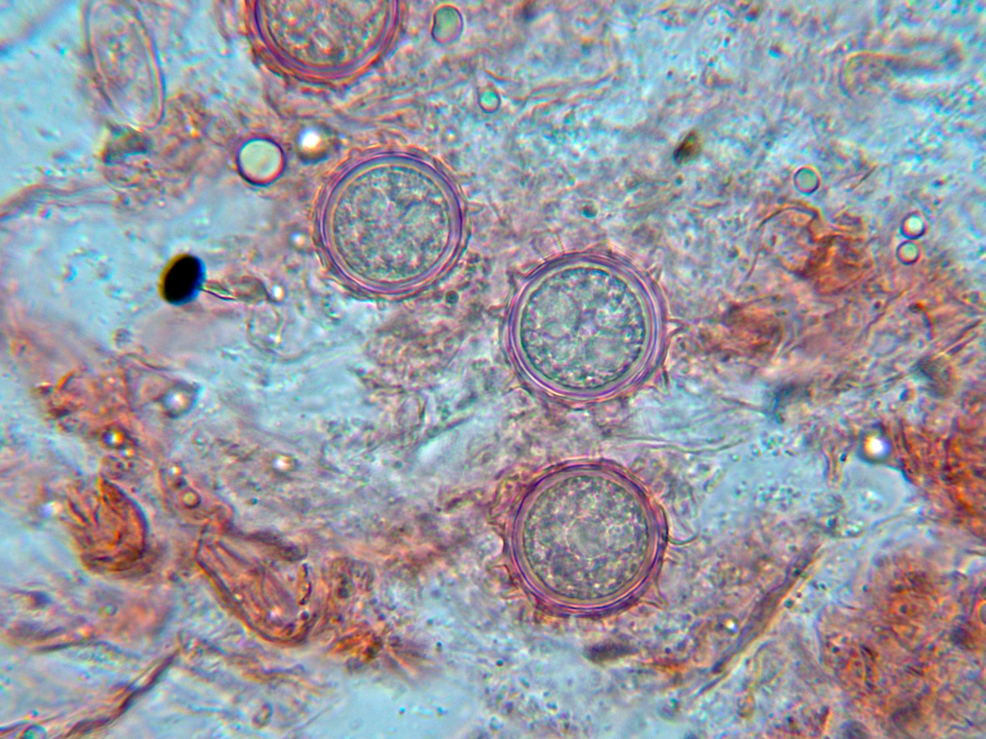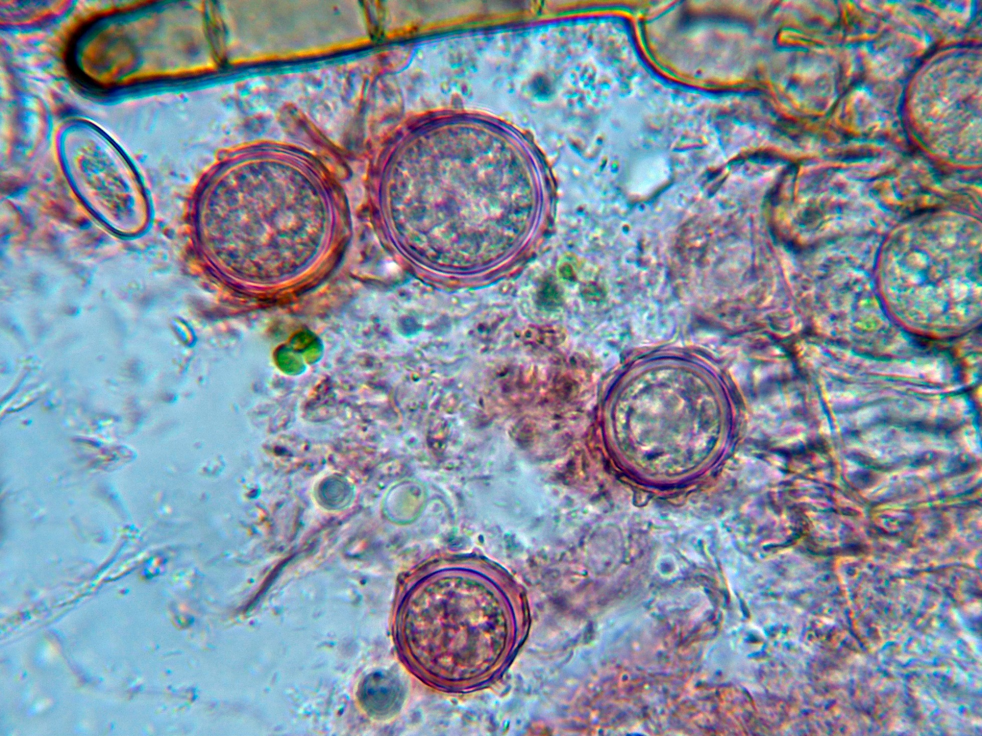 Lo curioso es que además de las características que definen a la Cheilymenia, en las muestras aparecían unas esporas esféricas en grandes cantidades con ornamentación de verrugas o crestas.