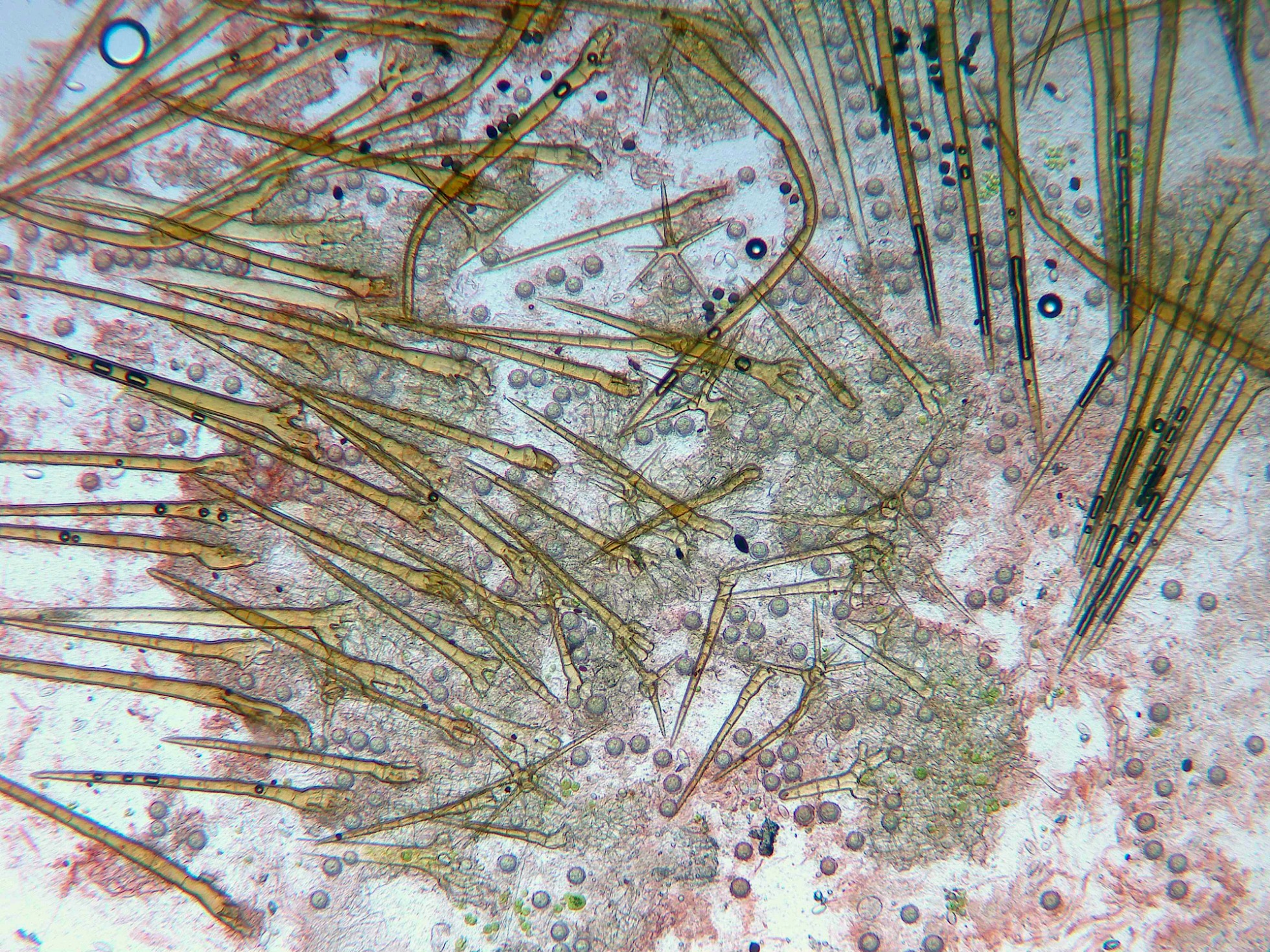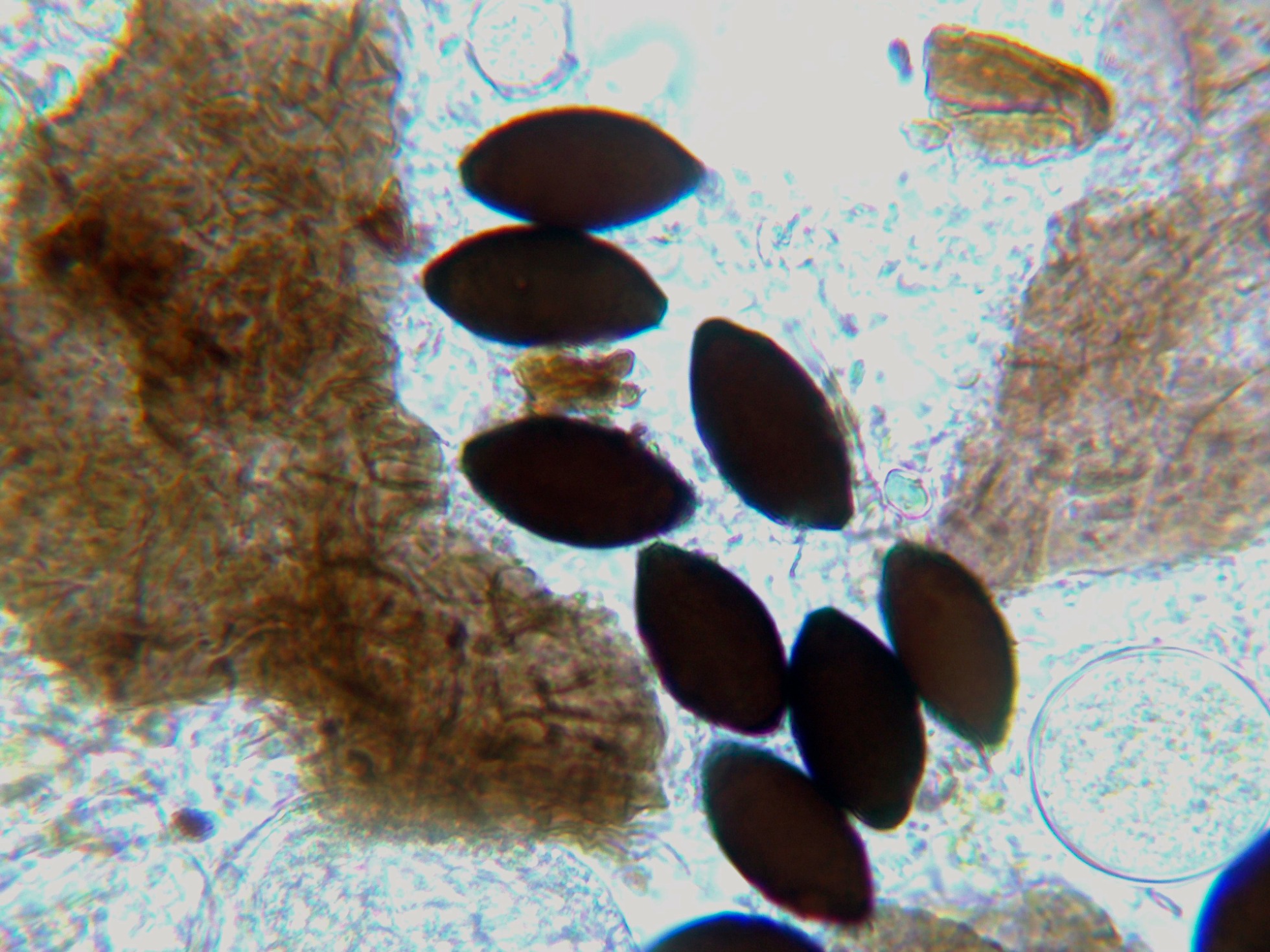 Su aspecto era tan aberrante que llegué a pensar que se trataba de un hongo distinto, la micro confirmó todos los elementos que caracterizan a la Cheilymenia stercorea.