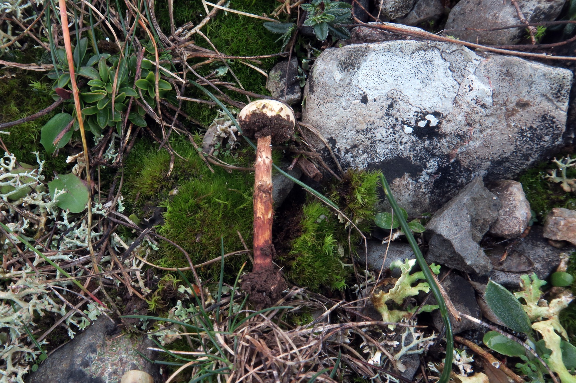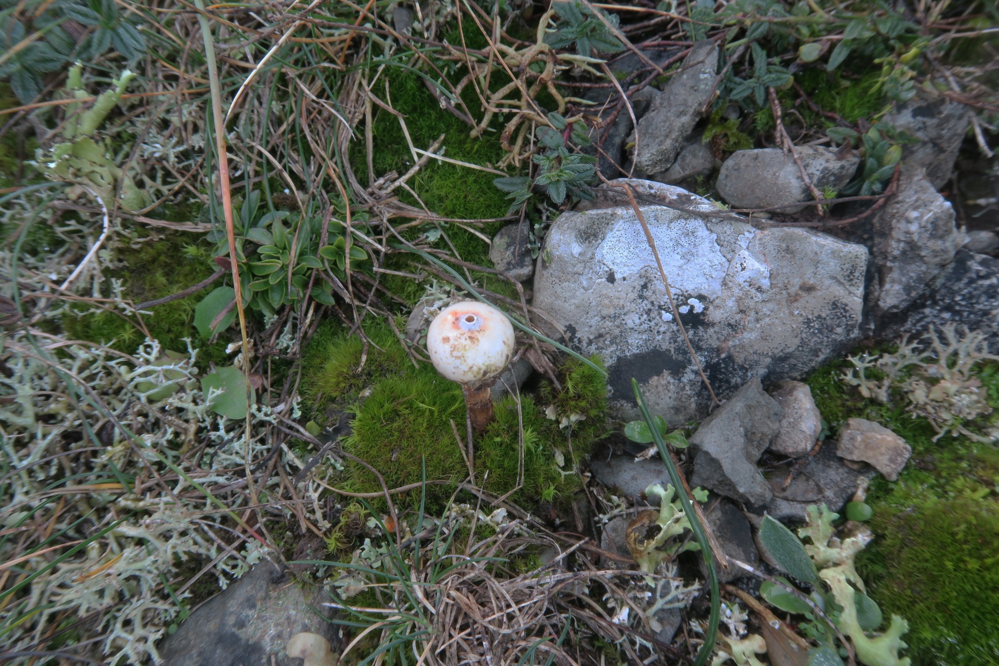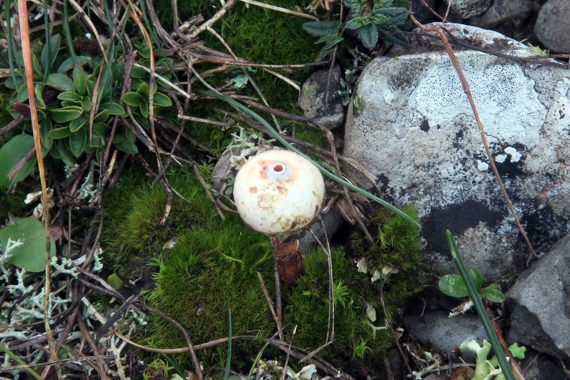 Un Tulostoma localizado el 13 de Noviembre pasado, entre el musgo, en una zona pedregosa de campa de altura donde predominaban la Genista scorpius y el Buxus sempervirens.