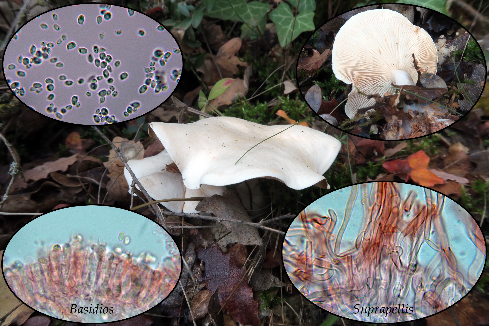 Un Clitocybe blanco de considerable tamaño (algun ejemplar superaba los 10 cm.), todos los datos obtenidos parecen apuntar a la Clitocybe phyllophila.