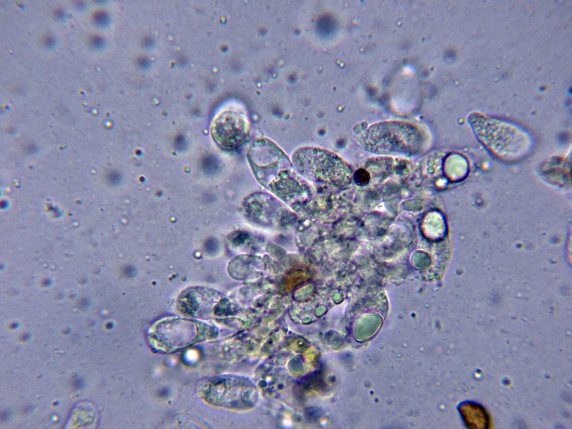 Y las esporas en Reactivo de Melzer, con solo una muy ligera (casi inapreciable) reacción dextrinoide: