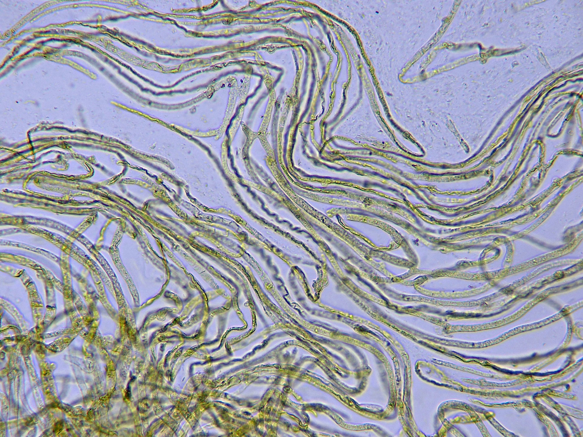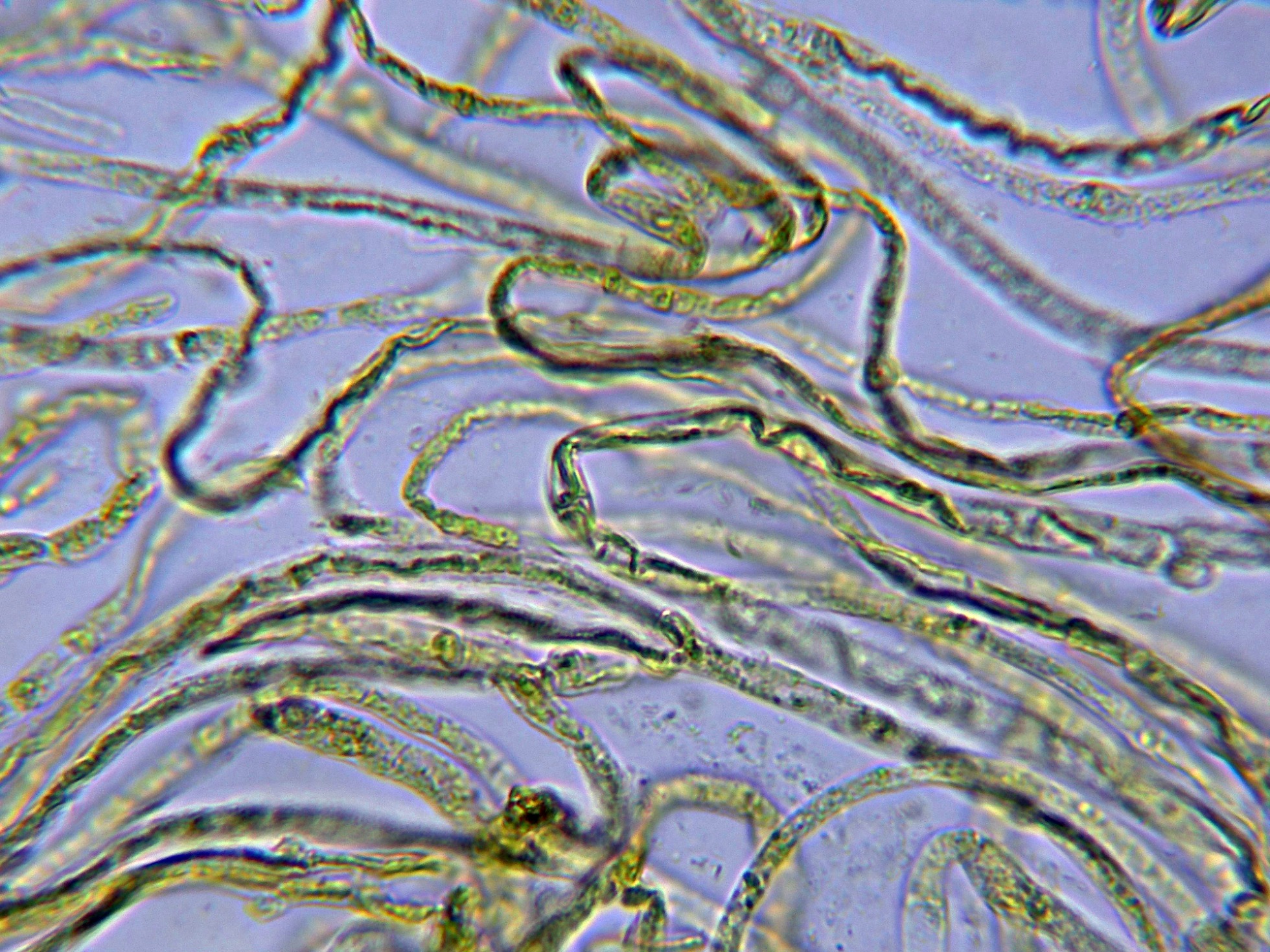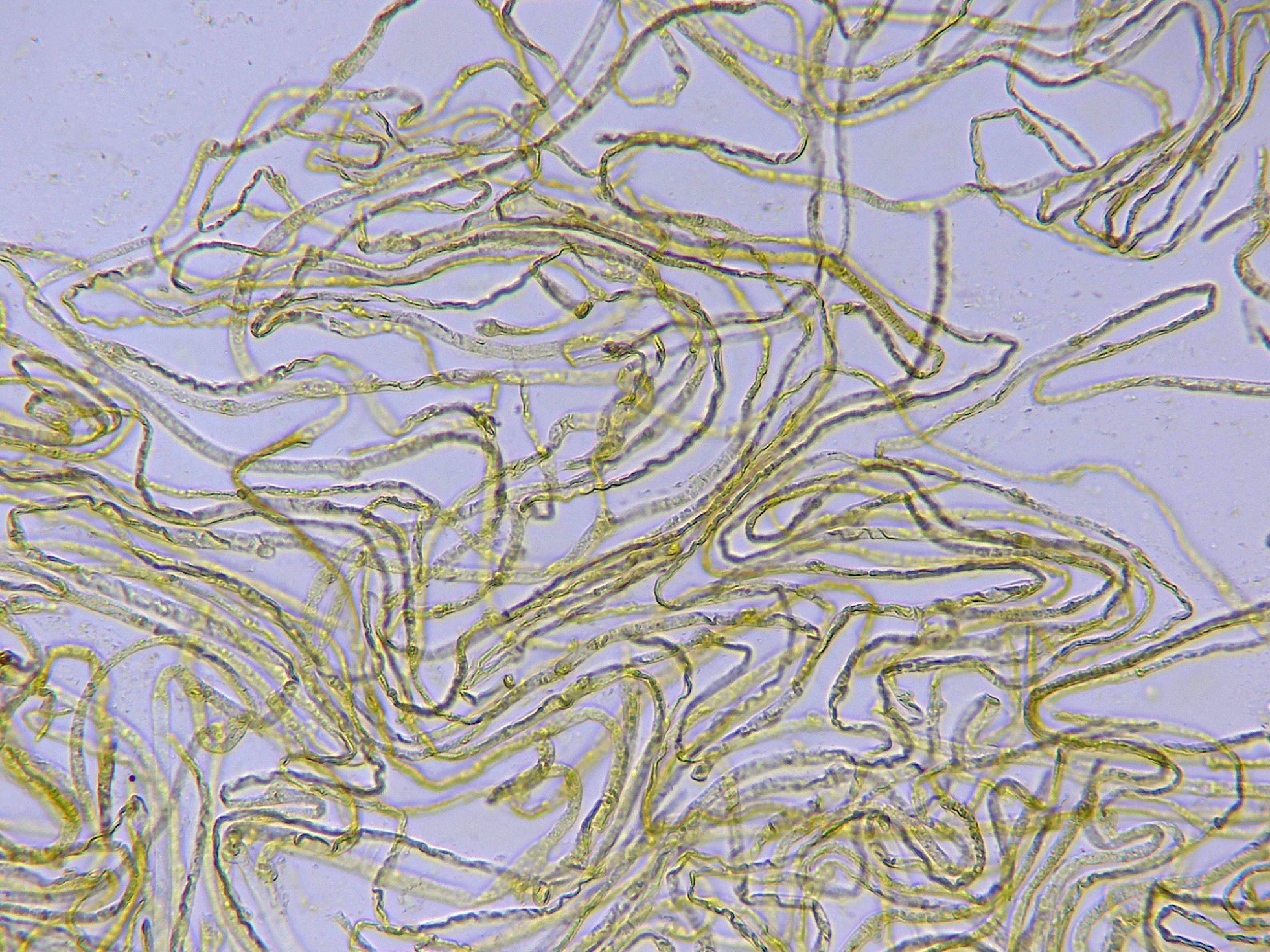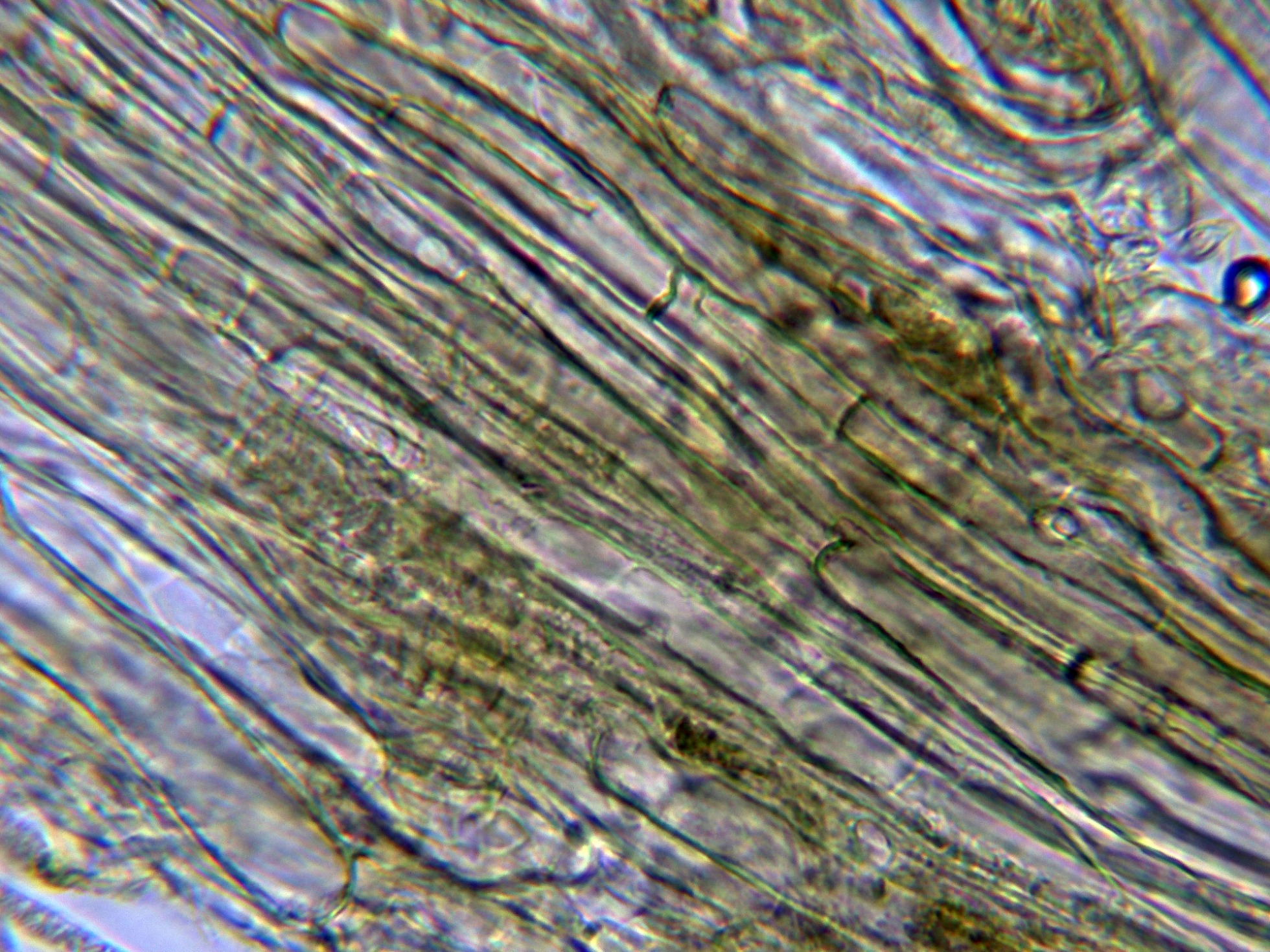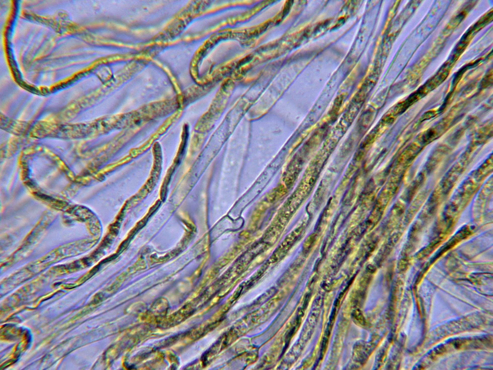 Hifas de la subpellis ya algo más anchas, dispuestas más o menos paralelamente y con fíbulas: