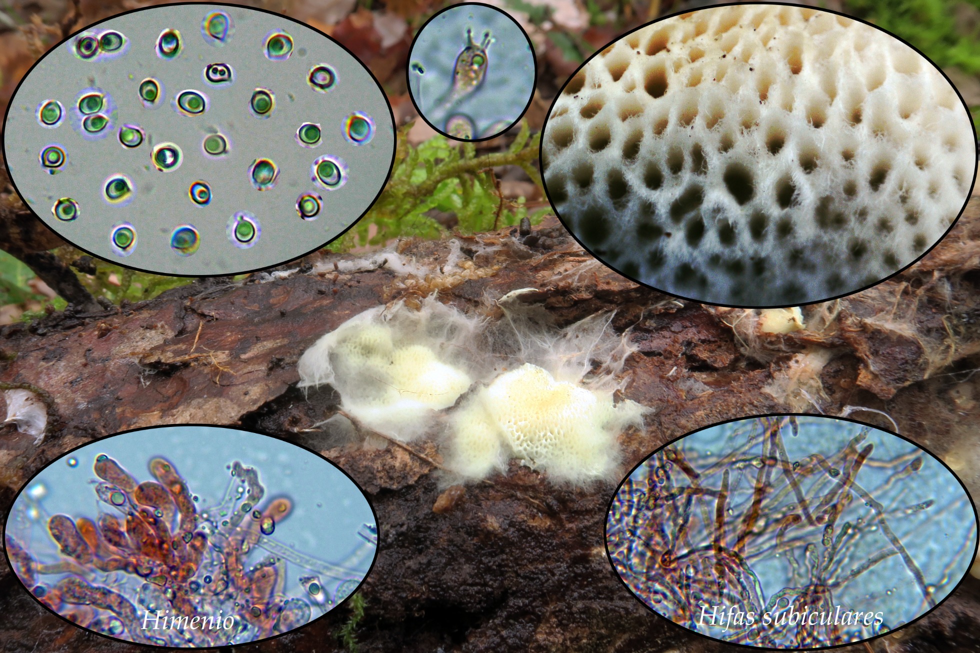 Un Anomoloma con rizomorfos blancos que ya me había encontrado anteriormente por la zona, el Anomoloma myceliosum.