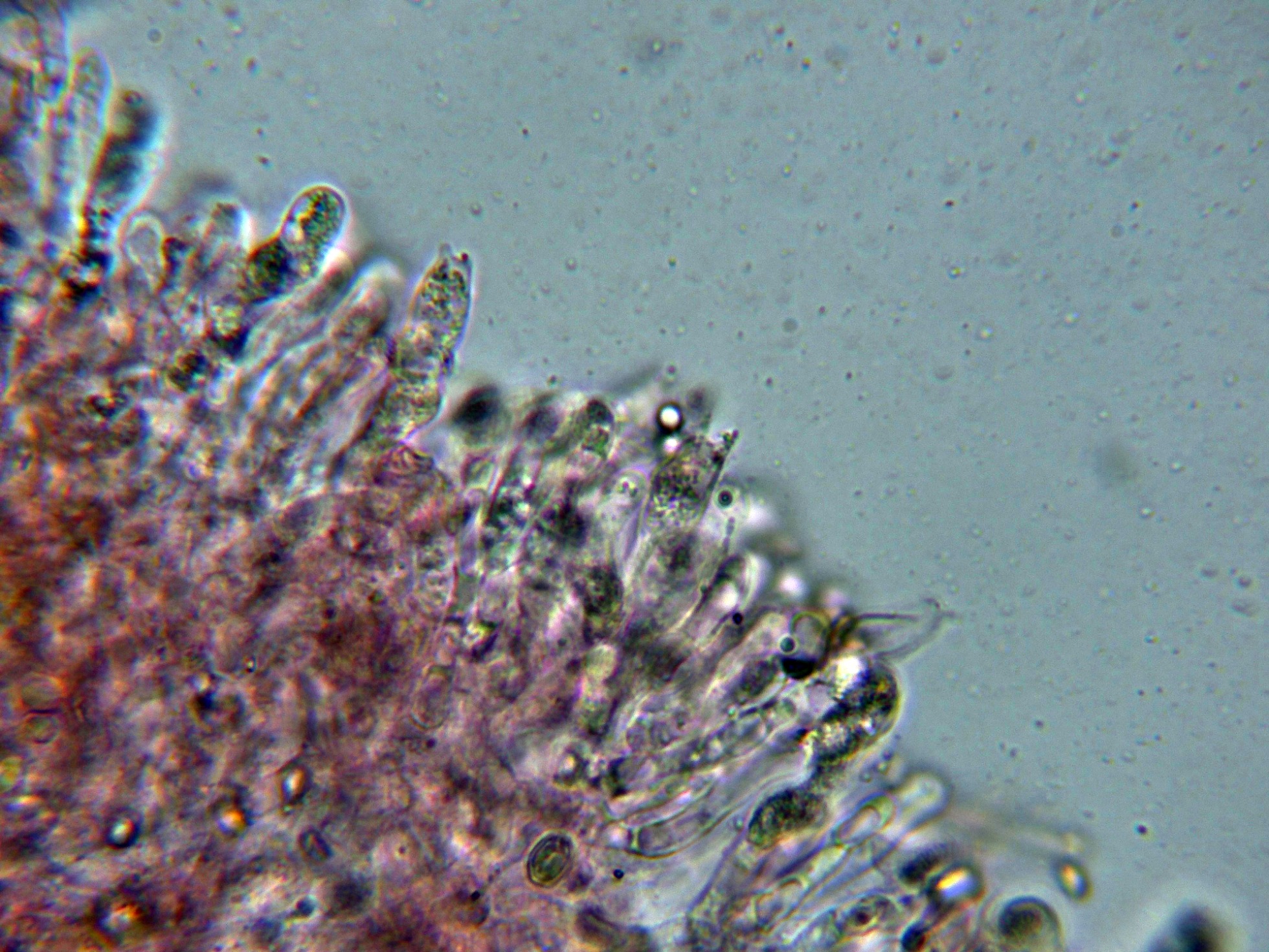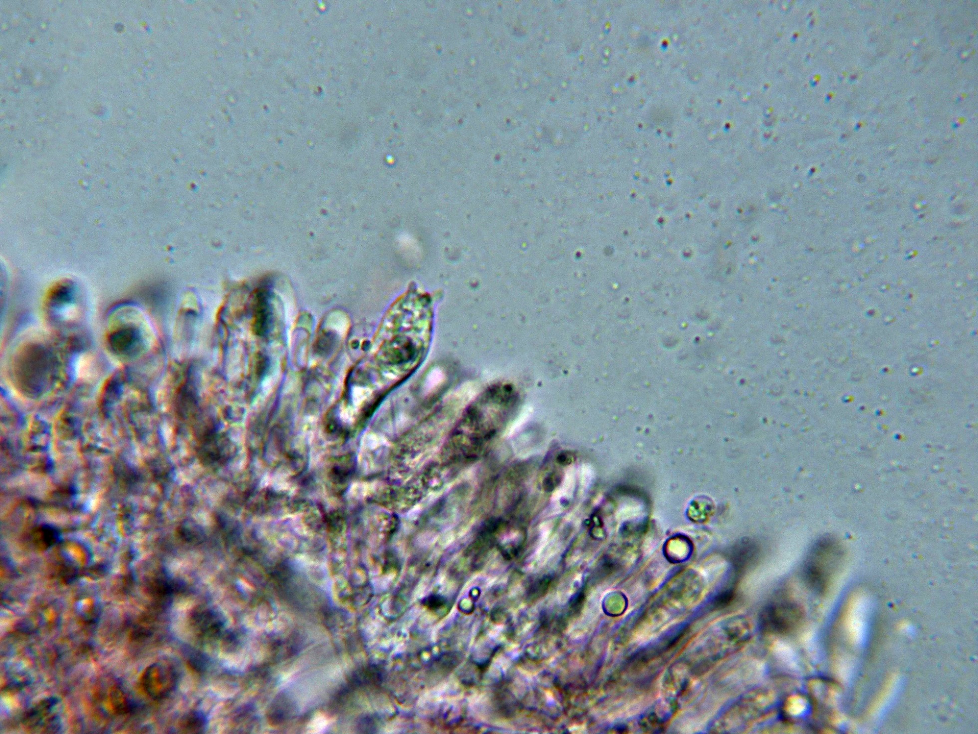 Uno del que no me llevé muestras y al llegar a casa pude comprobar que no disponía en mis archivos de su microscopía , el Hydnum rufescens.