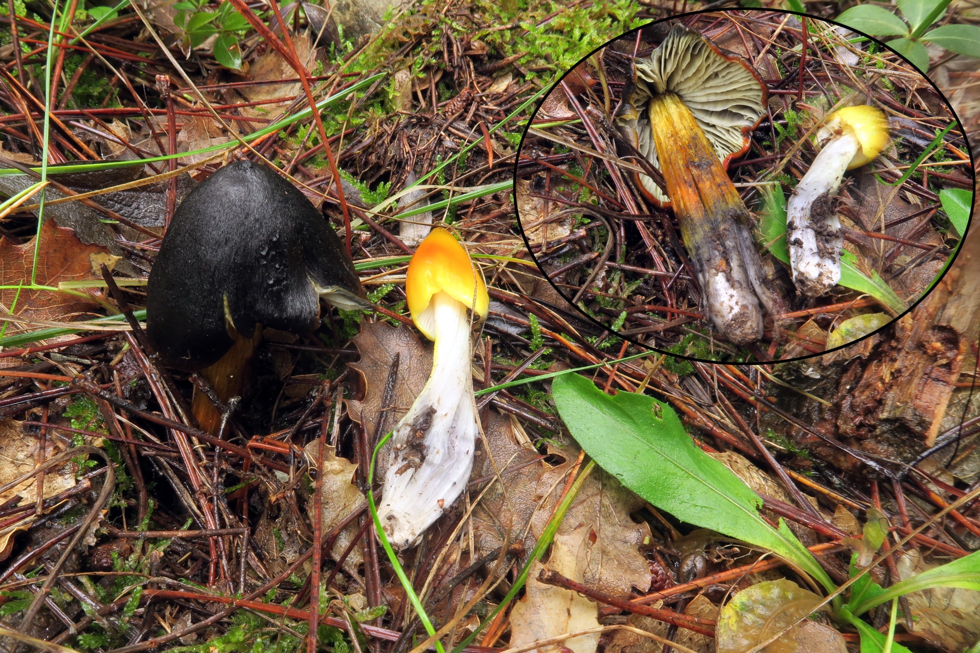 Y por último una imágen de la gran variedad cromática que puede presentar la Hygrocybe conica, seis años sin verla y ahora me la encuentro cada semana