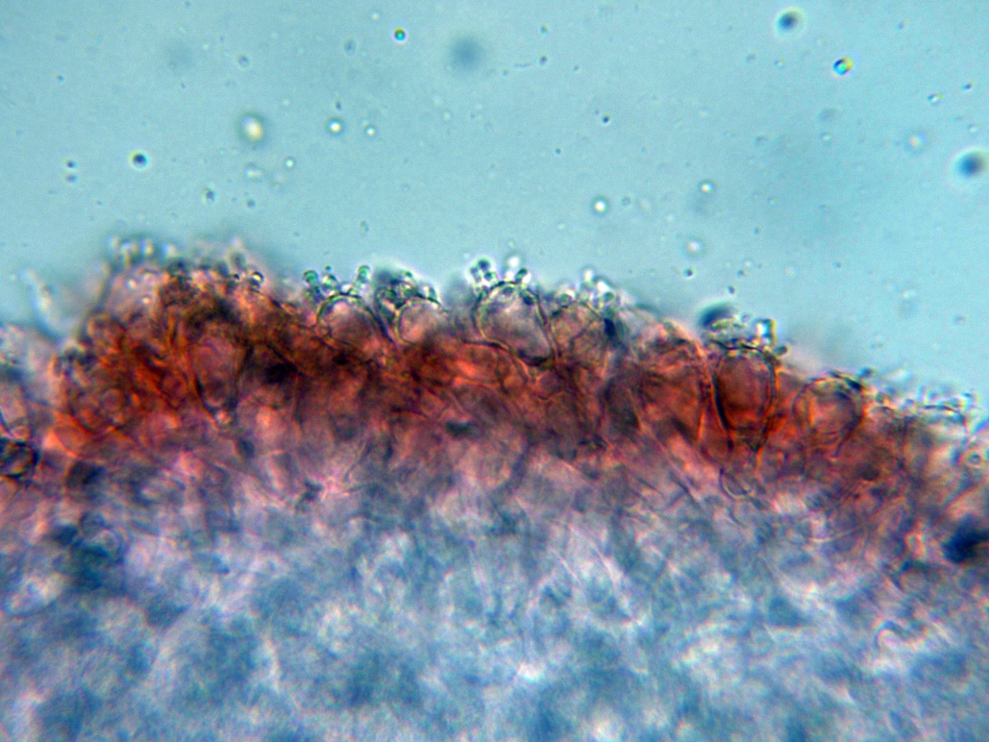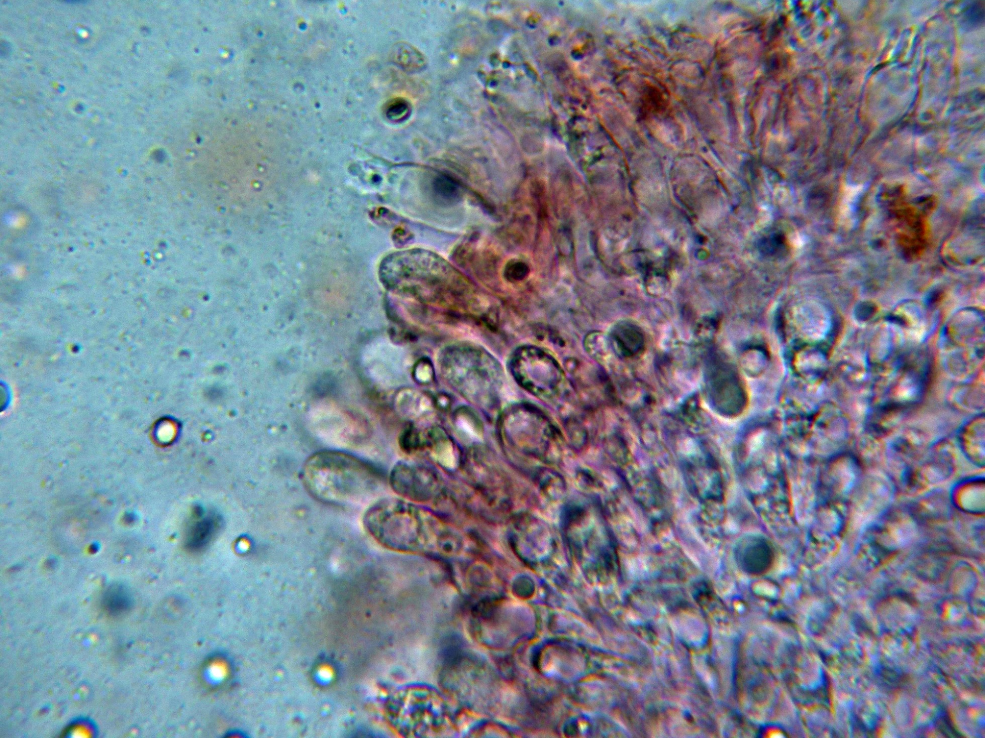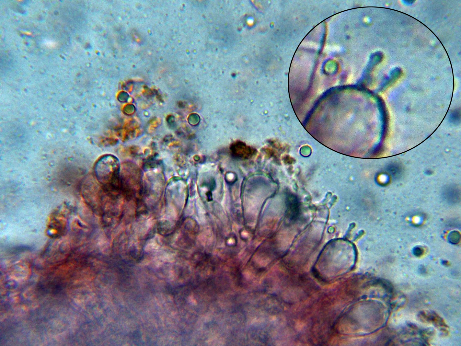 Queilocistidios muy abundantes con digitaciones de ente 2 y 10 micras, algunas de estas digitaciones ligeramente capitadas.