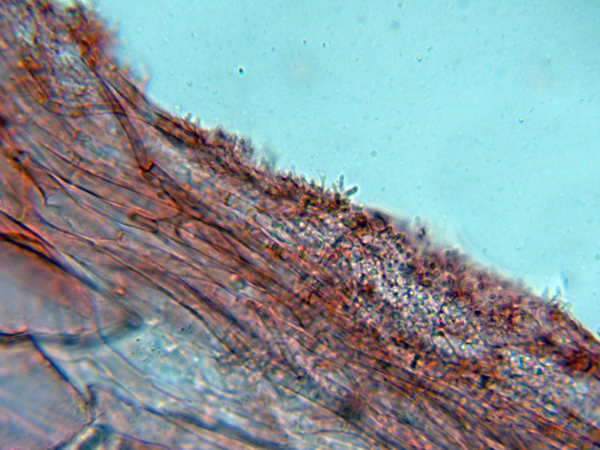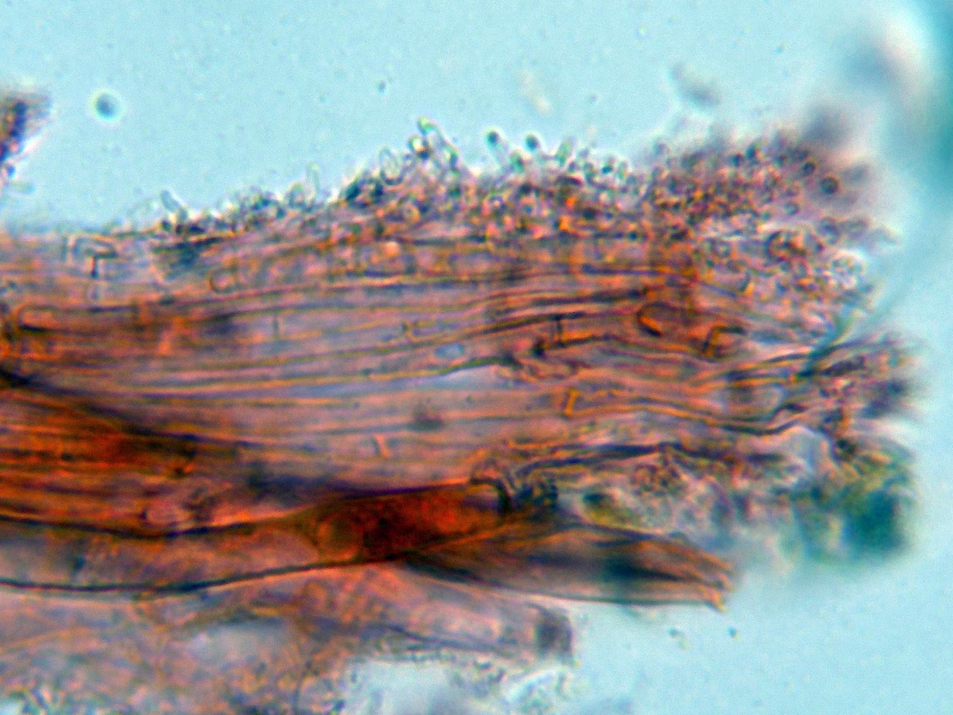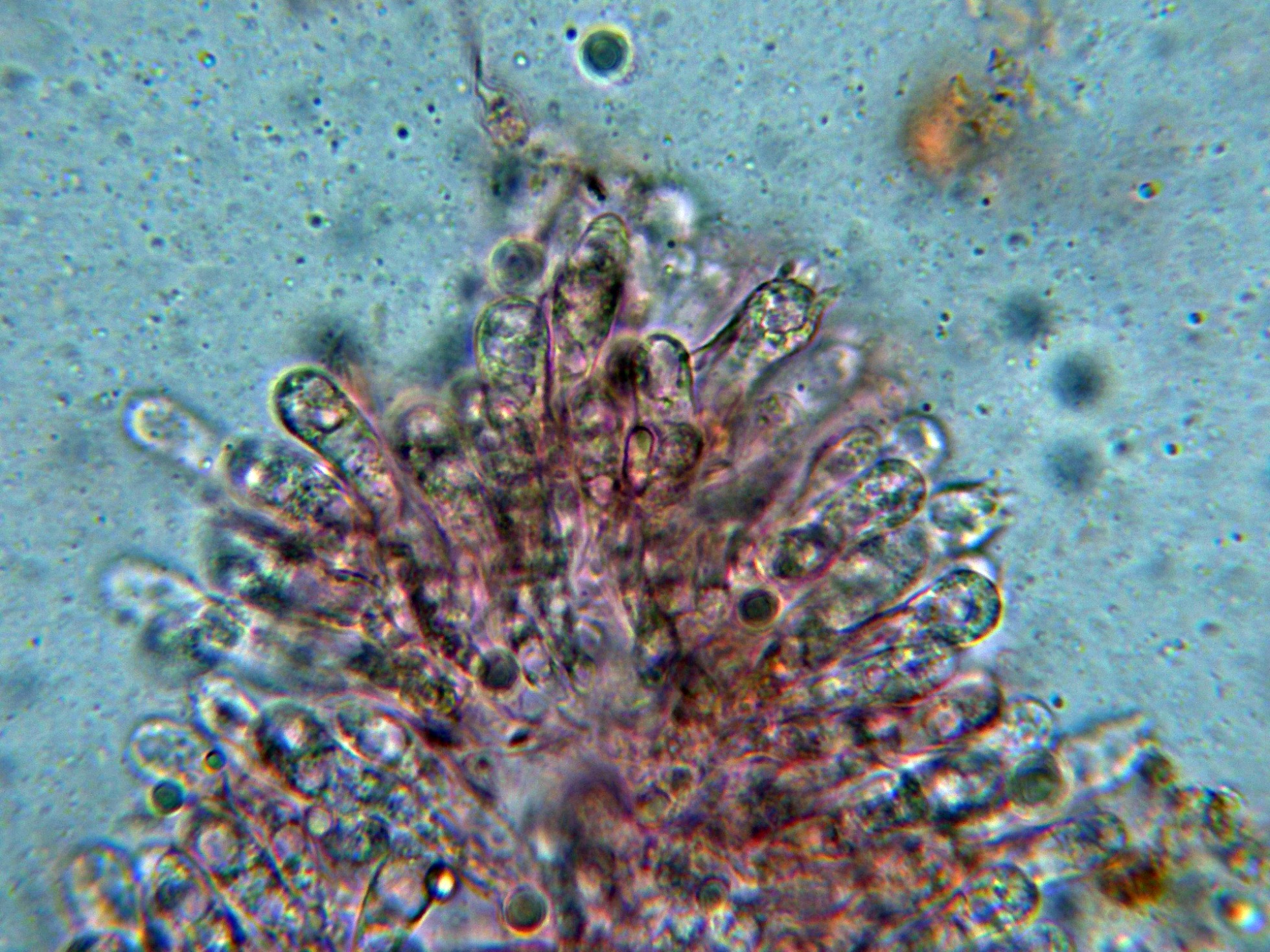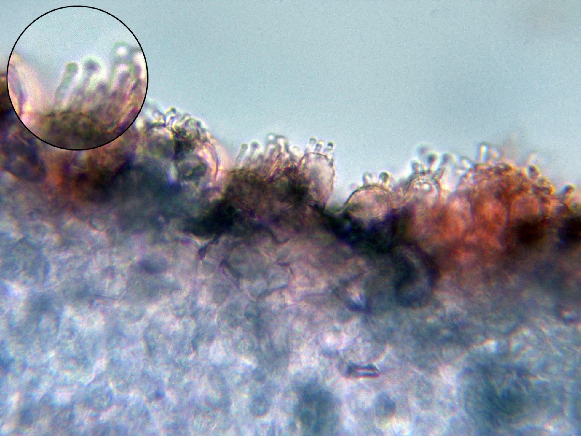 Queilocistidios muy abundantes con digitaciones de ente 2 y 10 micras, algunas de estas digitaciones ligeramente capitadas.