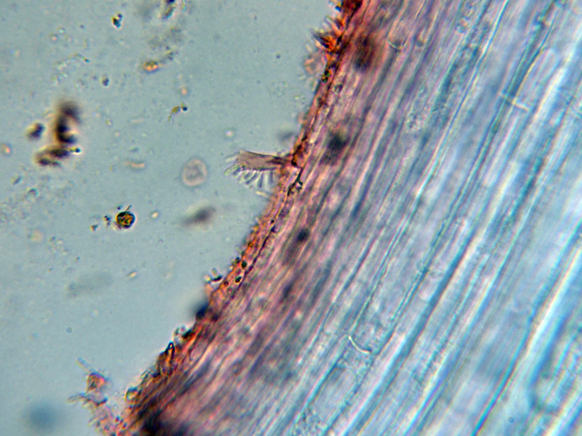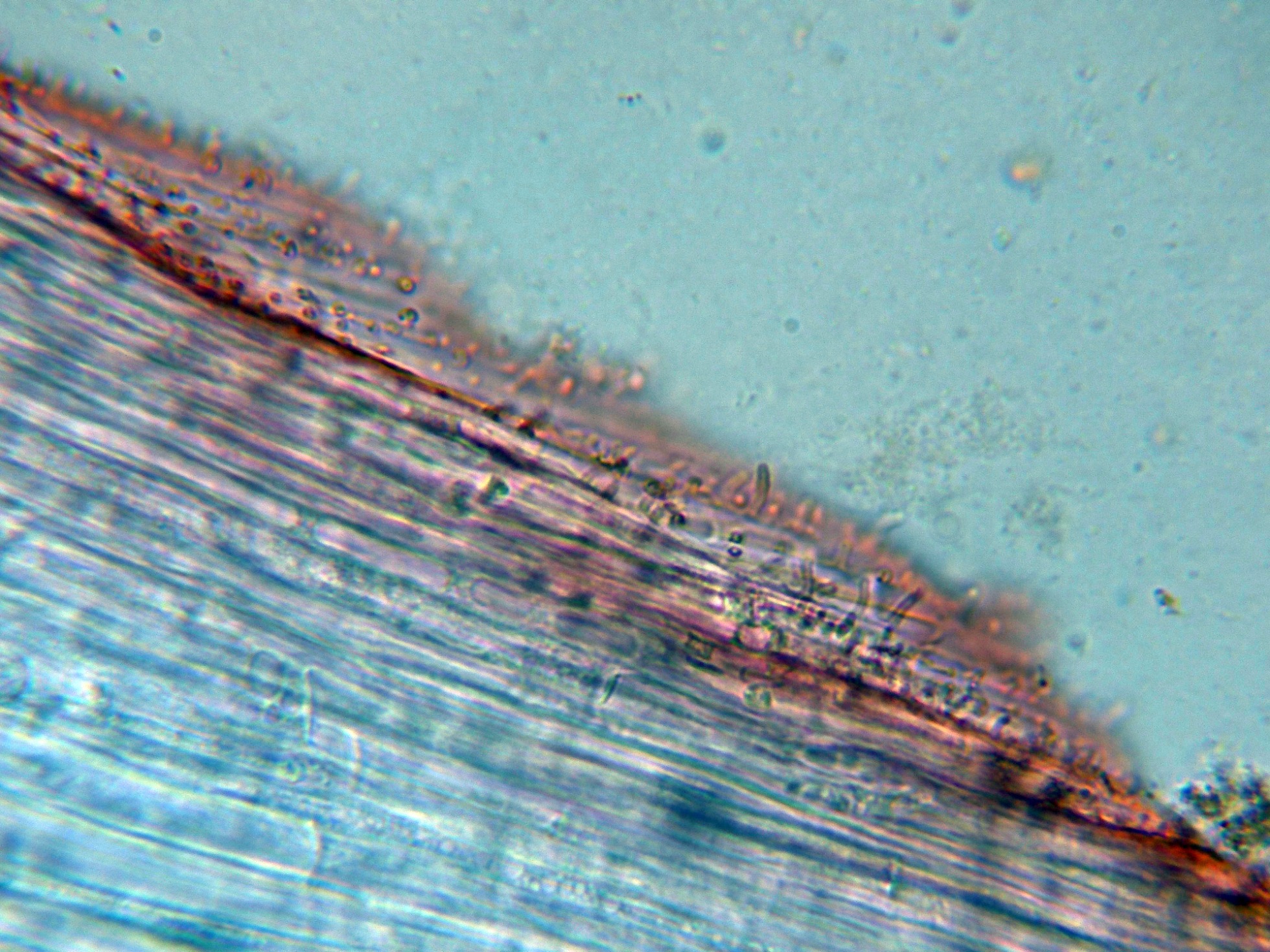 Hifas corticiales de la suprapellis con múltiples excrecencias cortas.