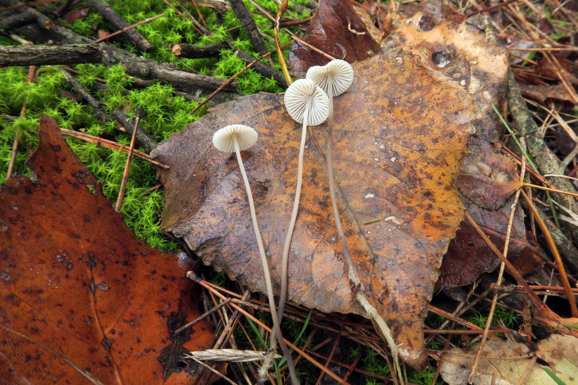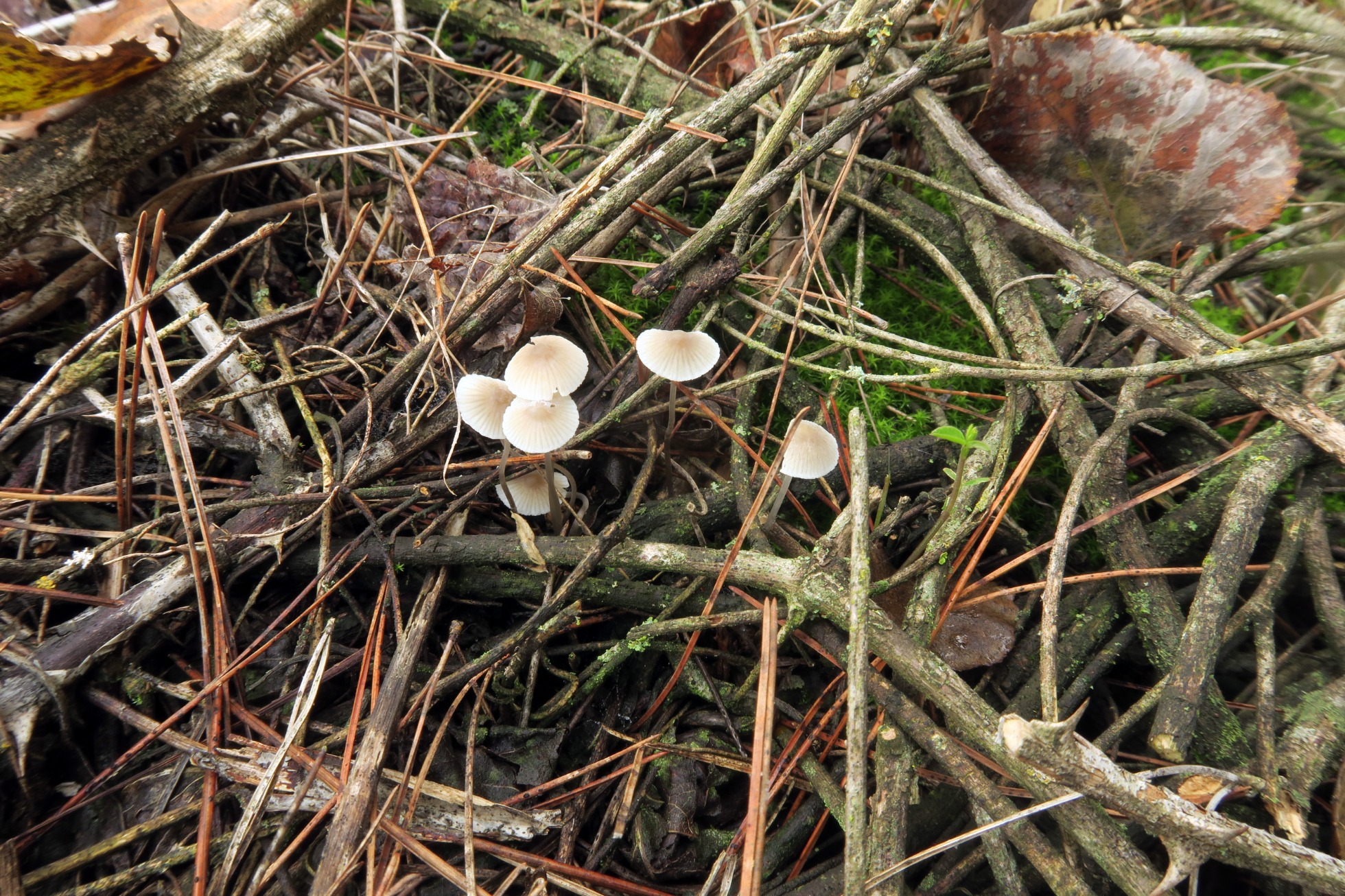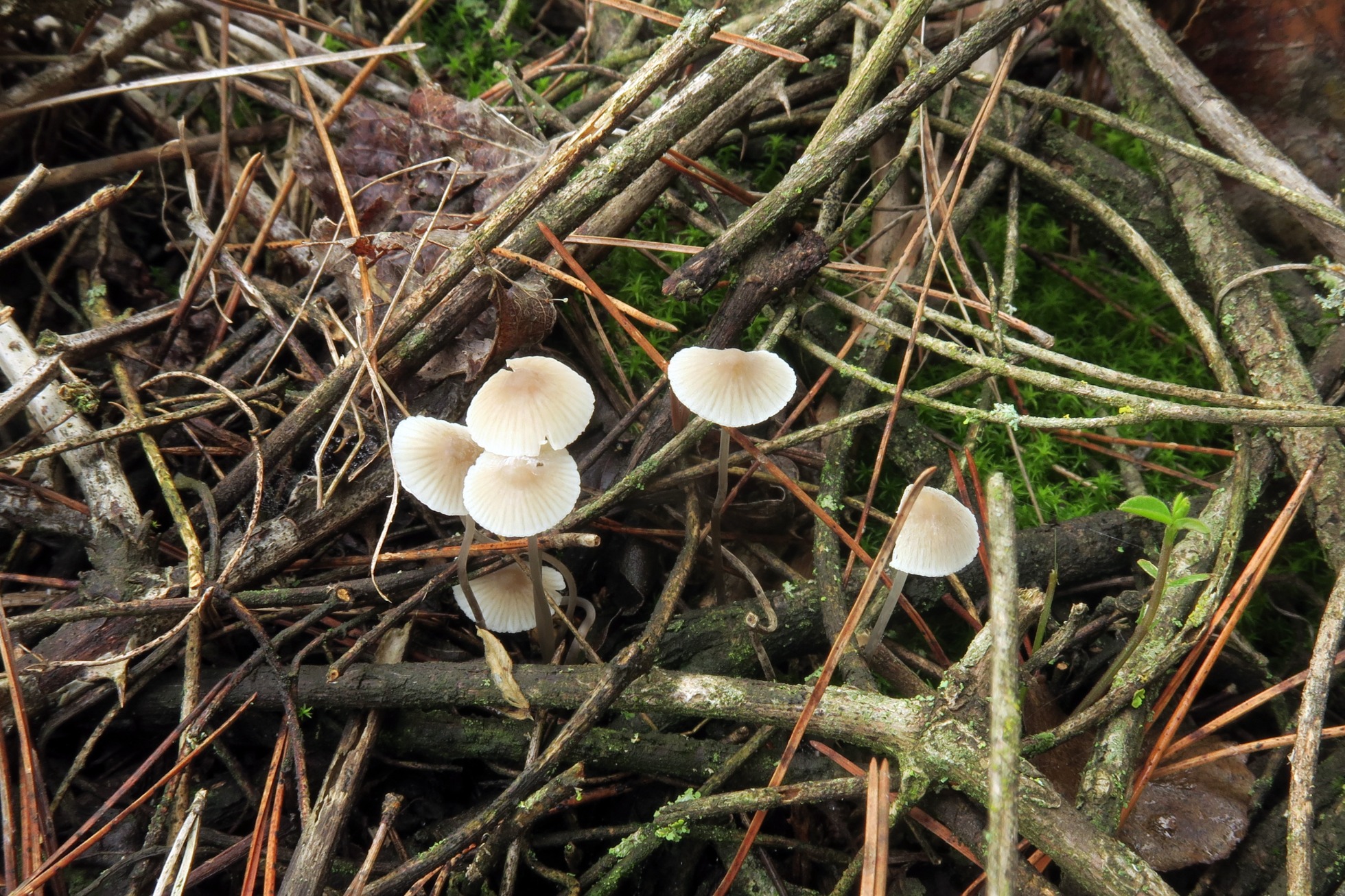 Unas pocas Mycenas fotografiadas el pasado 6 de Diciembre, creciendo de forma gregaria entre el musgo, a la salida de un pinar y entre restos de troncos de Rubus spp.
