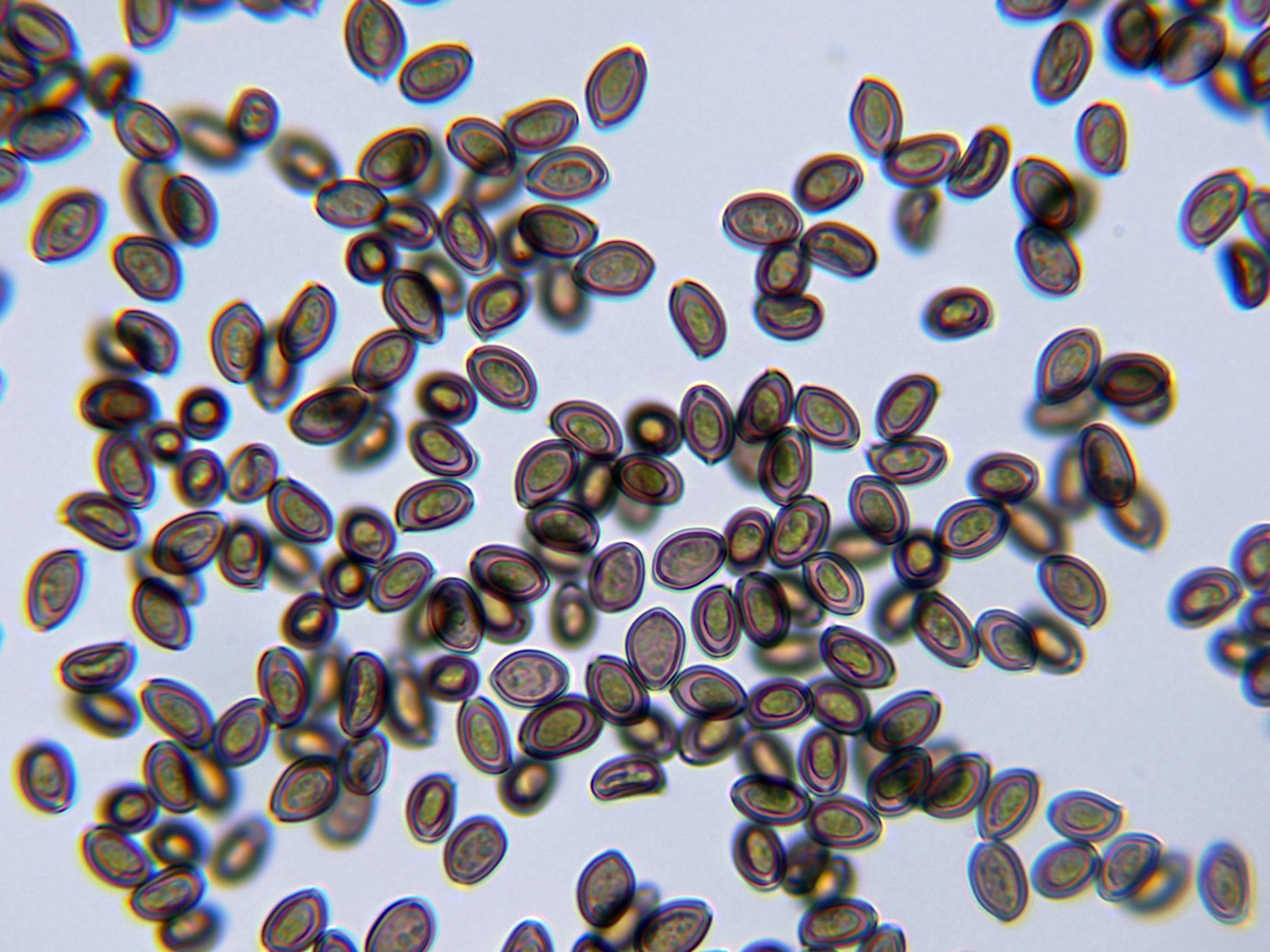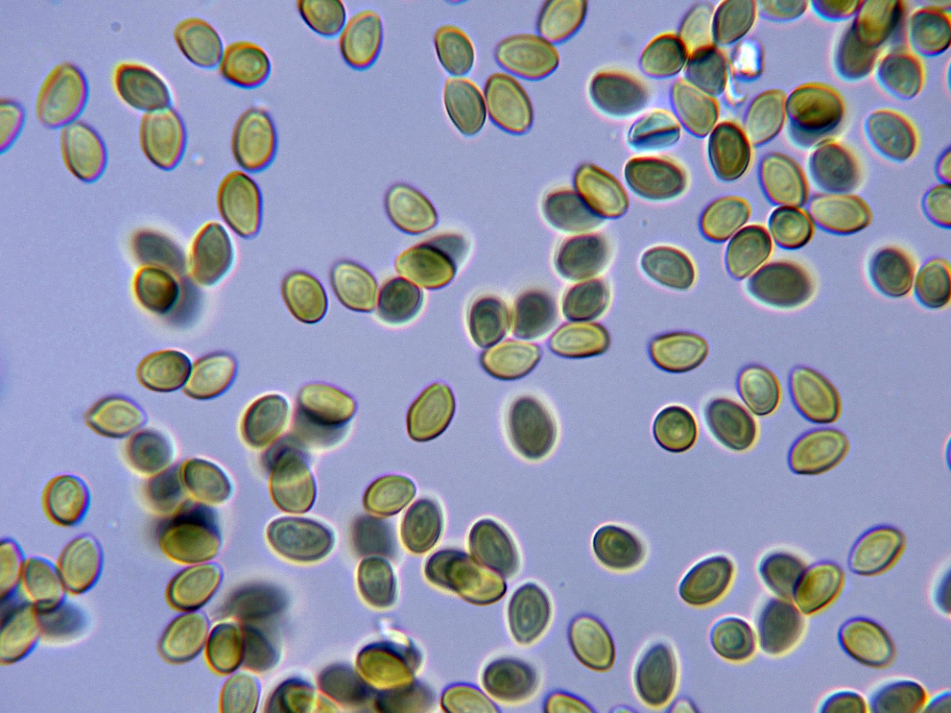 Las esporas de pared gruesa y entre elipsoides y mitriformes: