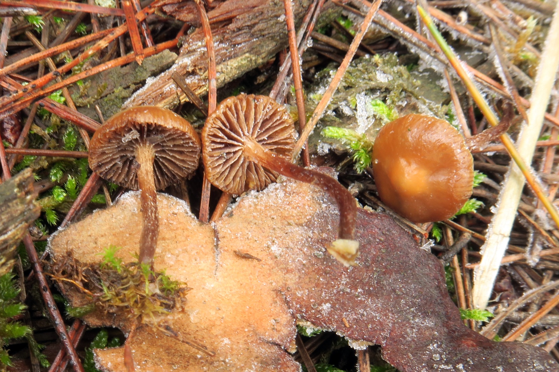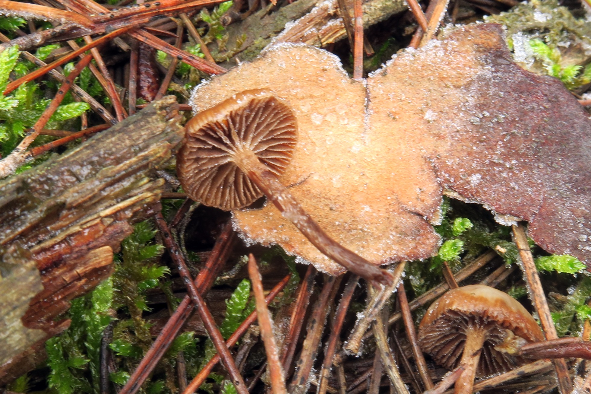 Unas imágenes tomadas el pasado domingo, bajo Pinus pinaster y a -2º, en las imágenes de puede apreciar el efecto de la helada que caía en la zona, aunque esto no me impidió el seguir encontrando "cromos nuevos".