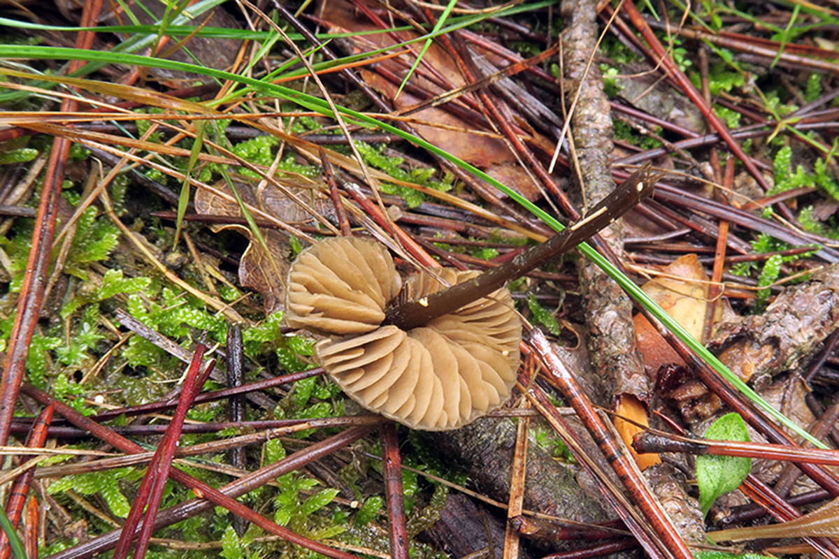 Un Entoloma localizado el pasado 4 de Diciembre bajo Pinus pinaster y algún quejigo (Quercus faginea), de color marrón rojizo, cutícula brillante y transparencia radial de las láminas.