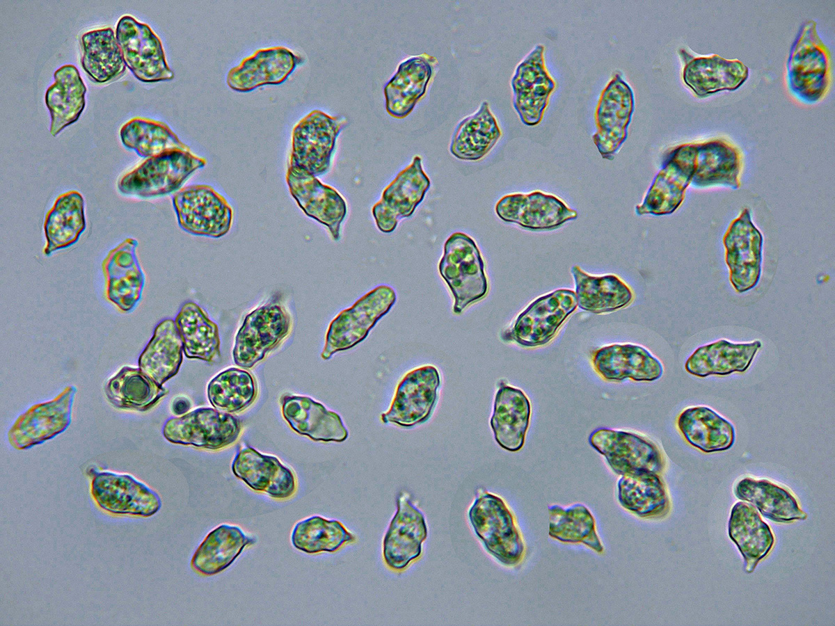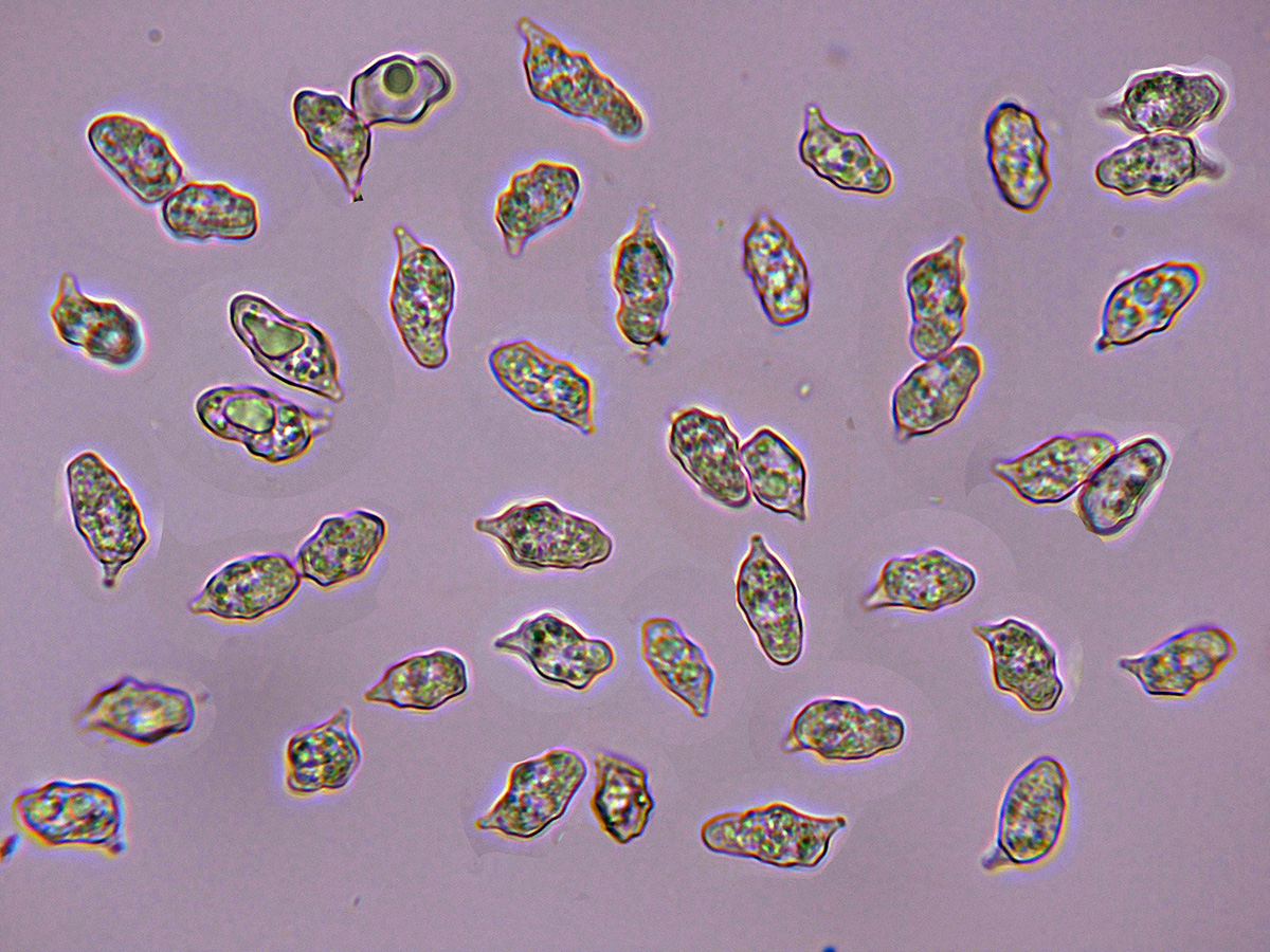 Hola Juan hay muchas especies que aún considerándose tetraspóricas, en su estudio se pueden observar algunos basidios bispóricos y hasta incluso alguno de monospórics, estos basidios son los responsables de producir esporas aberrantes que pueden dar al traste con la identificación, lo curioso es que en las muestras preparadas parece ser que todas las basidiosporas observadas se producirían en basidios tetraspóricos ya que son mucho más isodiamétricas, luego al intentar obtener las esporas por esporulación natural, por alguna razón que desconozco las esporas que soltaron procedían mayoritariamente de basidios mono o bispóricos, aunque admito que en el proceso obtuve pocas esporas, prácticamente las de las dos imágenes, las imágenes se corresponden con una composición de hasta 40 fotos.