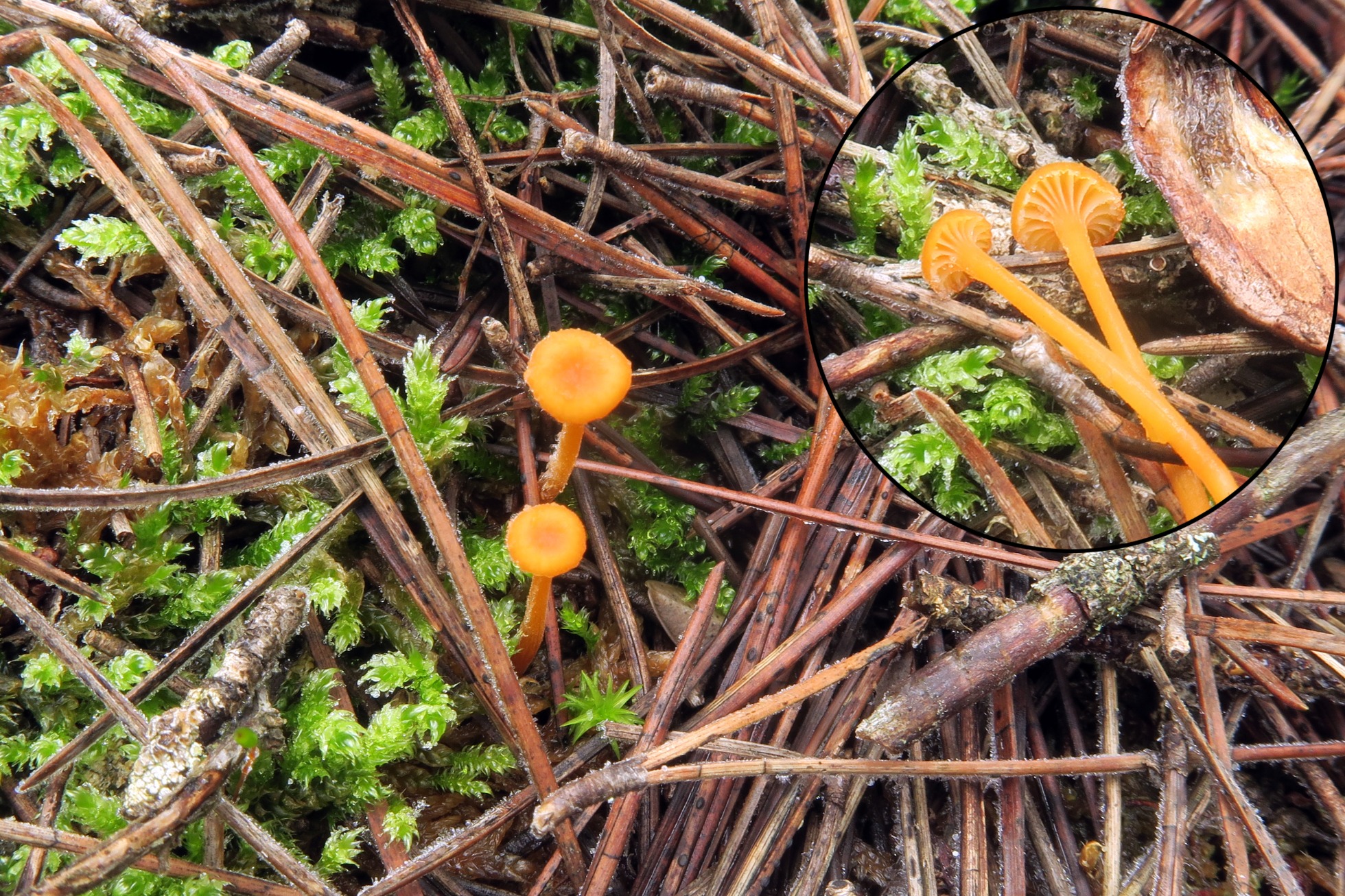 Una Omphalina, probablemente la Omphalina pyxidata.