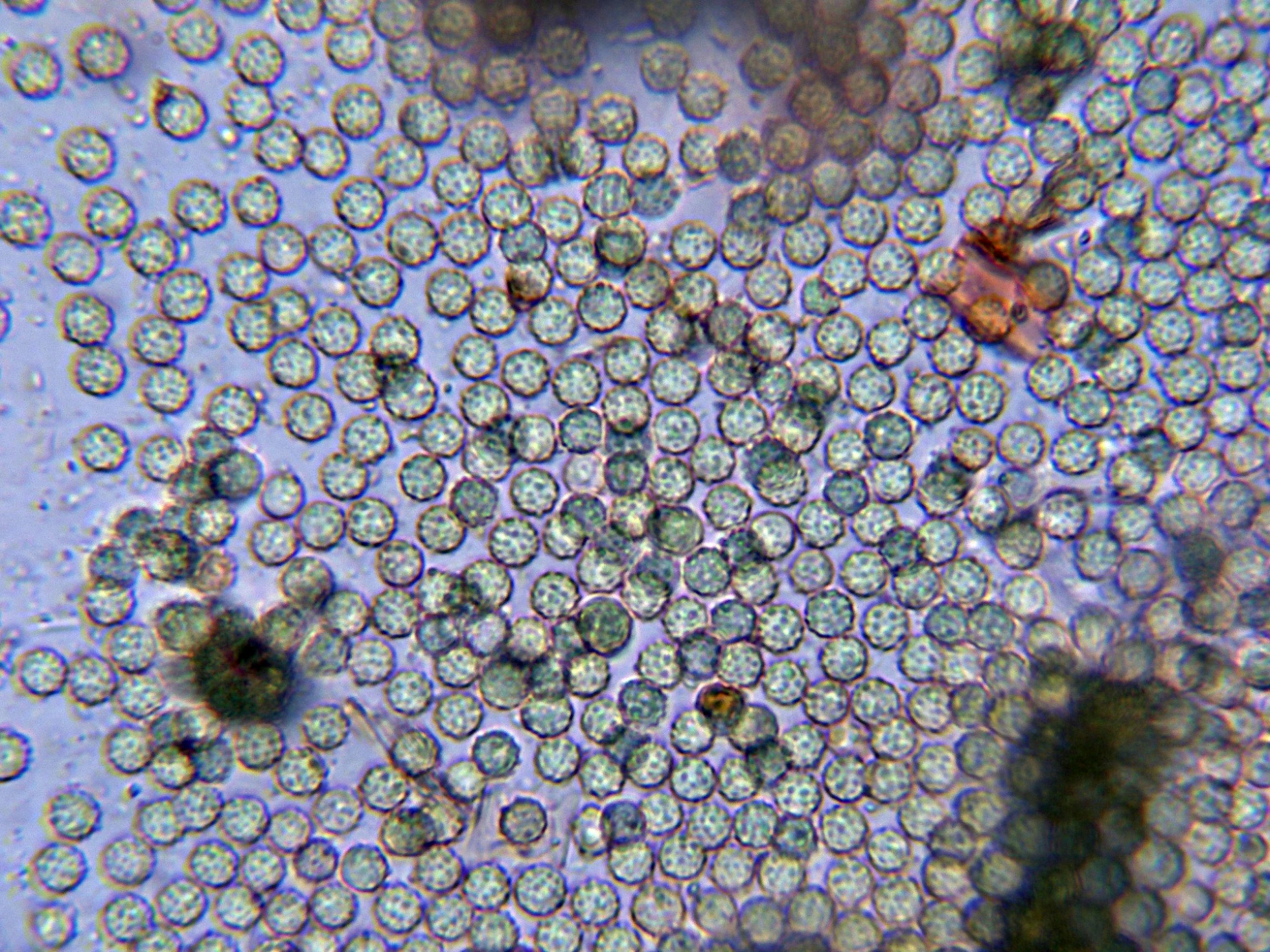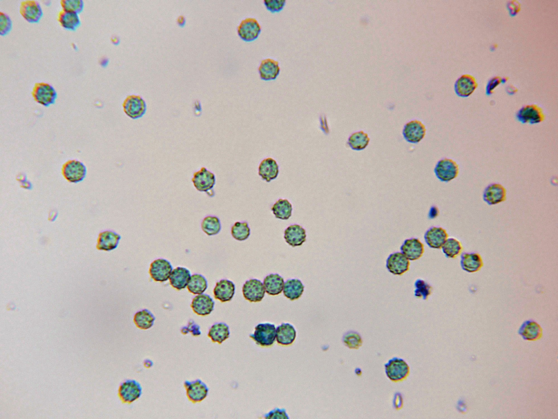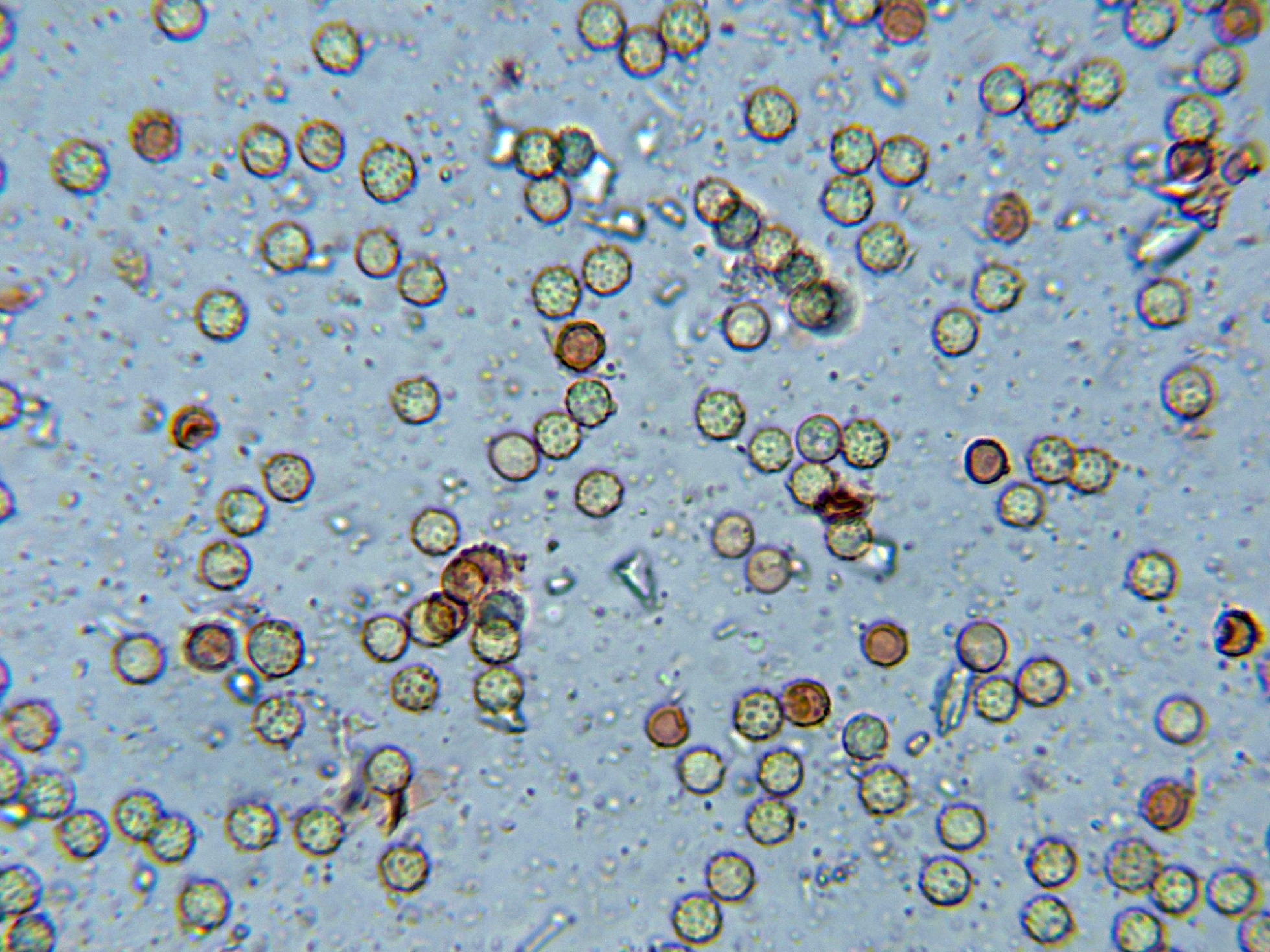 Estos conidios completamente esféricos y verrucosos con unas medidas de: