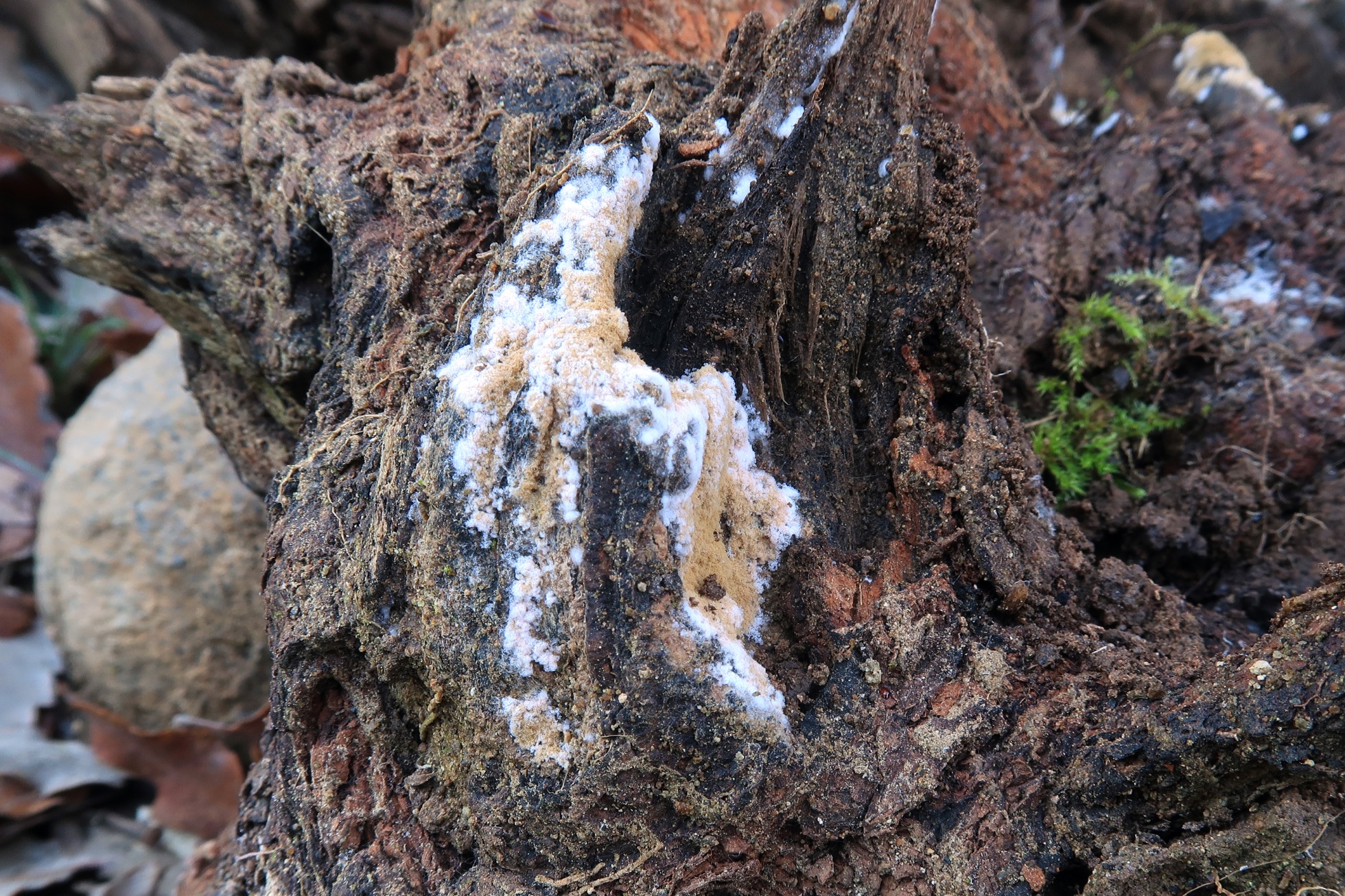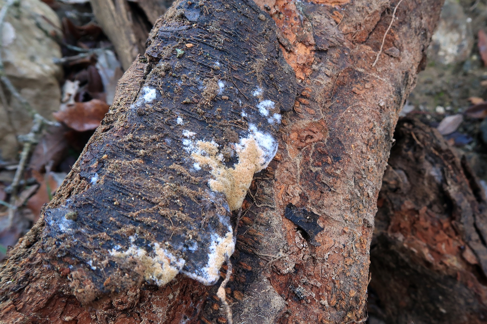El anamorfo de un Pezizal localizado ayer domingo sobre un tronco leñoso en descomposición en la parte que estaba en contacto con el suelo.