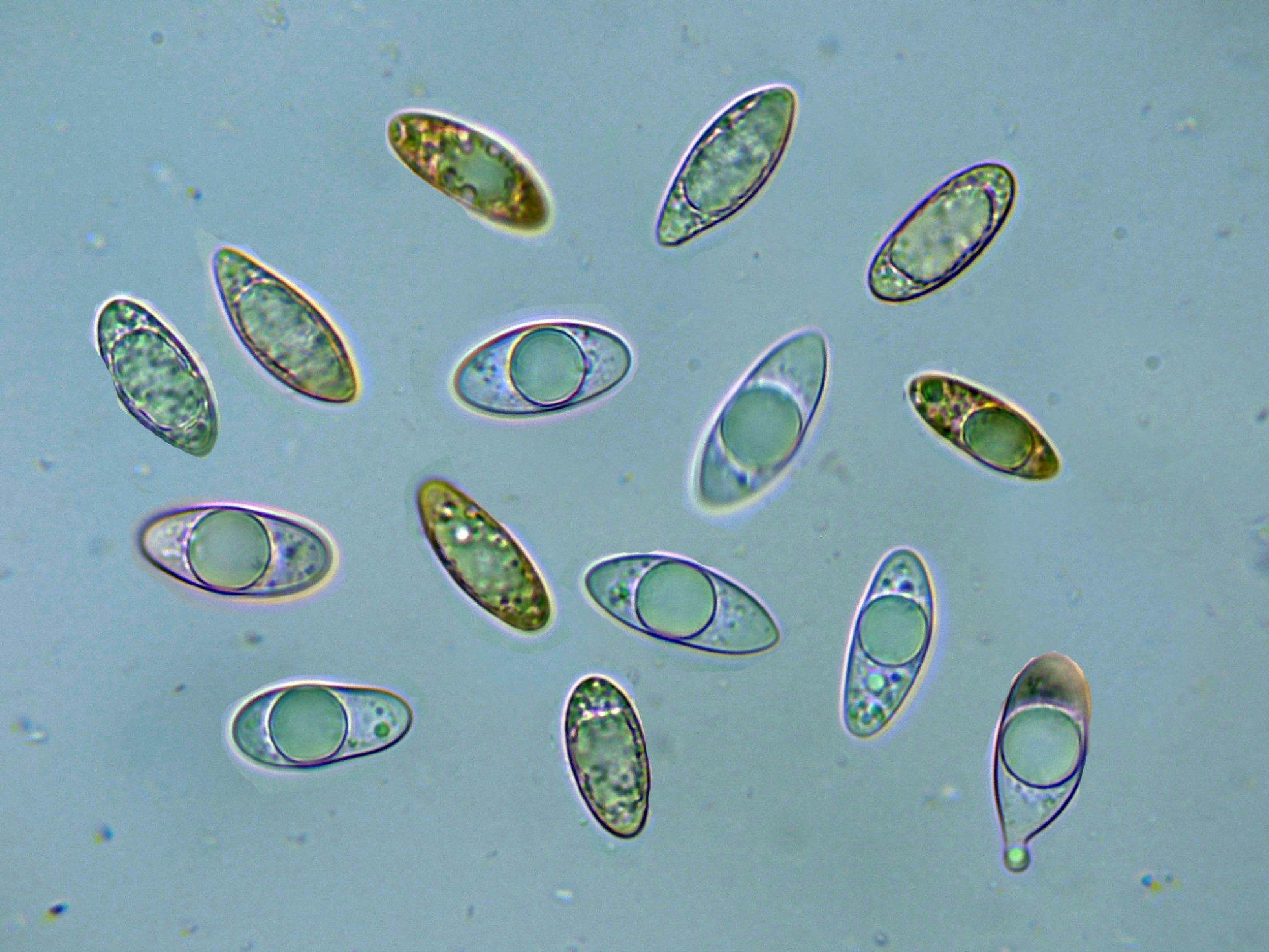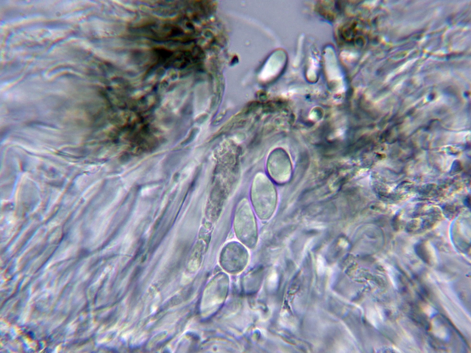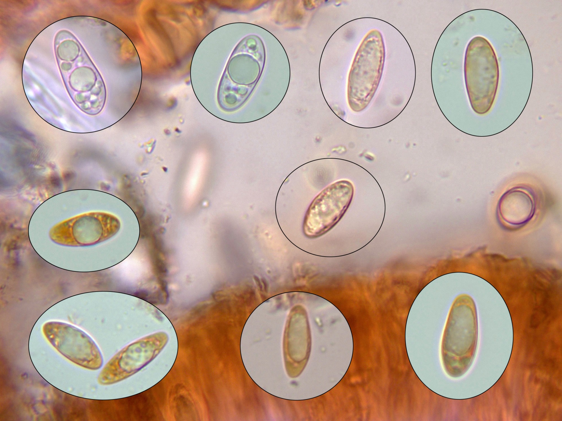Observaciones: Las medidas esporales varían en función del autor consultado según CNALH de 17-25 x 8-12 µm., según Lichens marins de 20-24 x 10-15 µm., según Irish Lichens de (17-)20-24(-27) x (7.5-)10-12.5(-14.5) µm., según Wikipedia de 18–25 x 8–13 μm.,aun así las del presente estudio, teniendo en cuenta la variabilidad, entrarían dentro del rango que se le atribuye a la especie.