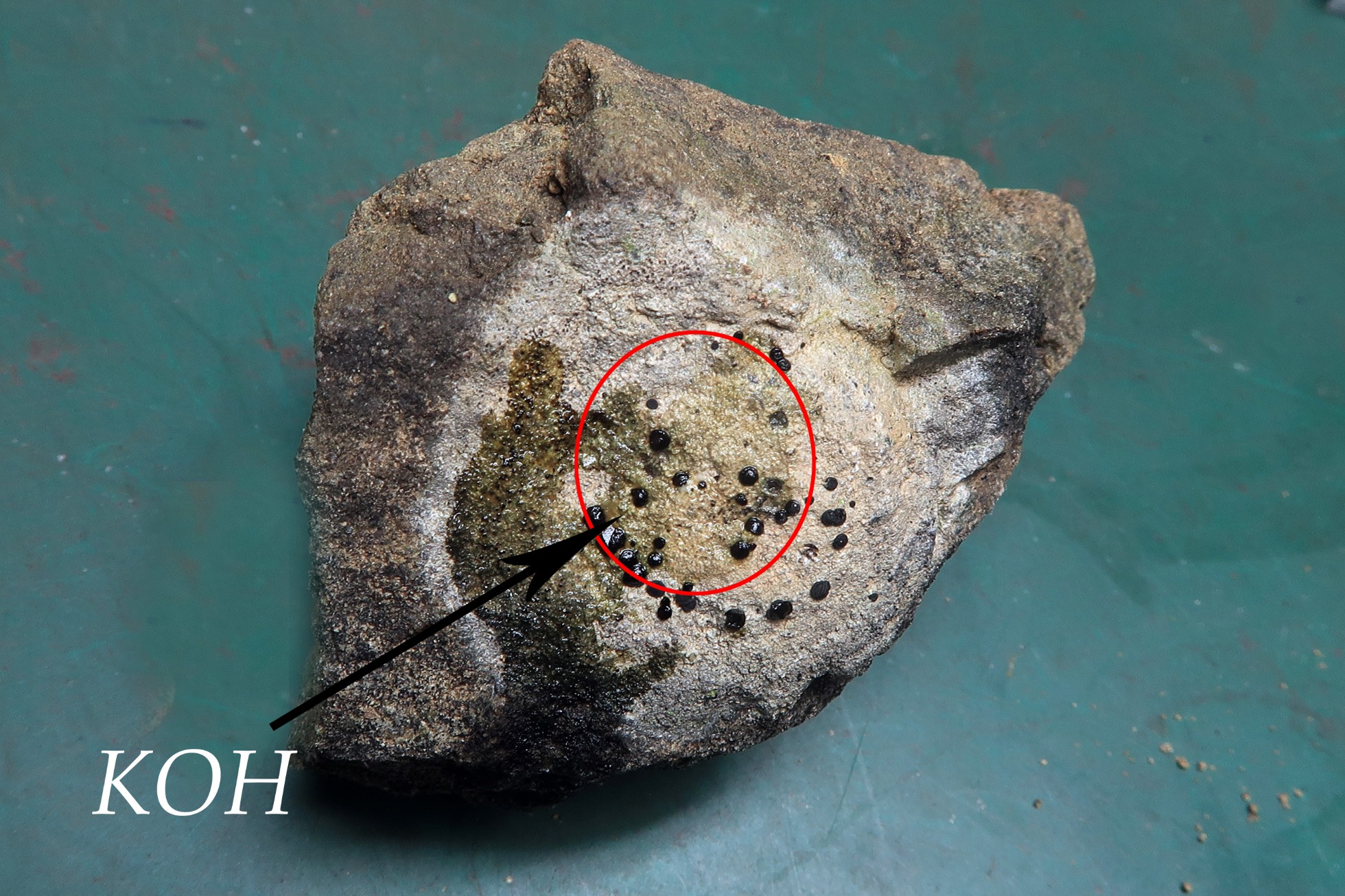 Talo muy delgado sin un borde definido, que no reacciona con el KOH.