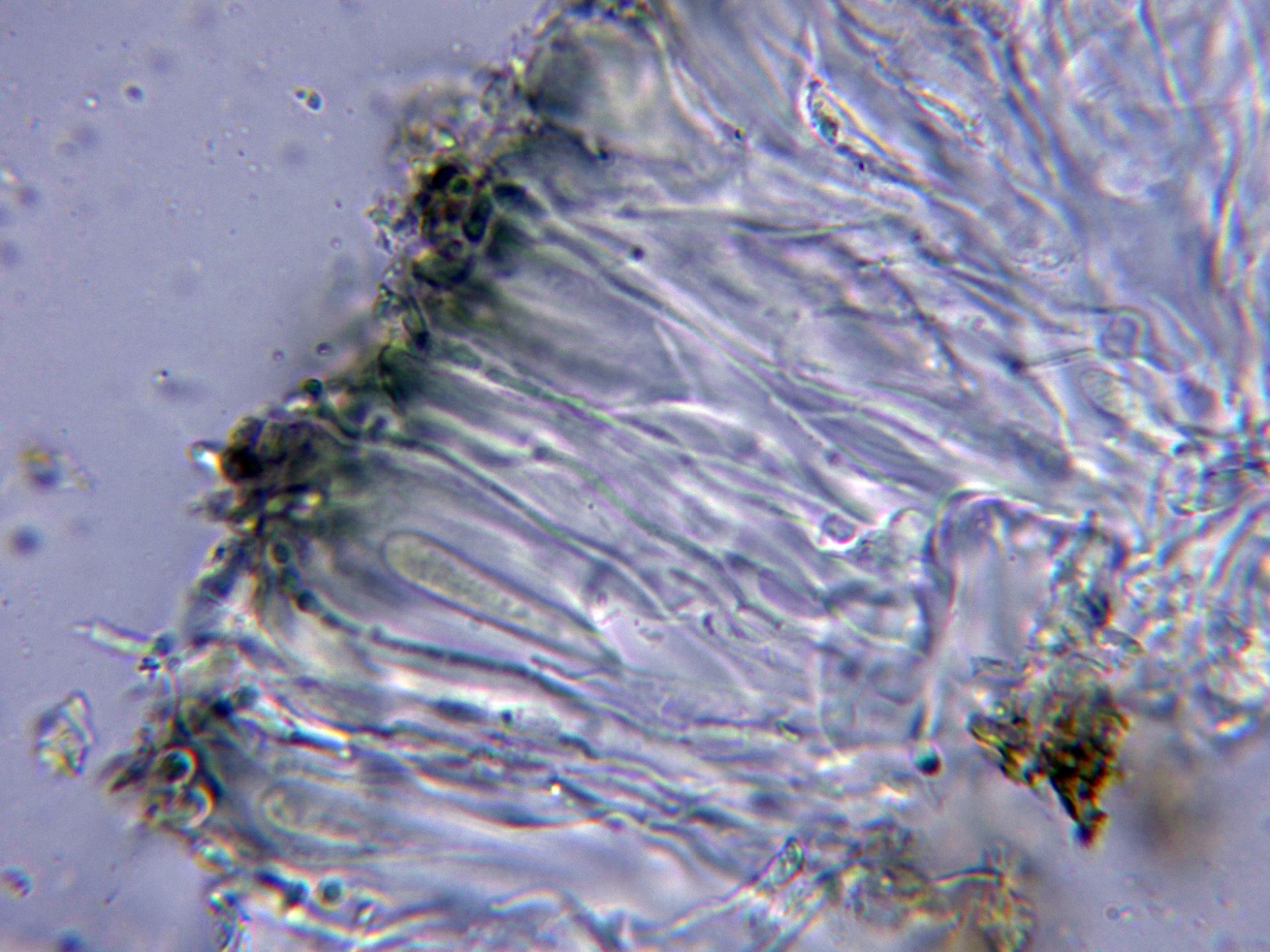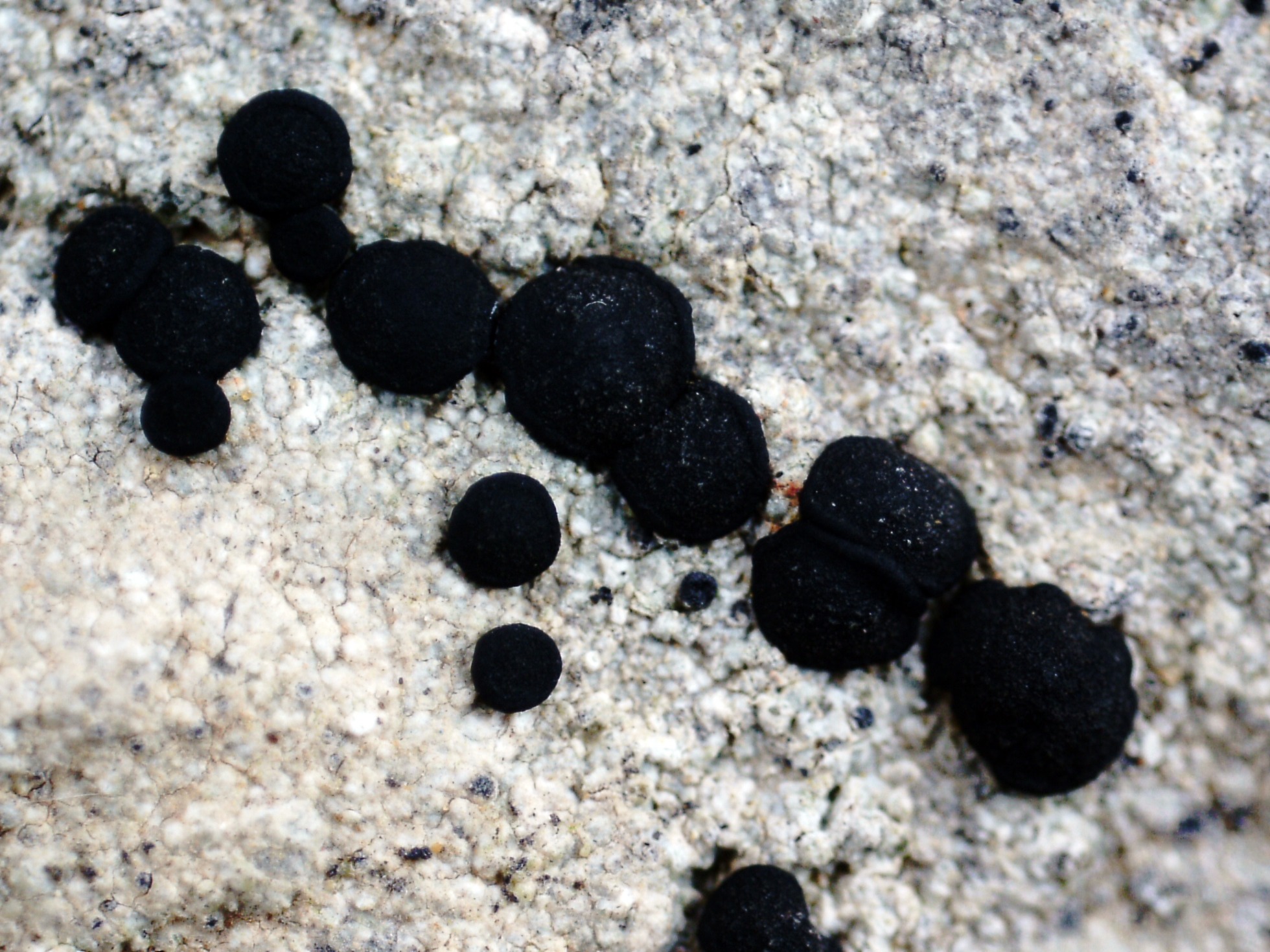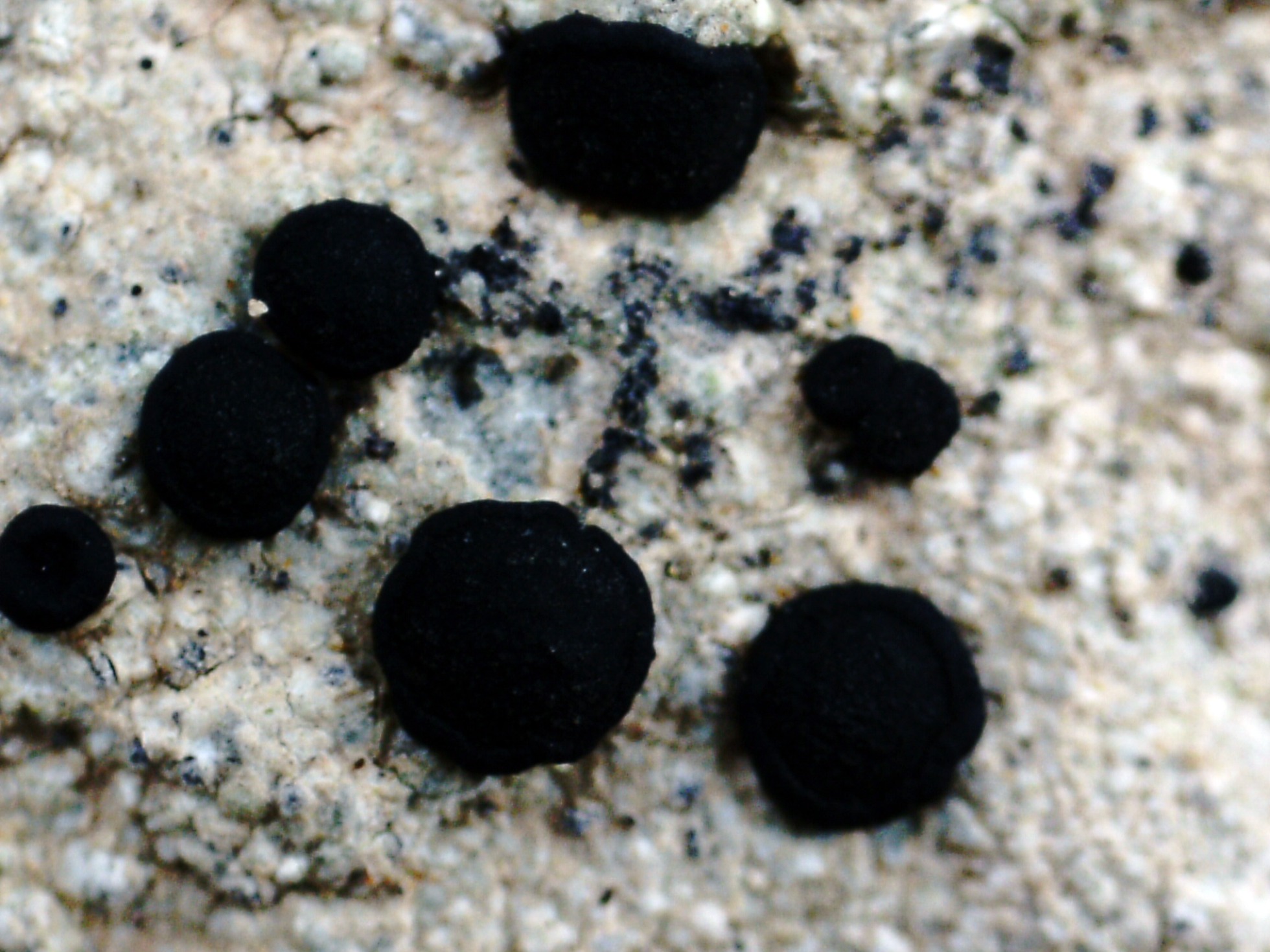 Peritecios de color negro de hasta 0,7 mm., más numerosos y pequeños en la zona de crecimiento.