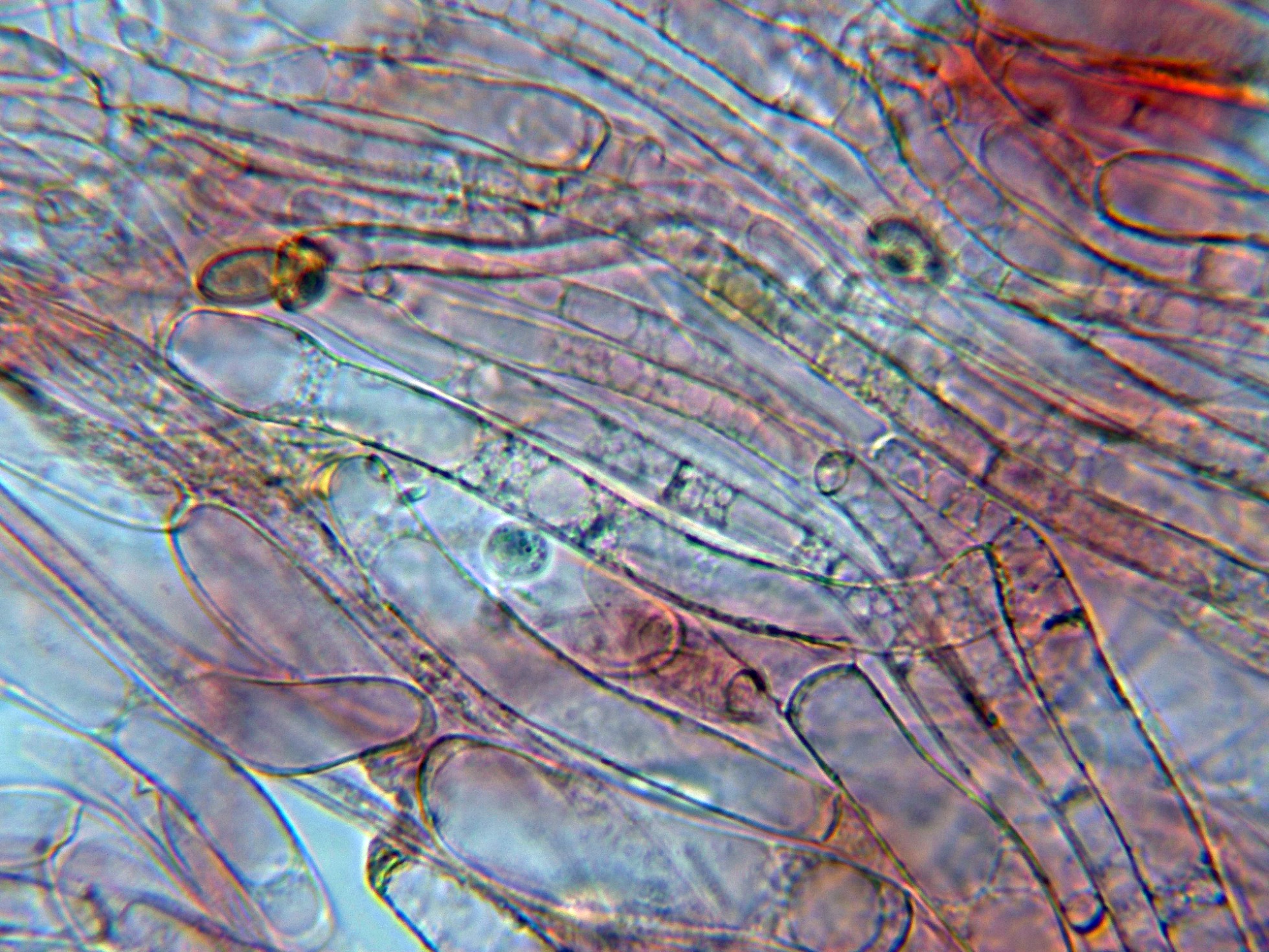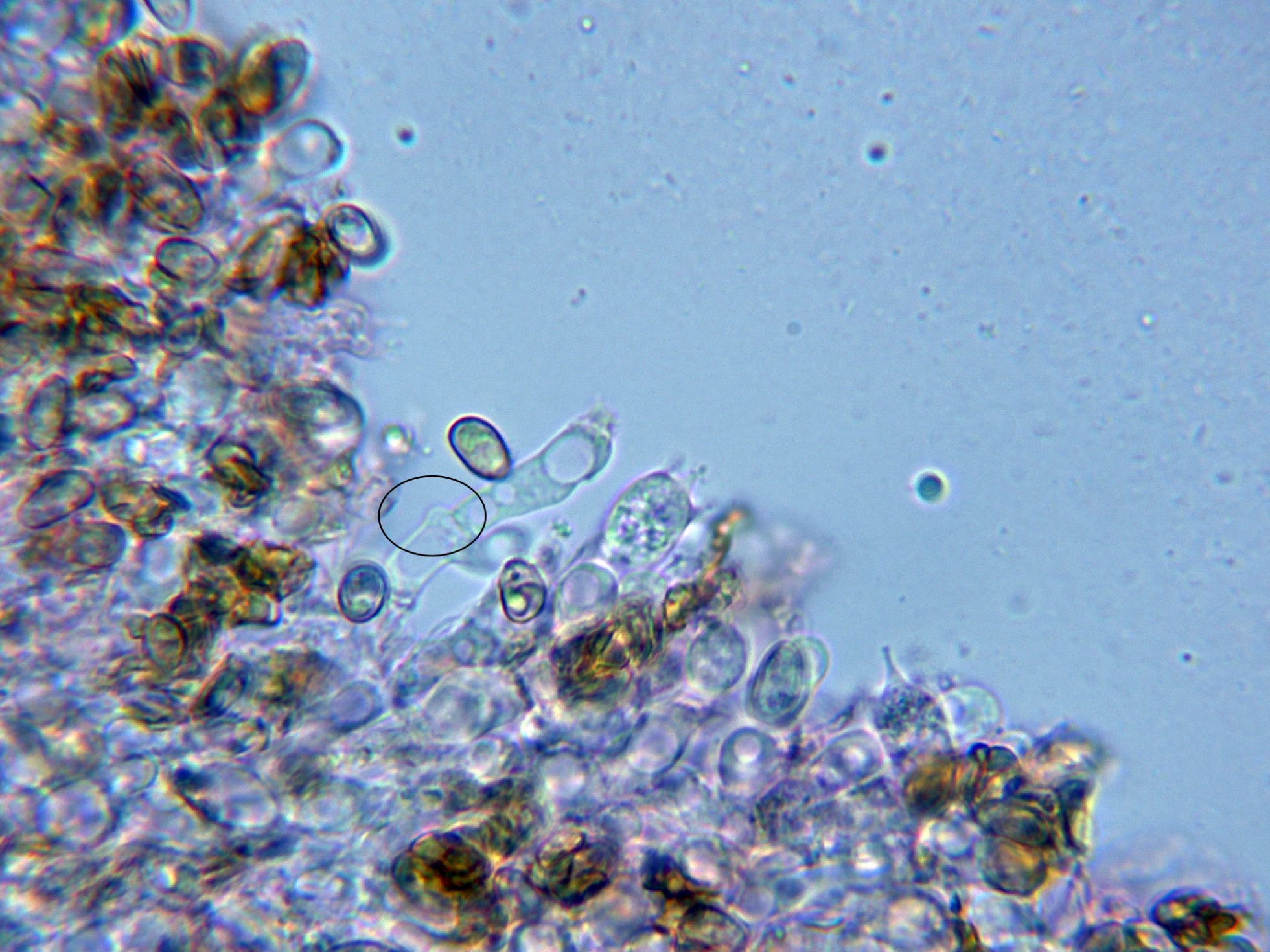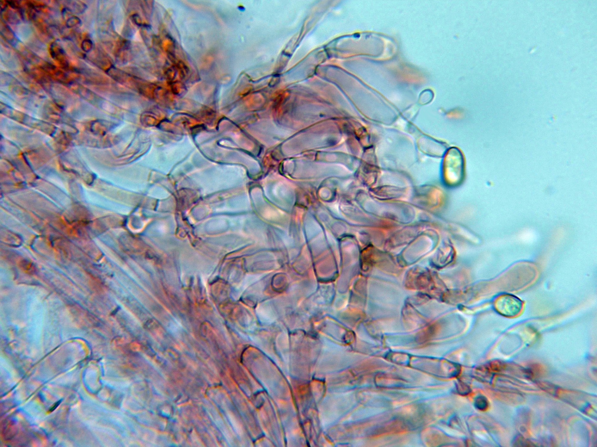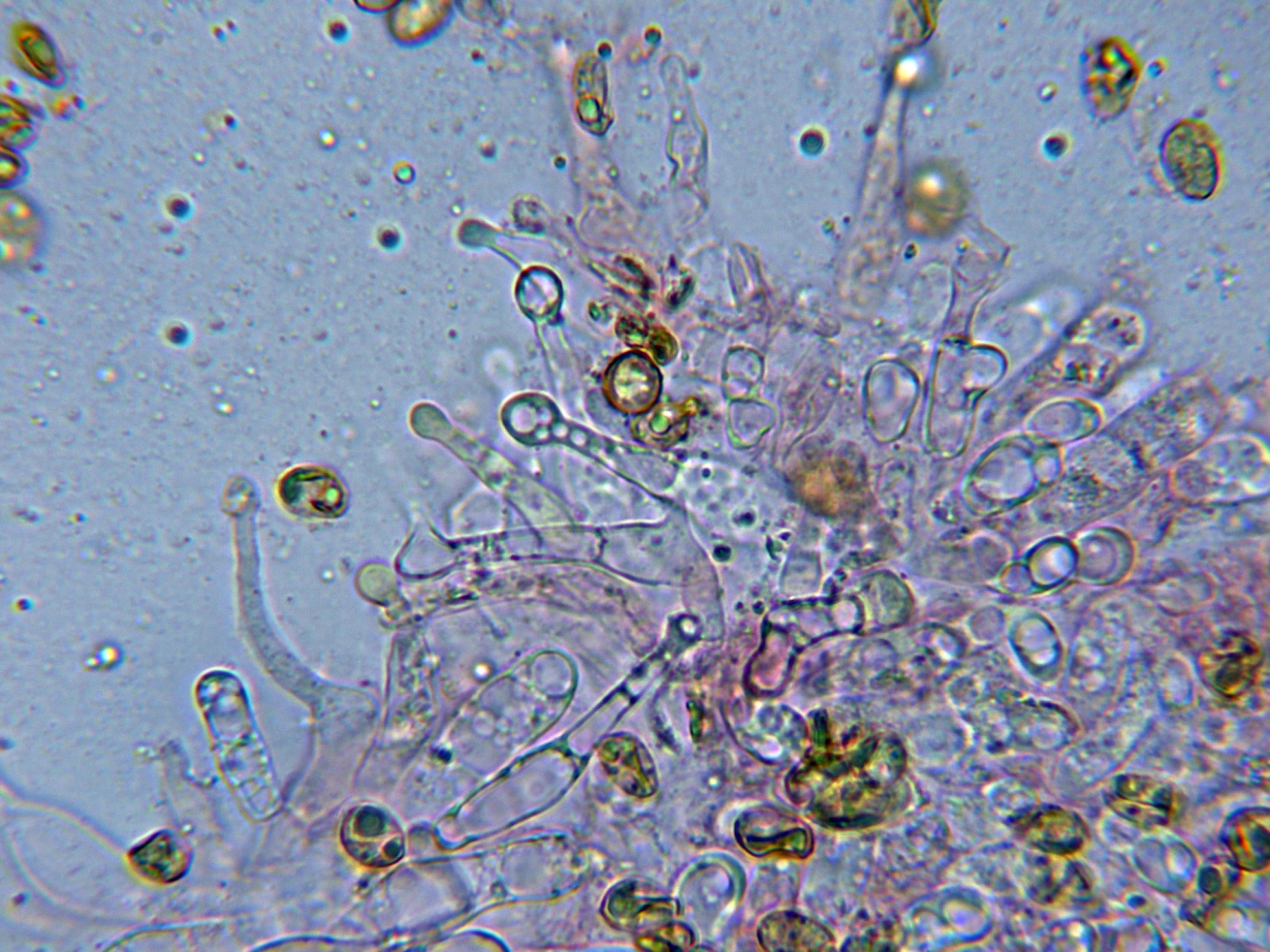 Parte alta del pie con caulocistidios ensanchados en el ápice, con tendencia a capitados.