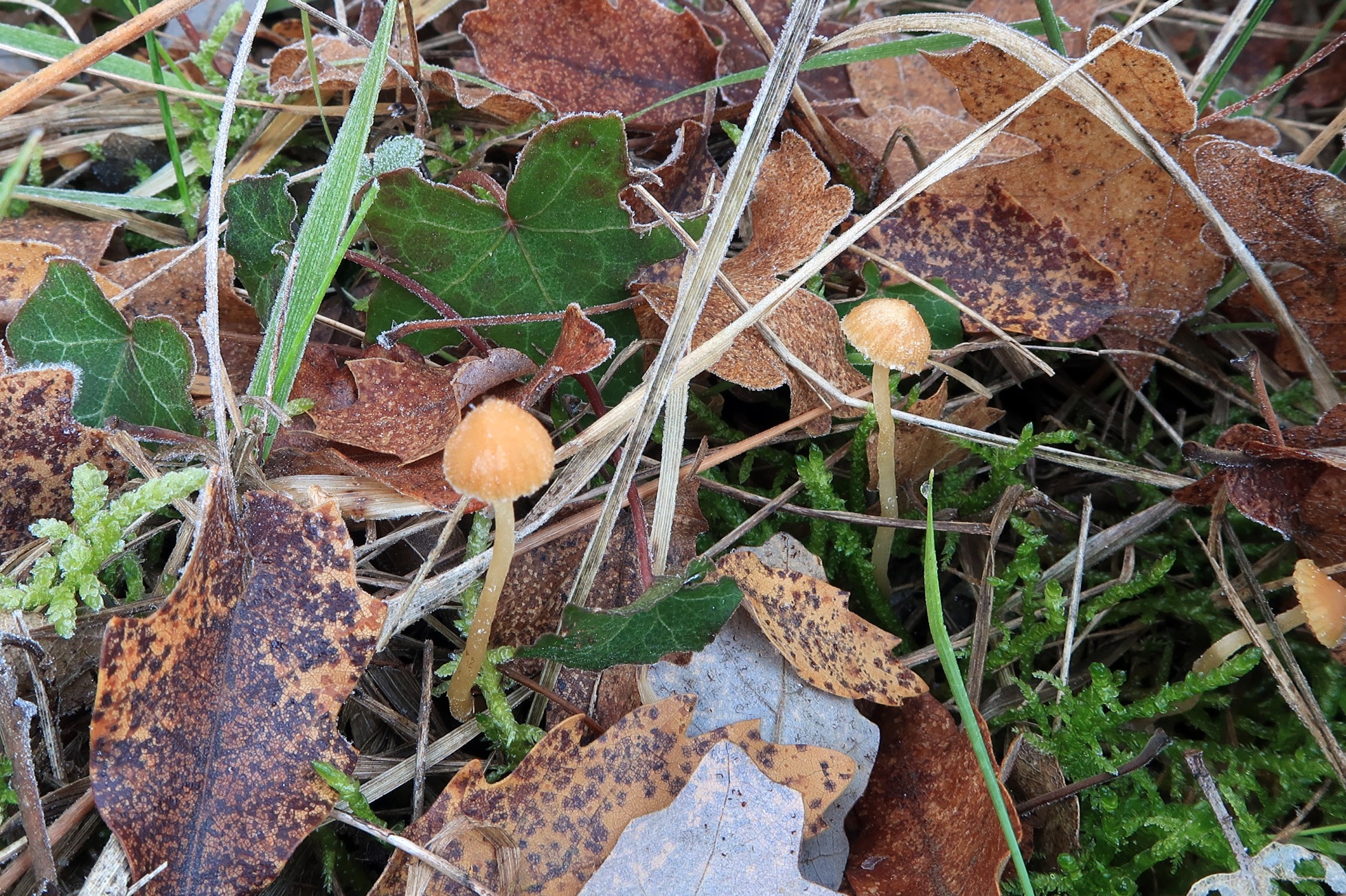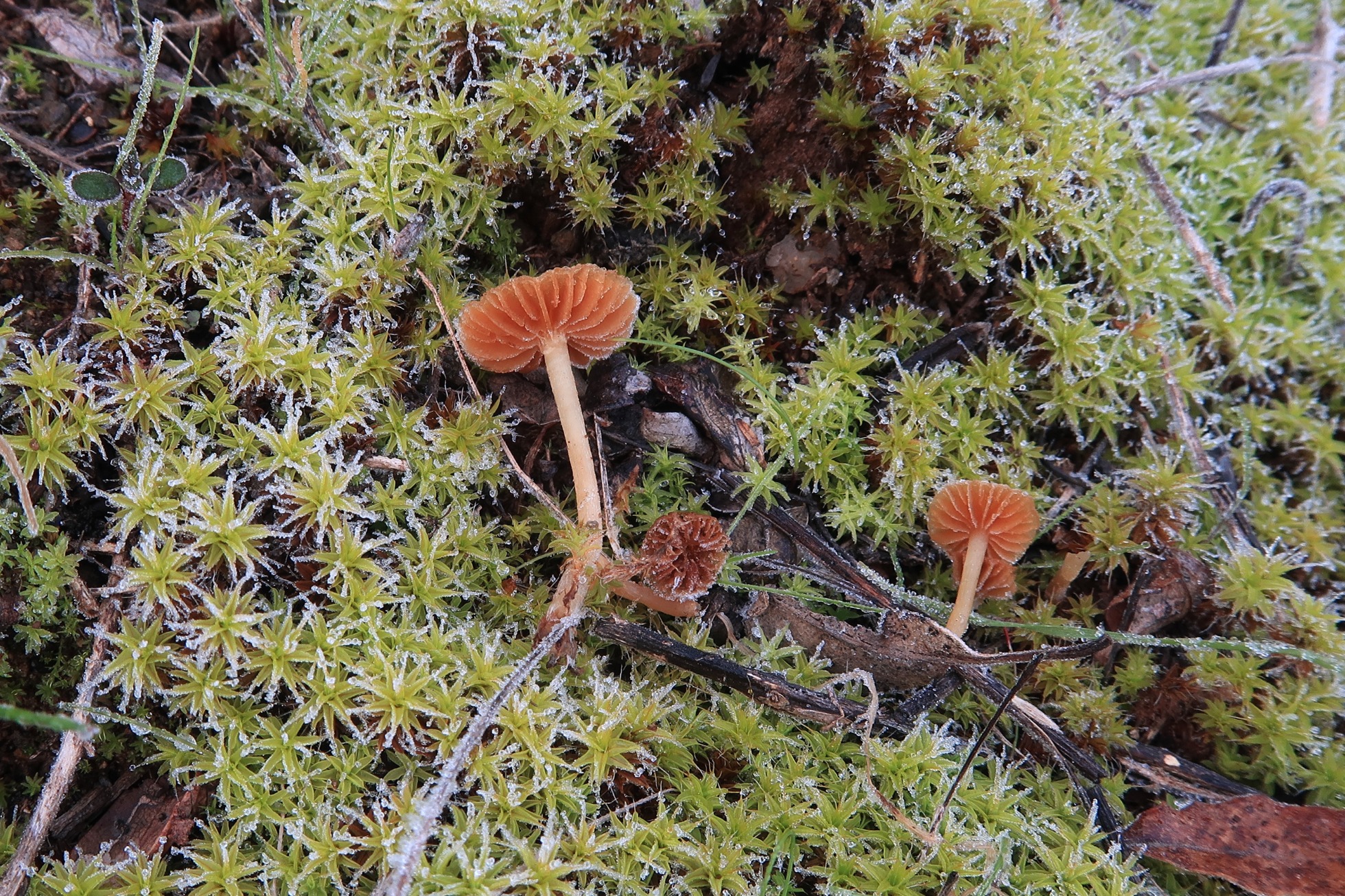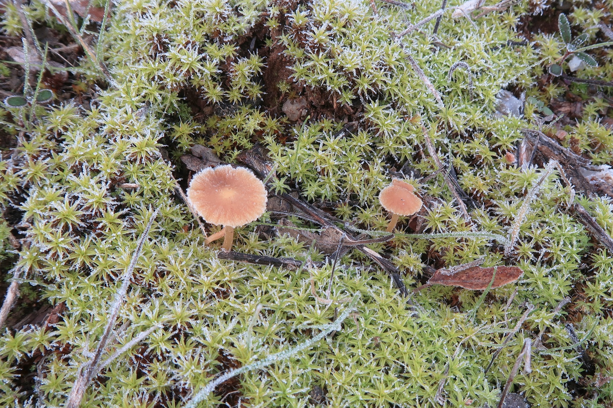 Unas pequeñas Galerinas del pasado domingo brotando sobre el musgo congelado del suelo.