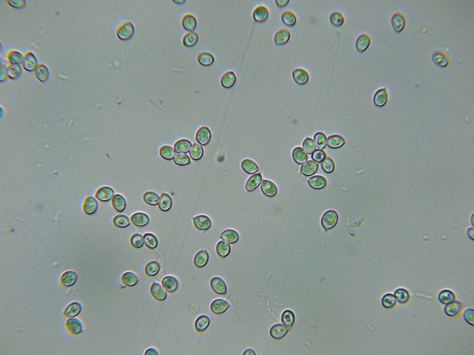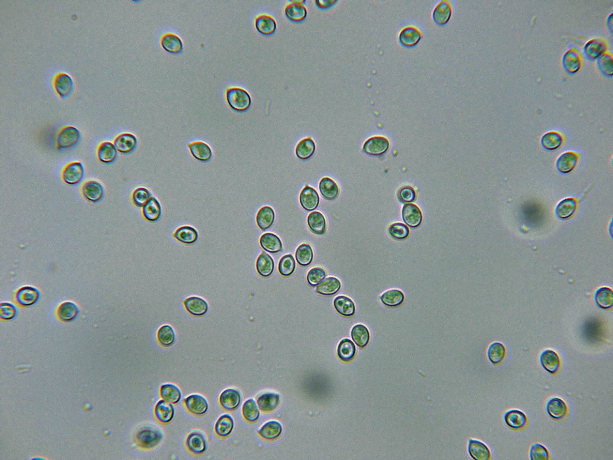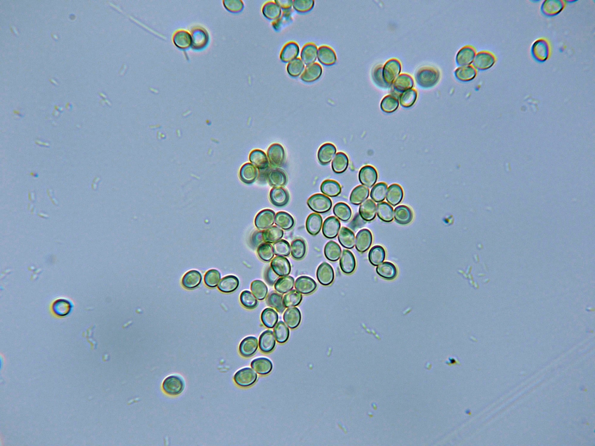Esta característica cianófila la comparten también sus esporas, estas esporas en este medio se puede observar mejor el detalle de su pared gruesa: