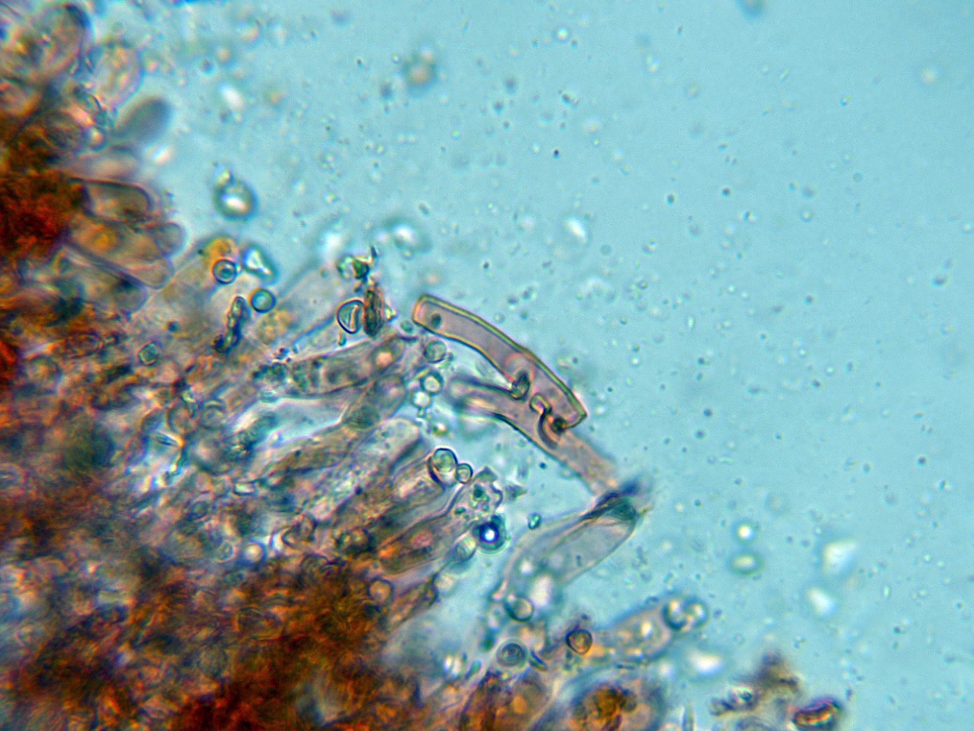 Hifas subiculares de difícil observación, provistas de gruesas fíbulas.