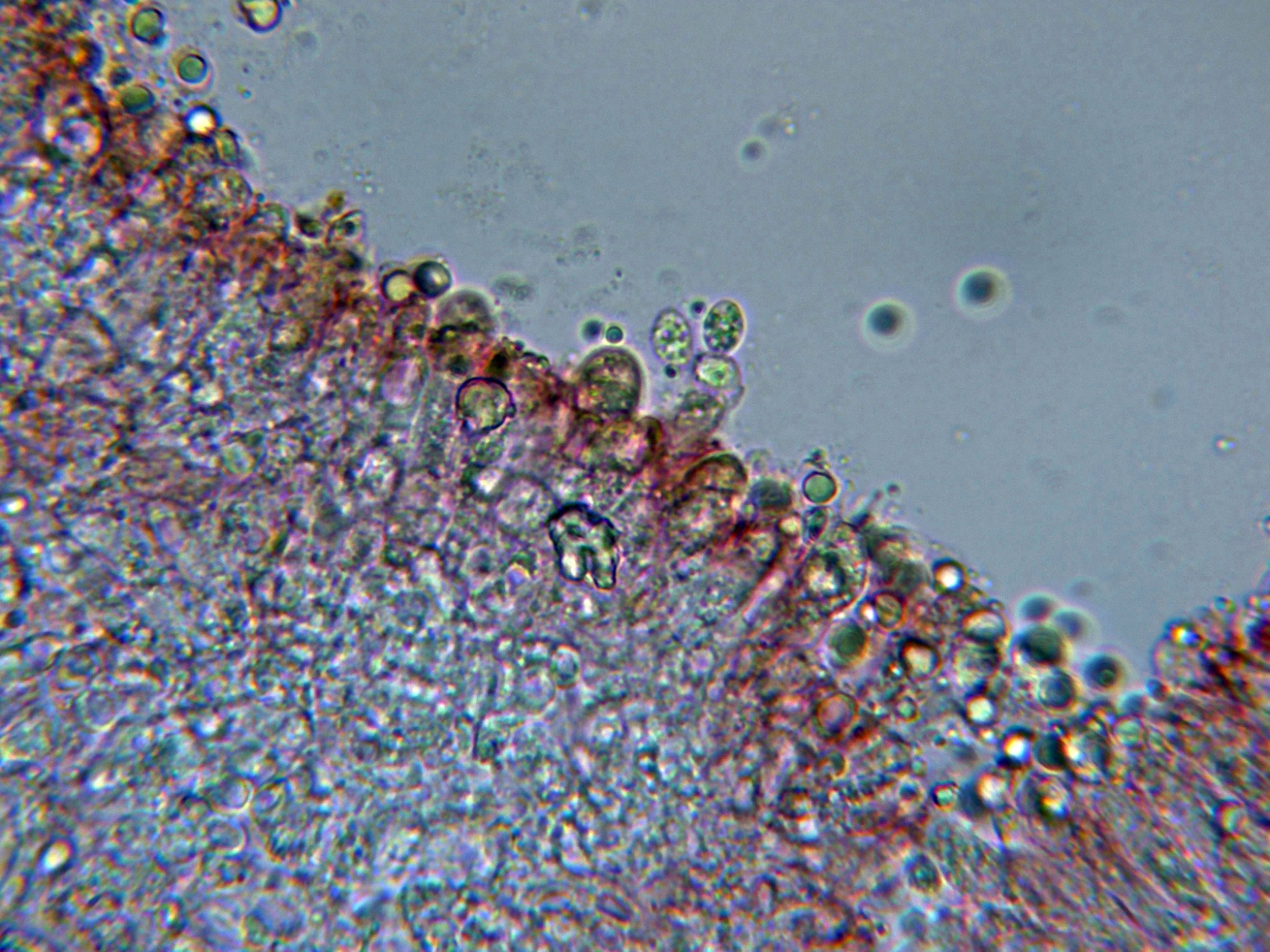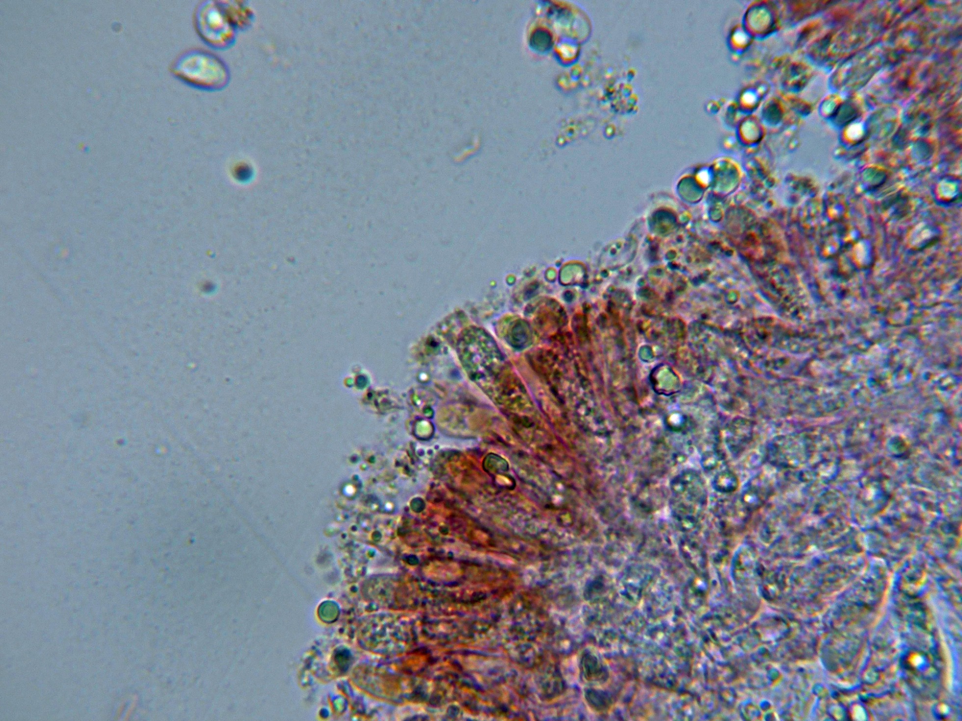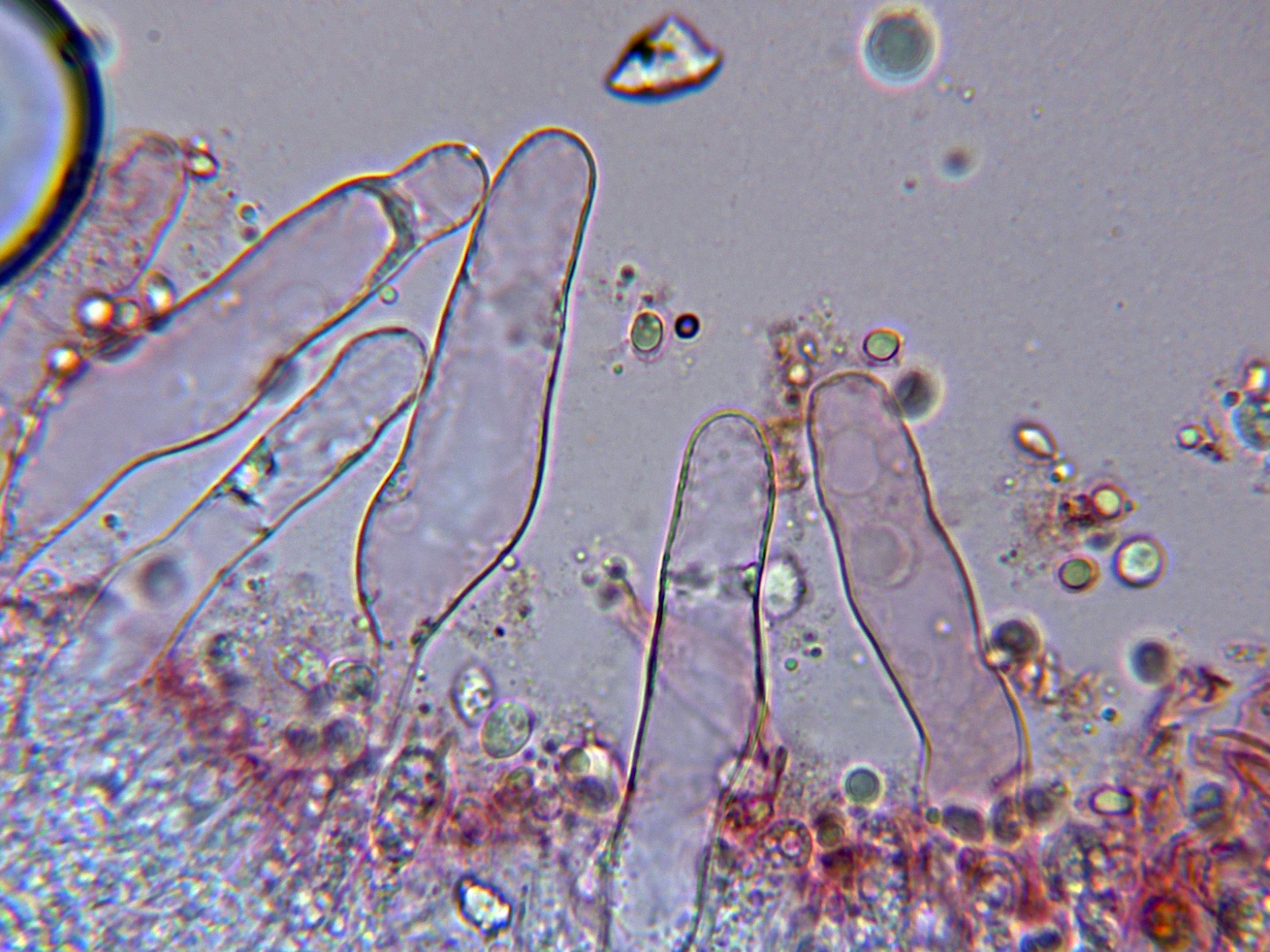 Queilocistidios cilíndricos, algunos ligeramente fusiformes.