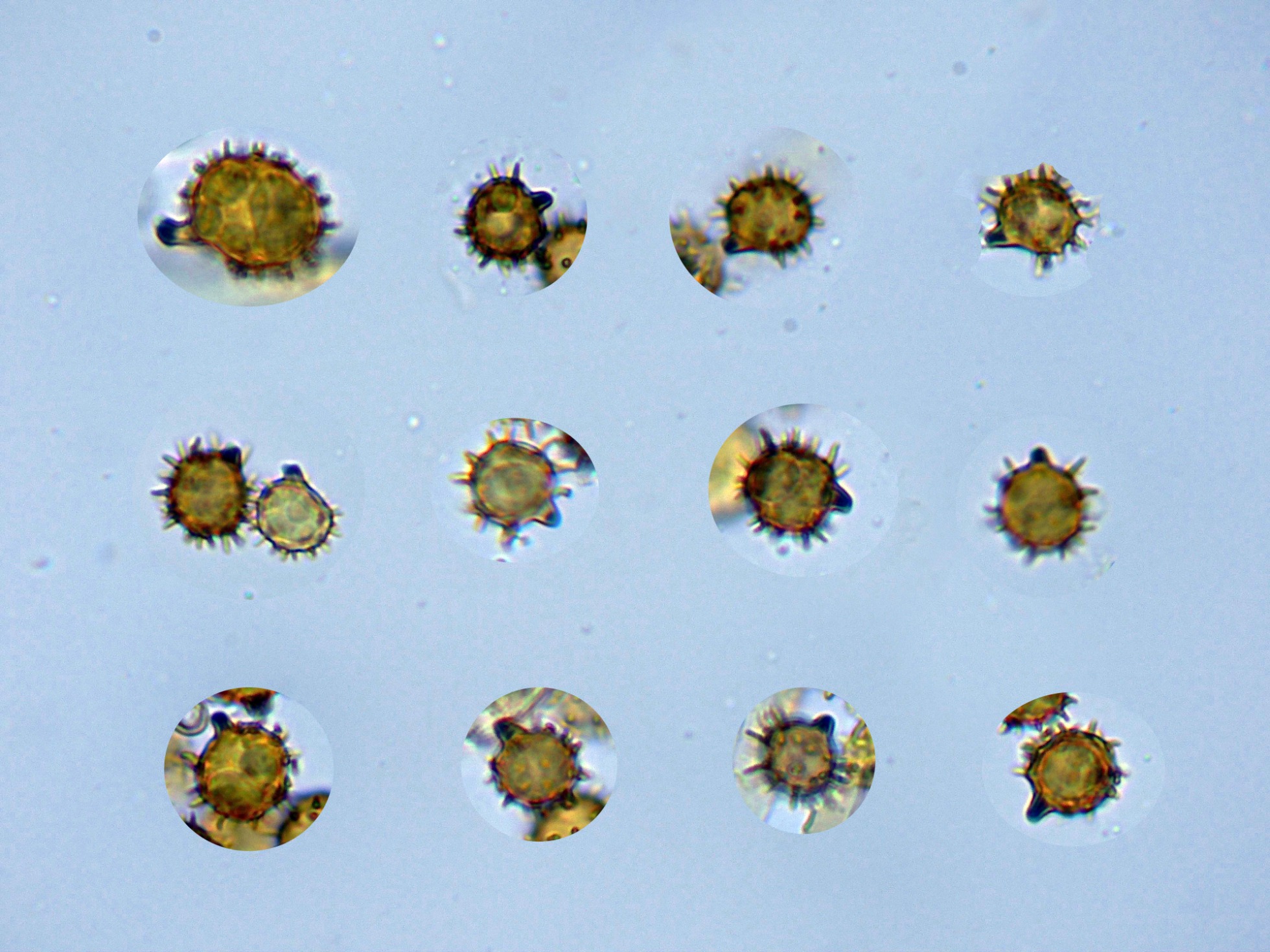 En este estudio sus esporas con unas medidas sin contar la ornamentación de: