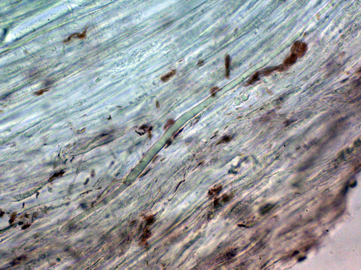 Hifas de la parte coticial del estípite a 400 aumentos.