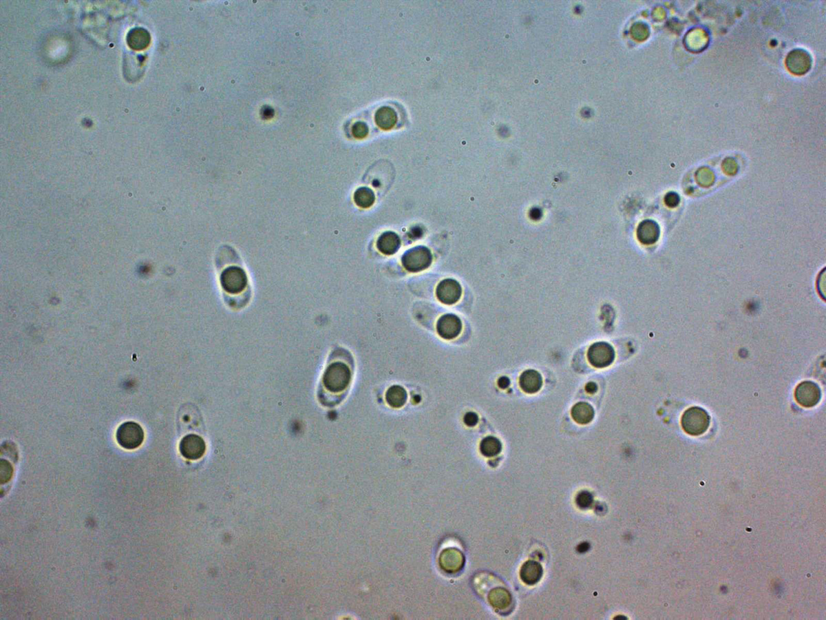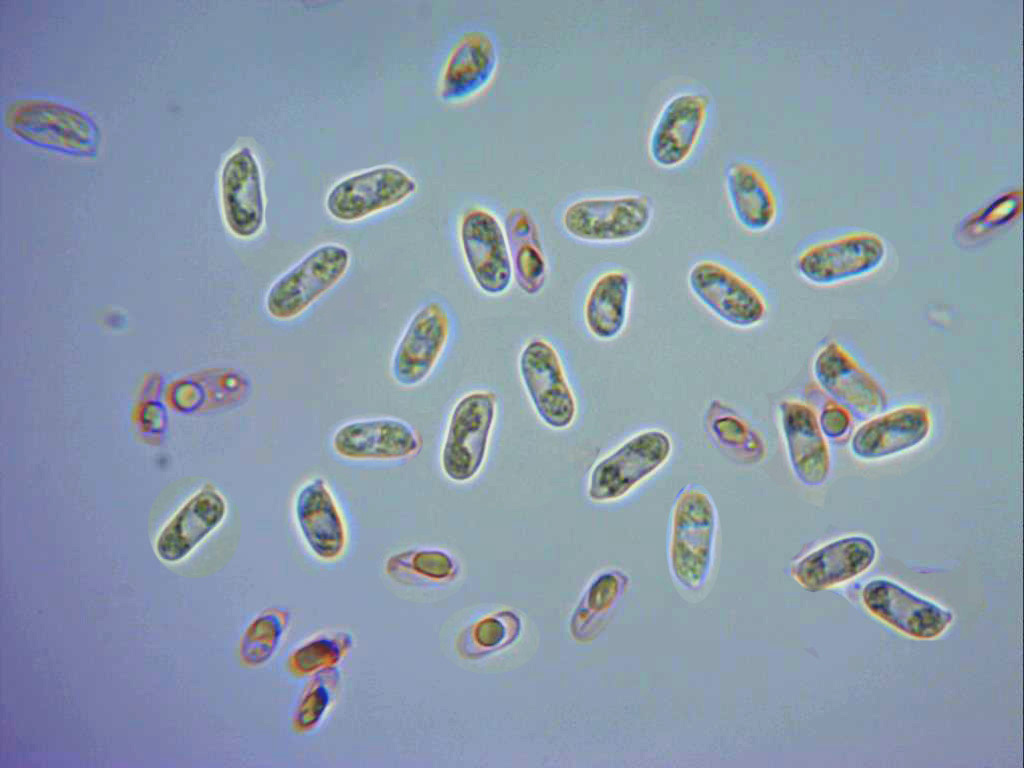 En mis estudios realizados a la especie, las esporas midieron en agua: