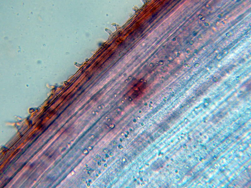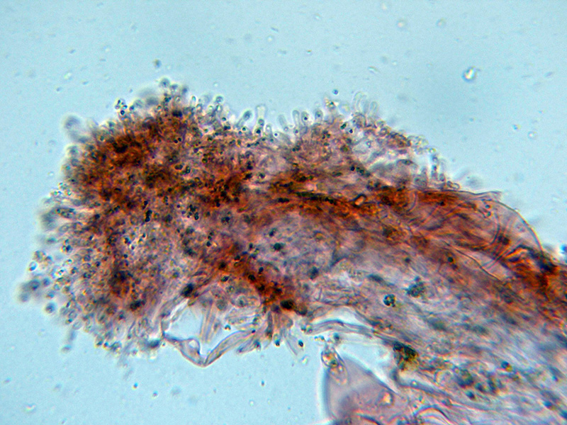 Capa corticial del estípite con numerosas digitaciones cortas, sin caulocistidios claramente observados