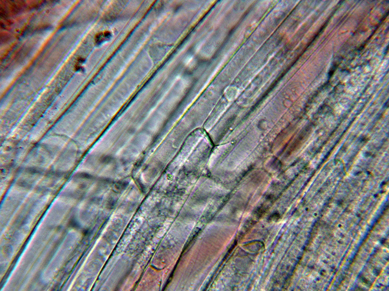 Suprapellis con una capa de hifas globosas inmersas en una sustancia amorfa con muy numerosas digitaciones, algunas de ellas ramificadas, también pude observar algunas hifas vesiculosas con digitaciones.