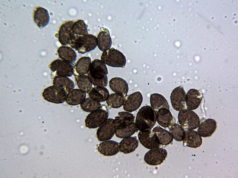 Gracias Juan, aunque con este he tenido que esperar 5 años, añadir que el ligeramente mayor tamaño en anchura de mis esporas, puede ser debido a una excesiva presión sobre el cubre al preparar las muestras, eso sucede cuando las esporas son de un tamaño ya considerable, este punto parece confirmarse con la imágen de las esporas en Reactivo de Melzer, en la que se puden ver algunas esporas eclosionadas, y por supuesto deformadas por la excesiva presión.