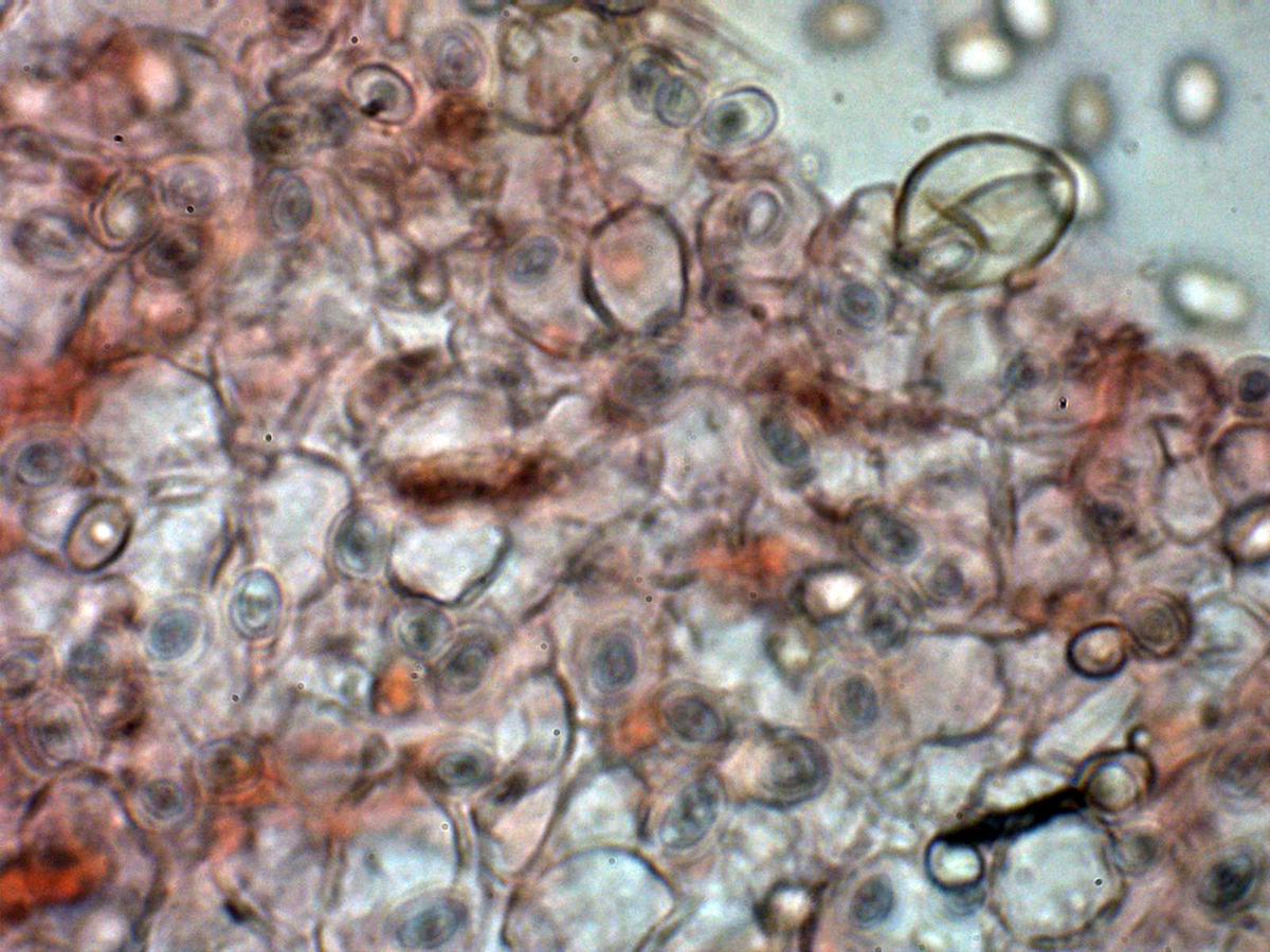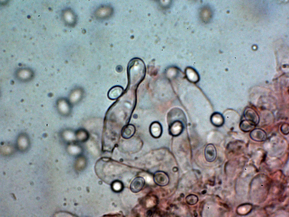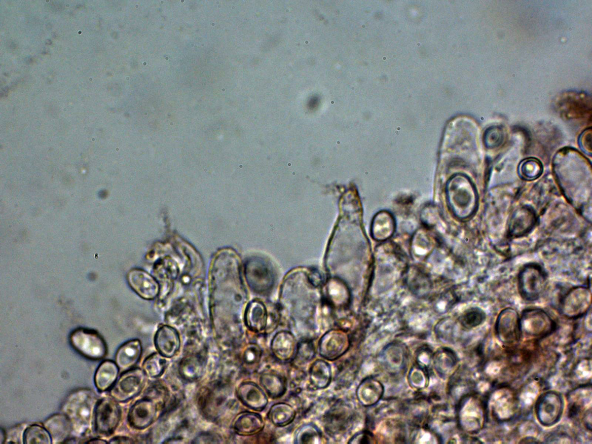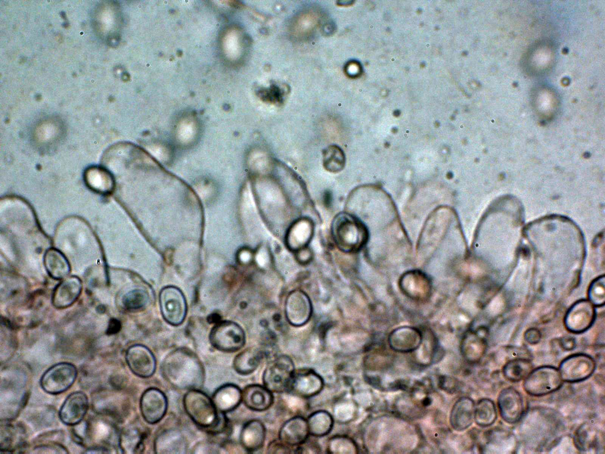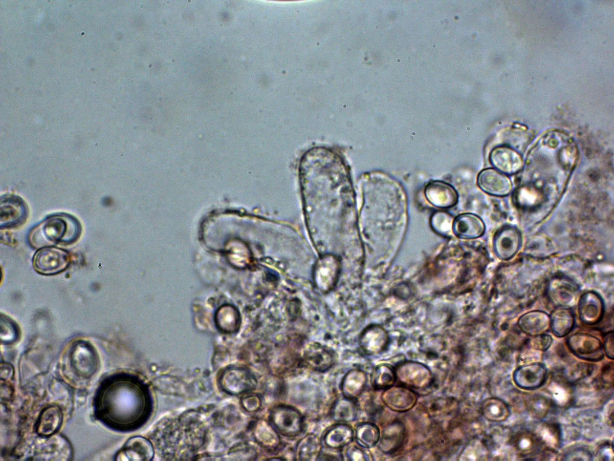 Las esporas entre ovoides y eslipsoidales cortas, de pared gruesa y con una o más gotas lípidas en su interior.