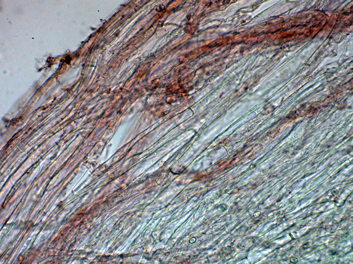Estípite sin caulocistidios observados, con hifas hialinas dispuestas paralelamente y sin fíbulas.