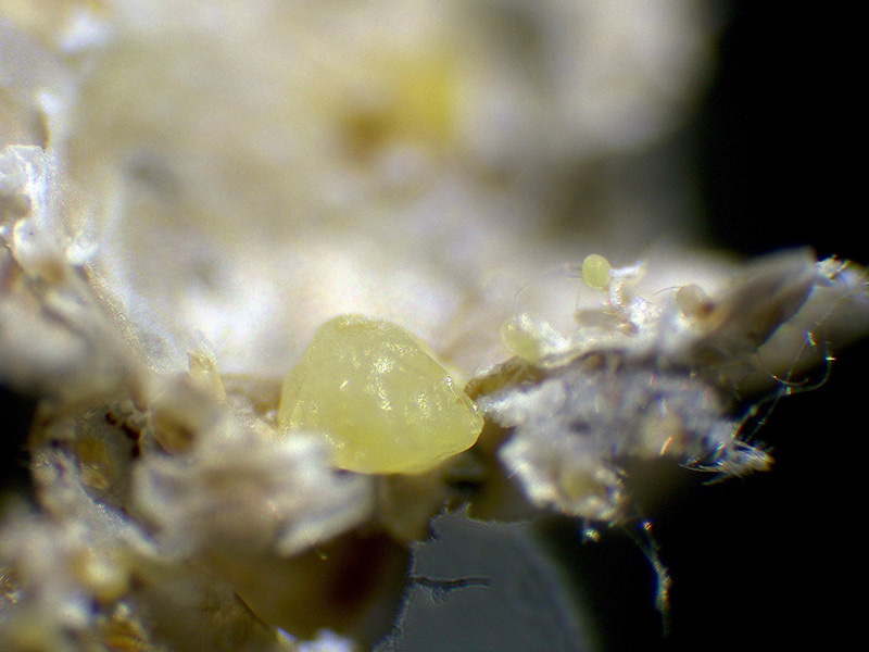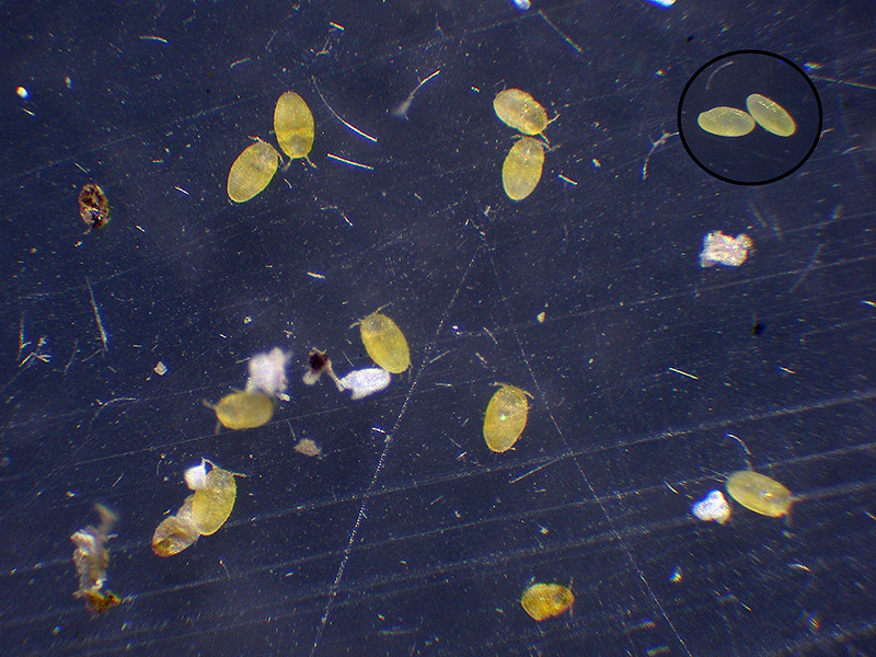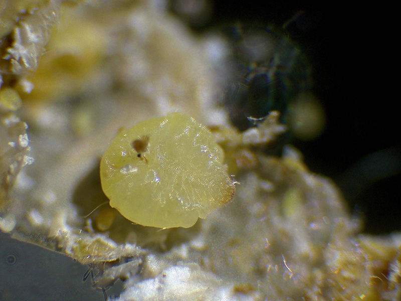 Aunque dentro de estos huevos no parece observarse ninguna estructura que pueda hacer pensar en el reino animal, a las pocas horas ya estaban los pequeños pulgones correteando.