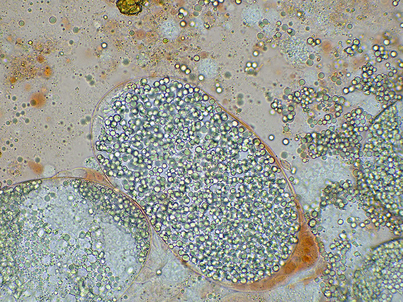 Los de la imágen Nº 11 ya no se corresponden con burbujas de aire sino que son gránulos, que muy probablemente procedan de algunos huevos eclosionados.
