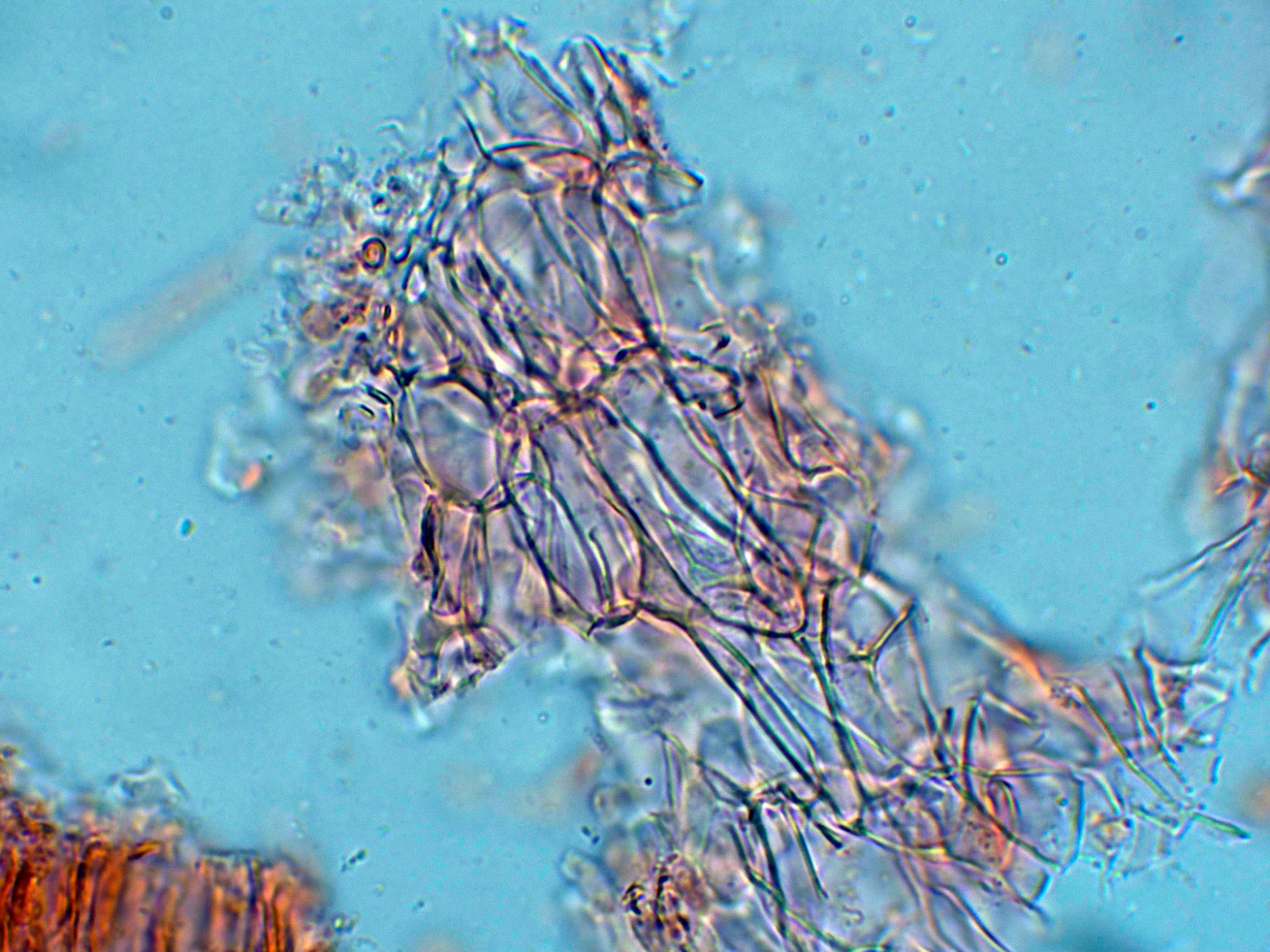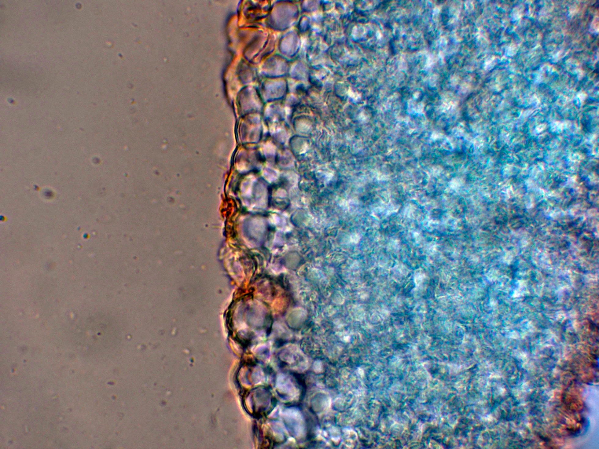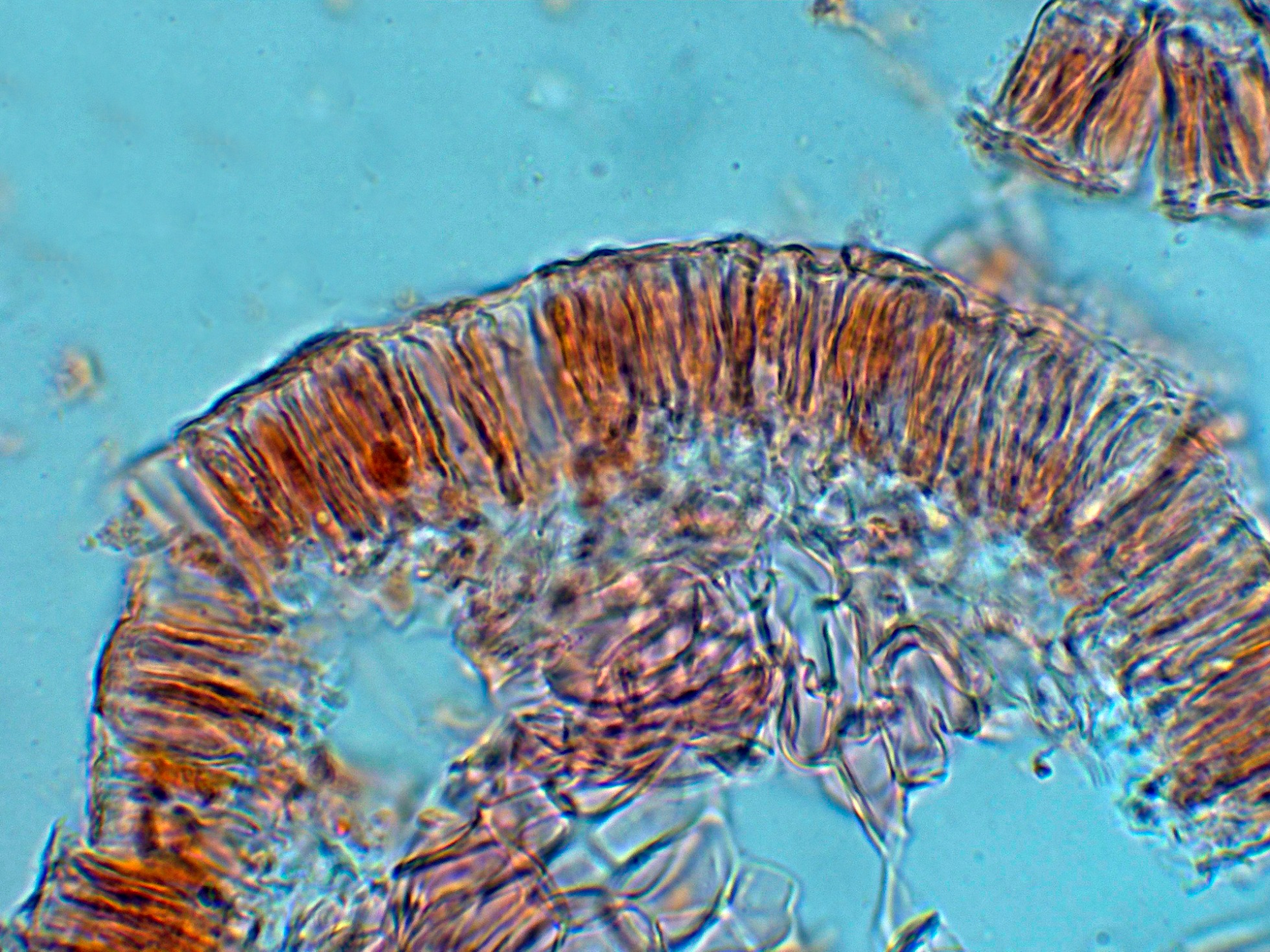 Excípulo ectal formado por hifas alargadas de pared gruesa.