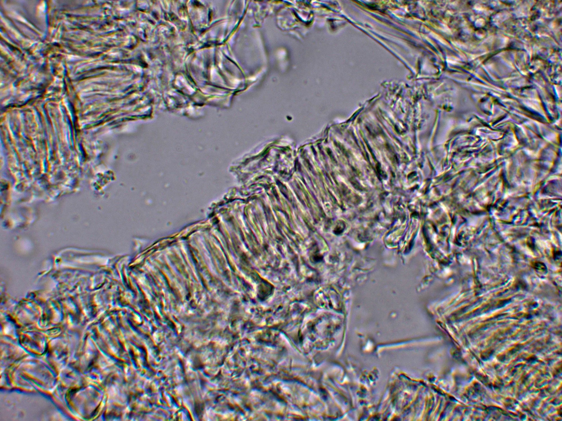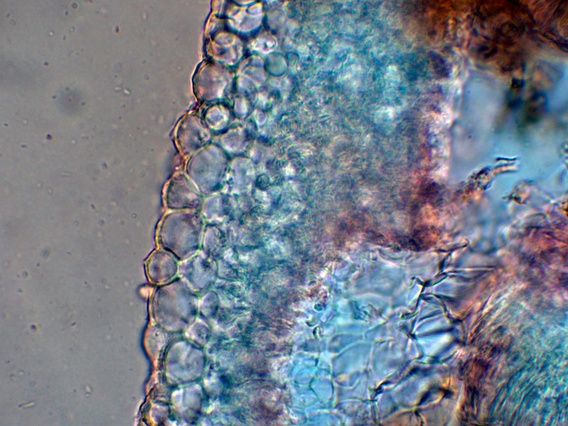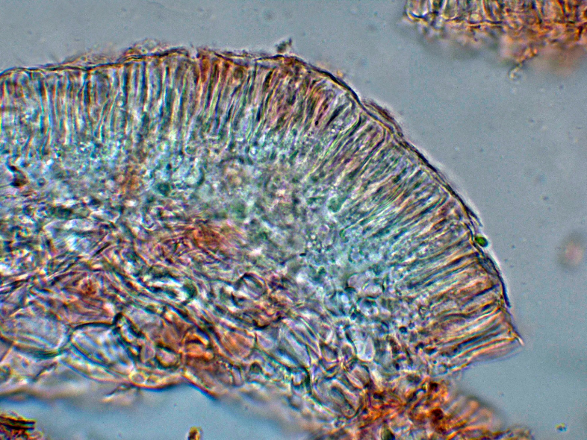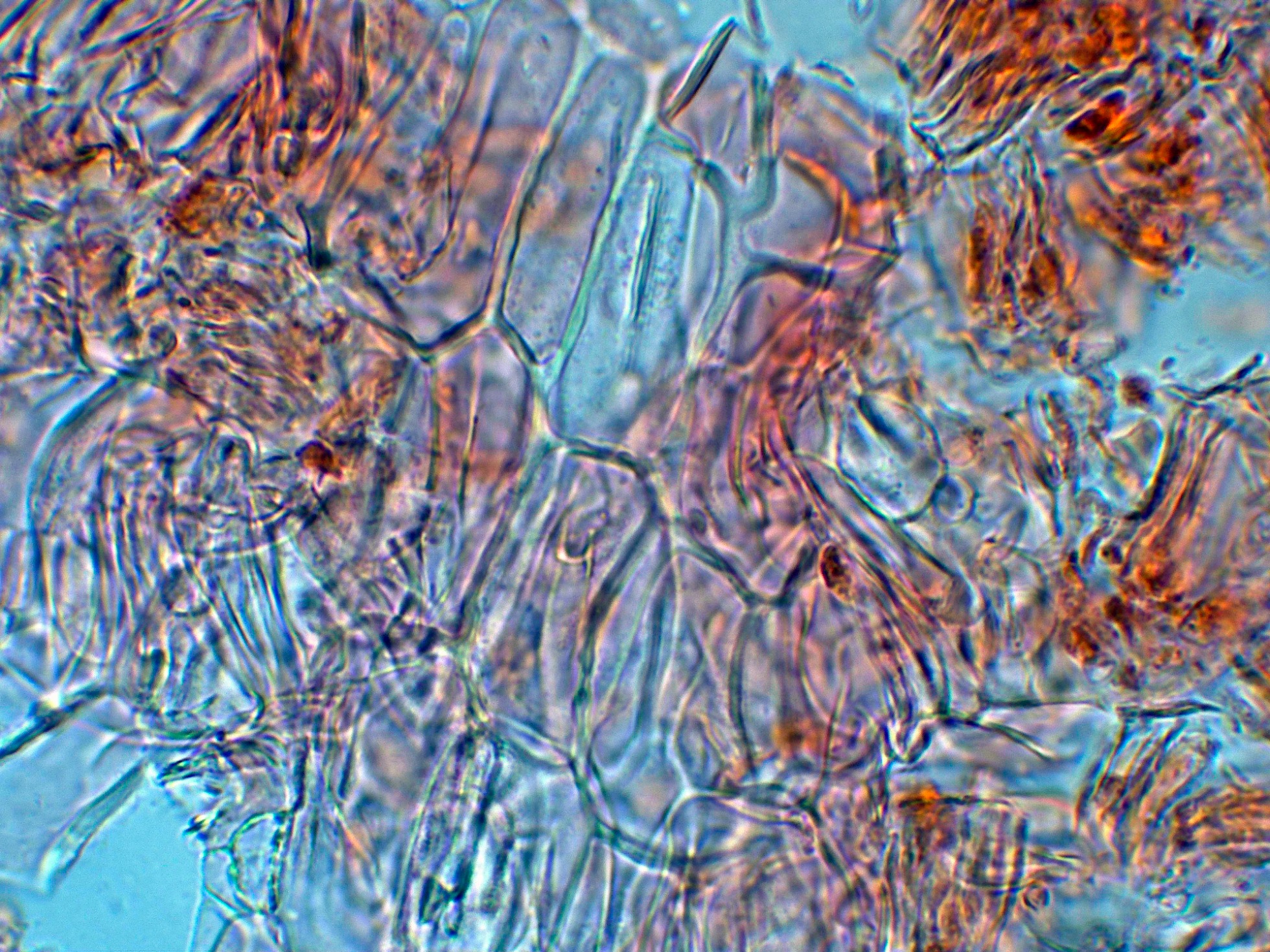 Excípulo ectal formado por hifas alargadas de pared gruesa.