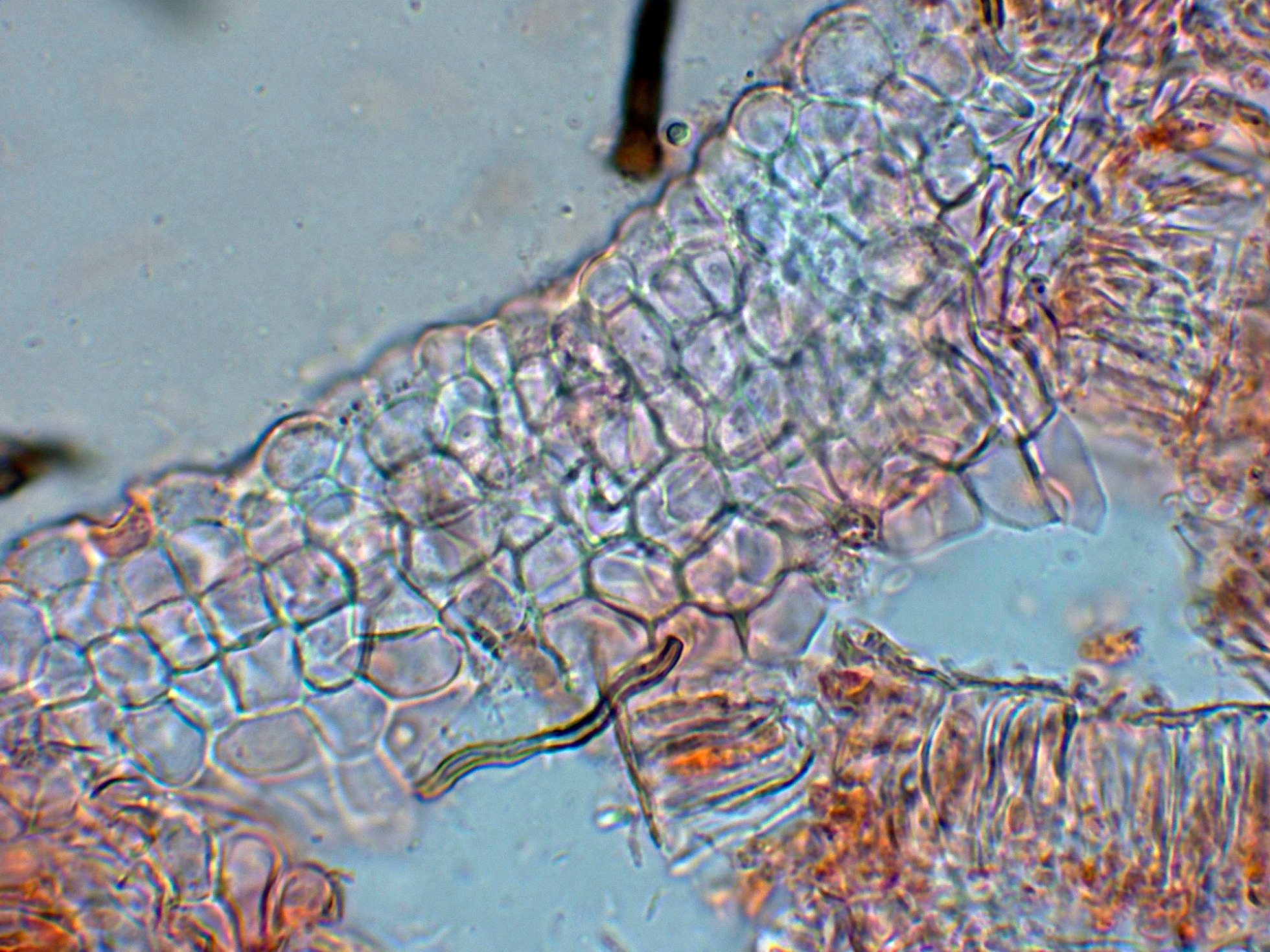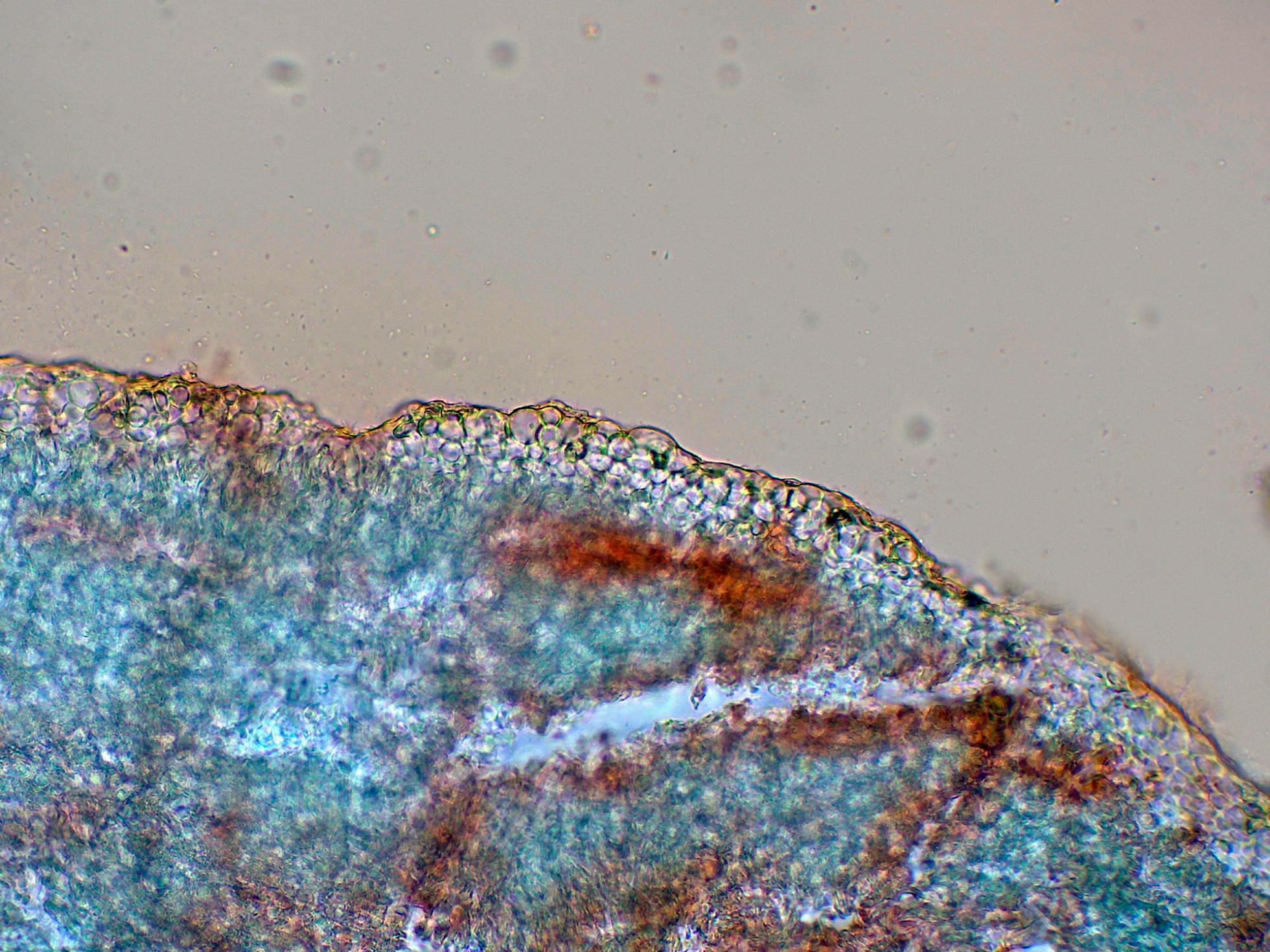 Una de las características de gran valor taxonómico en el caso de la Hyalorbilia puertoricensis son las células marginales de pared gruesa que sobresalen por encima del perímetro de los apotecios, en forma de collar.