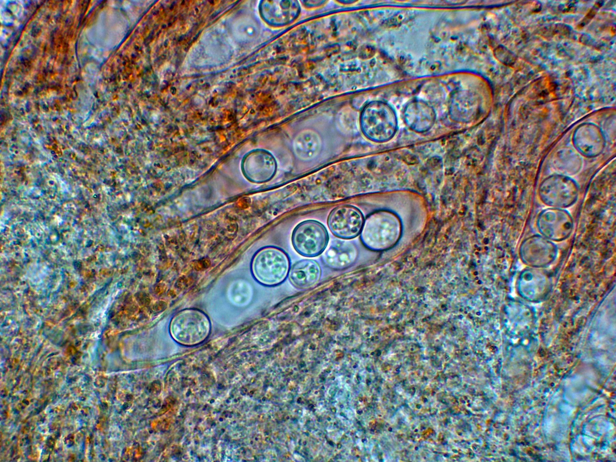 Excípulo en Melzer a 1000 aumentos.